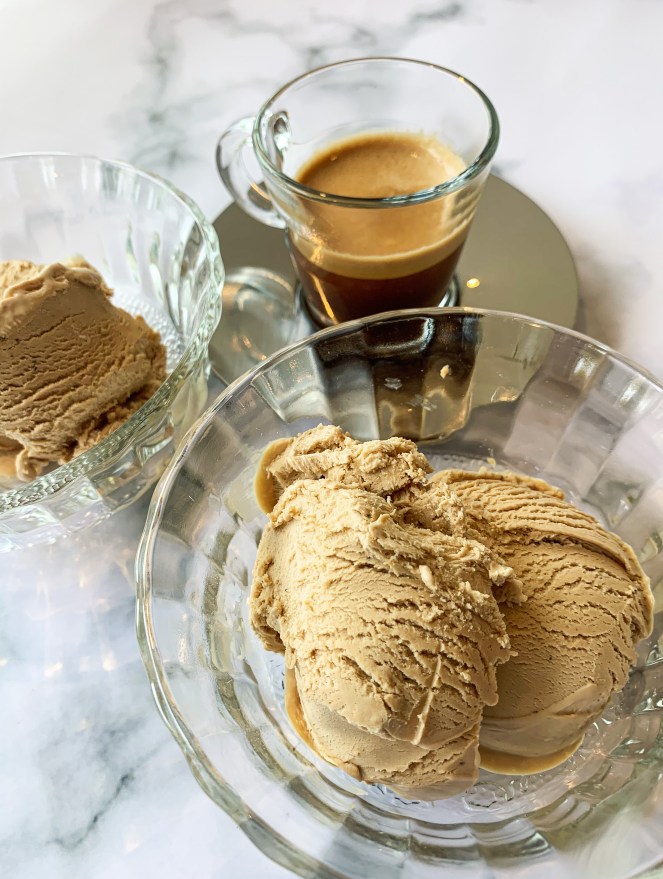 - Remove the pastries and whilst still hot split them in half across the middle and spoon the anchovy ice cream into each.