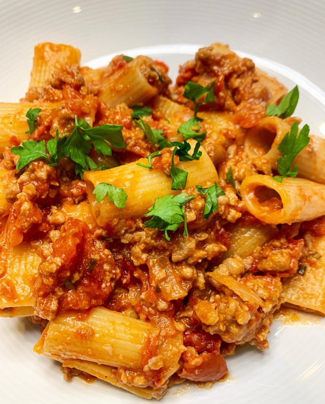 This lasagne from chef/food writer Nina Parker, is super easy as you don’t have to ‘faff’ around making a béchamel sauce, instead you just whip ricotta with grated cheese.