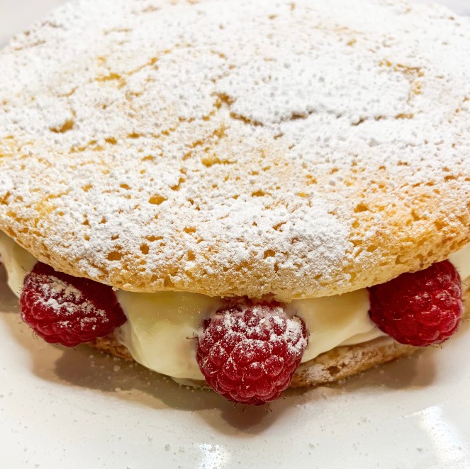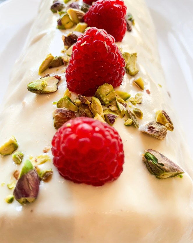 Any roulade is a favourite dessert of mine, however, this one is particularly good! The cream filling is cut with Greek yoghurt, in addition there’s the fresh zing from lemon zest and the tartness of raspberries and pomegranate seeds. With added ground almonds, the meringue roulade is slightly more cake-like but still very light. Like all roulades this is best eaten fresh! (Thank you to Yasmin Khan and her cookbook ‘Ripe Figs’ for this recipe!).