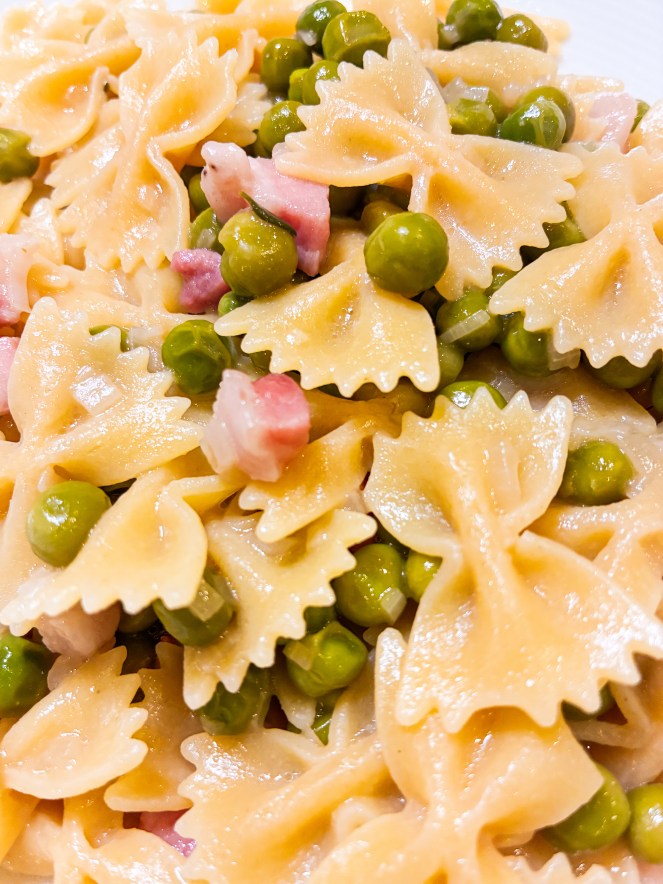 Just recently, this link between food and memories really captured my imagination when I rediscovered a recipe in one of my files. It’s a simple recipe, in fact, I can’t quite believe that I haven’t shared it with you before (so many recipes, so little time!!). Seeing this recipe again for a ‘Pea & Pancetta Sauce’ took me straight back to my first trip with my Italian class; on that occasion, we went to Bologna. Bologna is a foodie’s dream; in fact, it’s nicknamed ‘La Grassa’ or rather ‘The Fat One’, referring to its abundant and high-quality cuisine! During our trip, apart from eating at every opportunity, we had a cookery class at the home of Rita Mattioli, who introduced us to this simple sauce. Just a few months later, I discovered that chef Rick Stein had also visited Rita in Bologna and was raving about his lunch with her – the aforementioned pasta dish! This month, finally, I’m sharing it with you so that you too can make your own happy memories…
