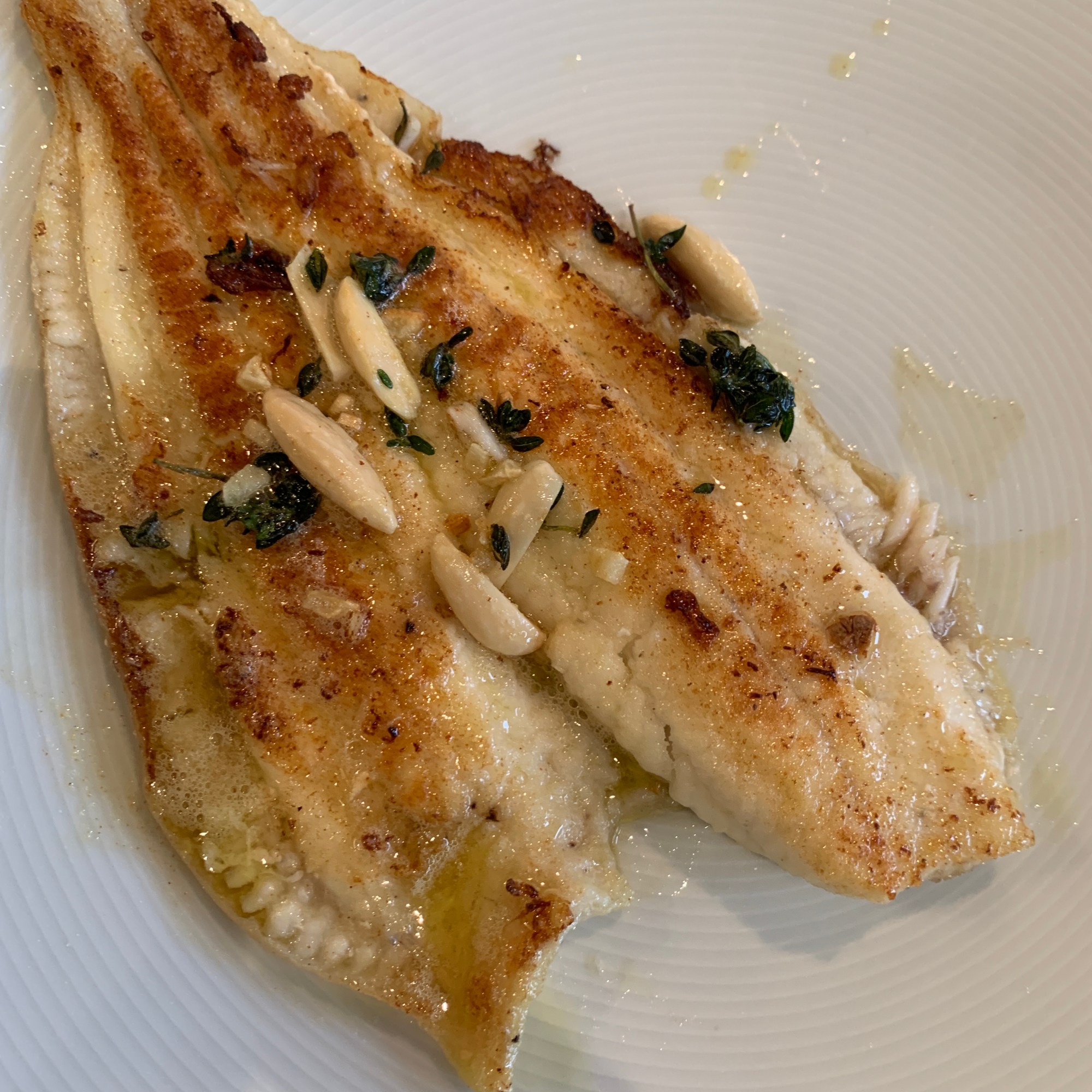 - Carefully turn them over and add the herb mixture from one of the bowls, moving it around so that the almonds and garlic begin to colour. Cook for a further 2 minutes. Remove the plaice from the pan and pour over the herb/butter mixture, keep warm.