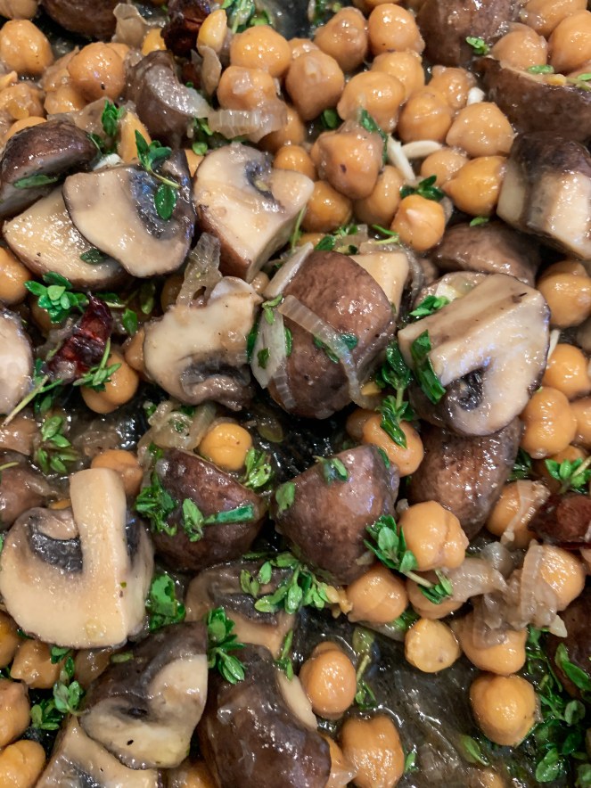 Chickpea and Mushroom Stew without the chicken thighs – it is delicious served with the Tarragon Oil