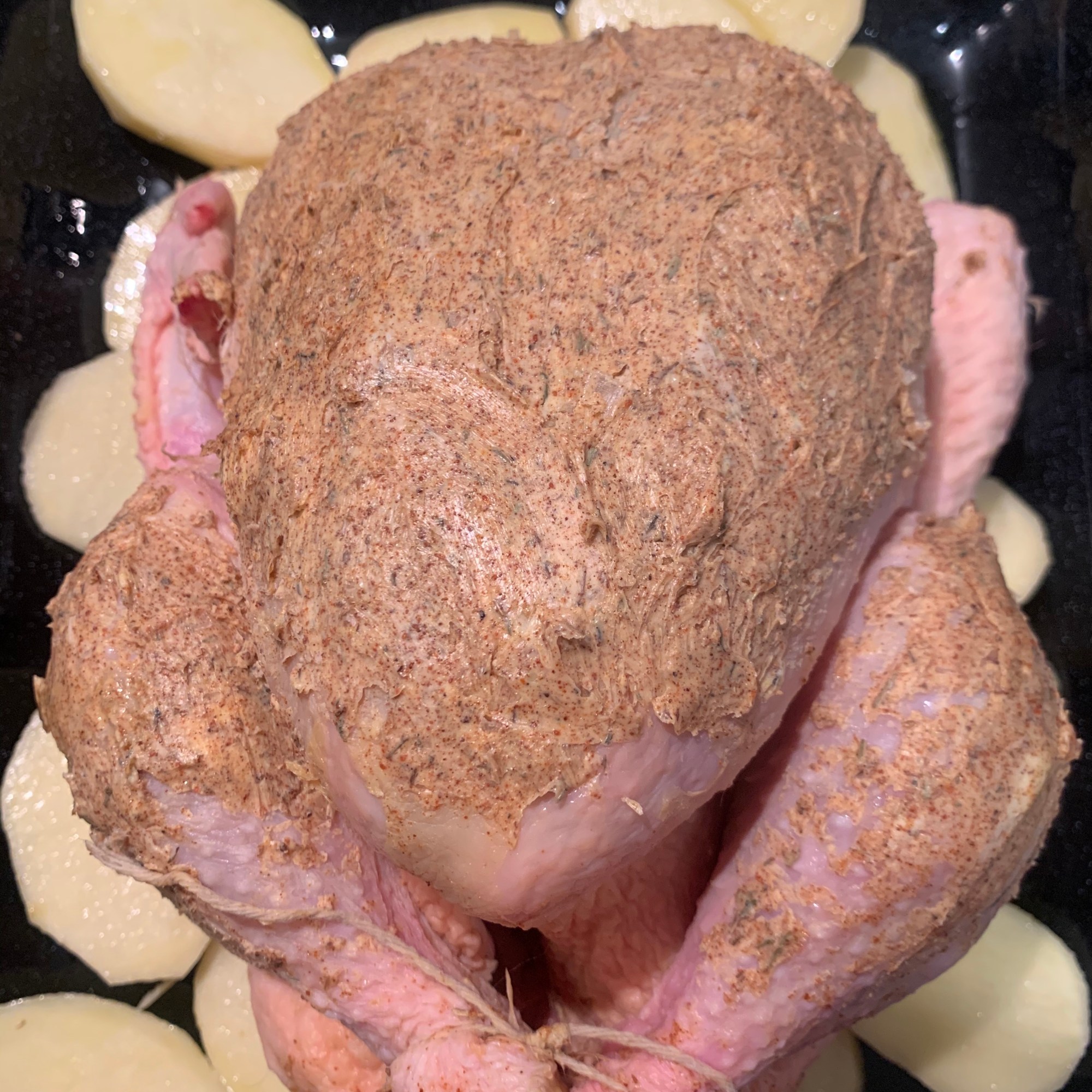 - Rub the spiced butter all over the chicken.