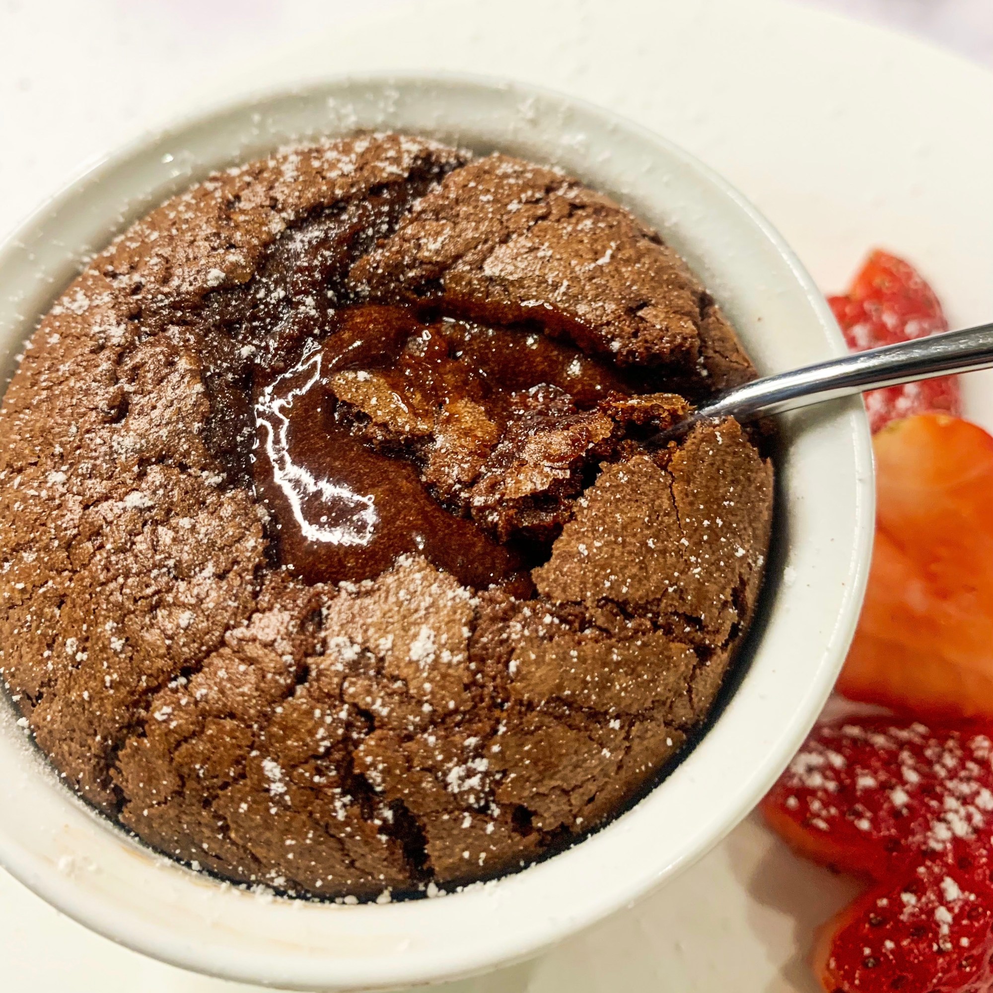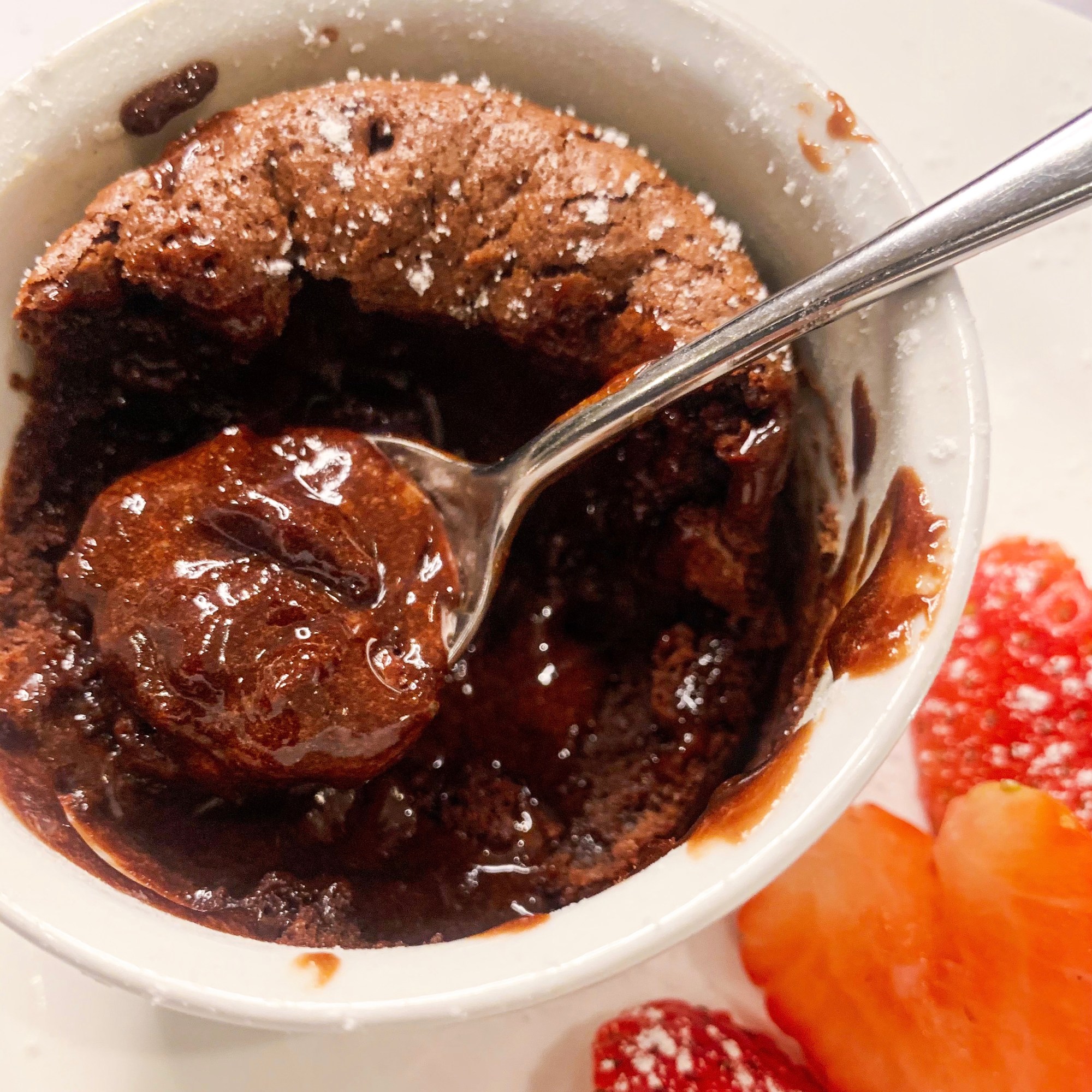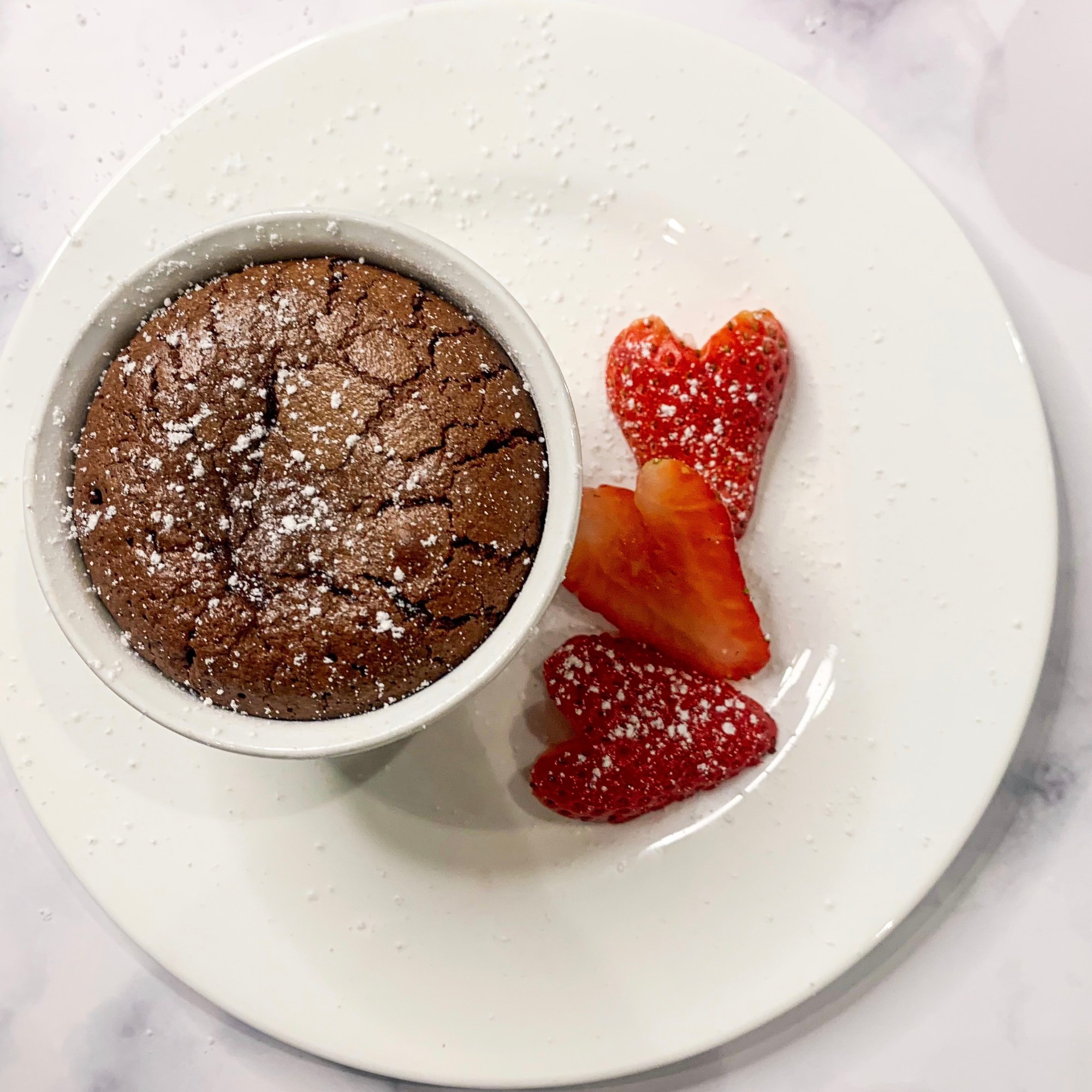- Transfer the ramekins to sit on dessert plates and serve immediately.