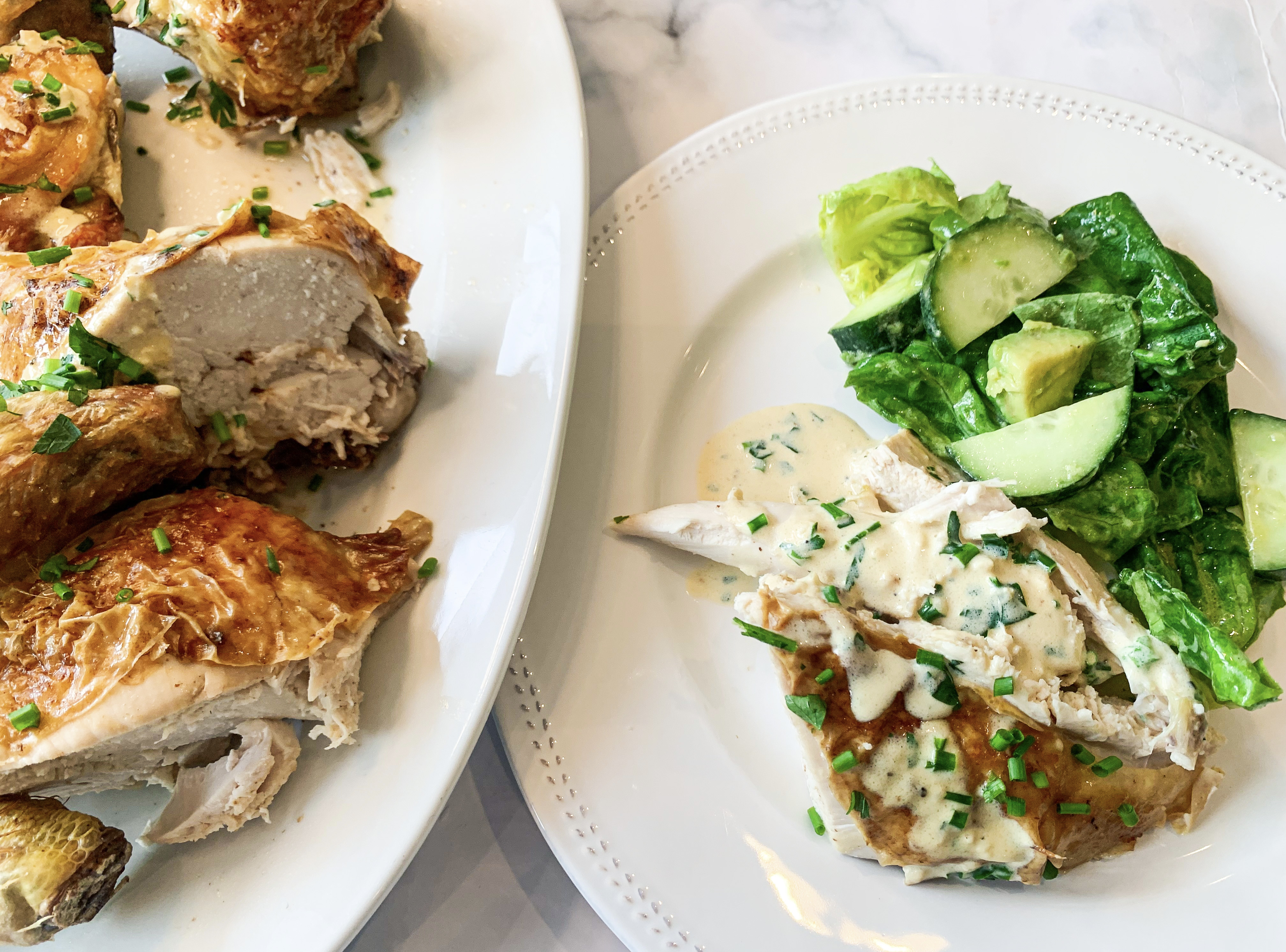 Spatchcock Chicken with Garlic Cream Sauce (Serves 4 – 6)