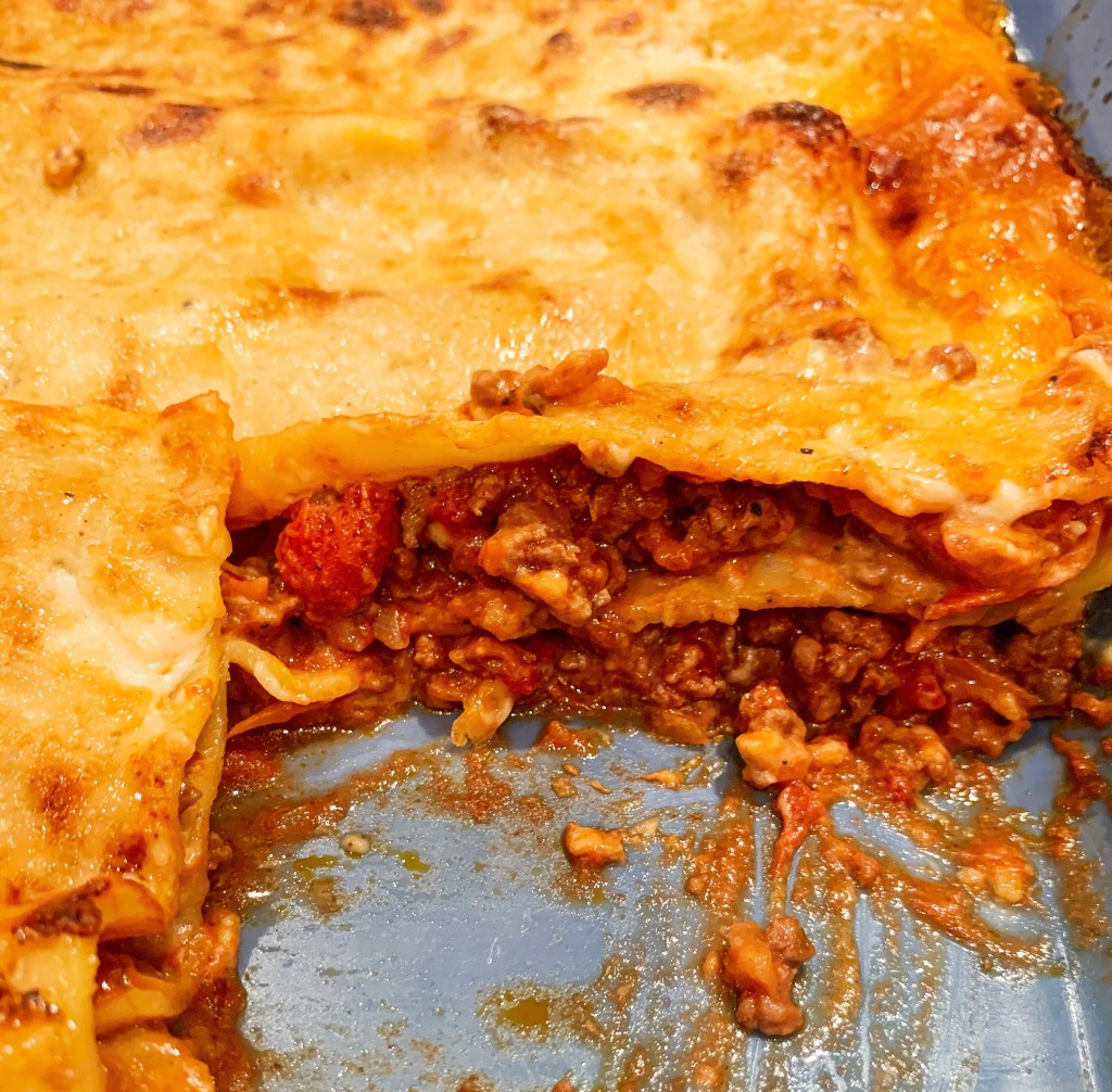 Have you got the January blues?… Yes, I know it’s pretty dismal out there, but I have the perfect remedy… Lasagne! I first shared this recipe in November 2020, if you haven’t already tried it you must do now! It is in my opinion the best recipe for lasagne, it has exactly the right balance of flavours – all too often lasagne can be too cheesy. It’s a recipe from Gordon Ramsay which I found online many years ago. As I am gluten free I make it with gluten-free lasagne sheets, my gluten-loving husband, Nick, doesn’t even notice! Of course, you can make it with or without gluten, either way it’s great served with a simple green salad dressed with a classic vinaigrette (recipe here).