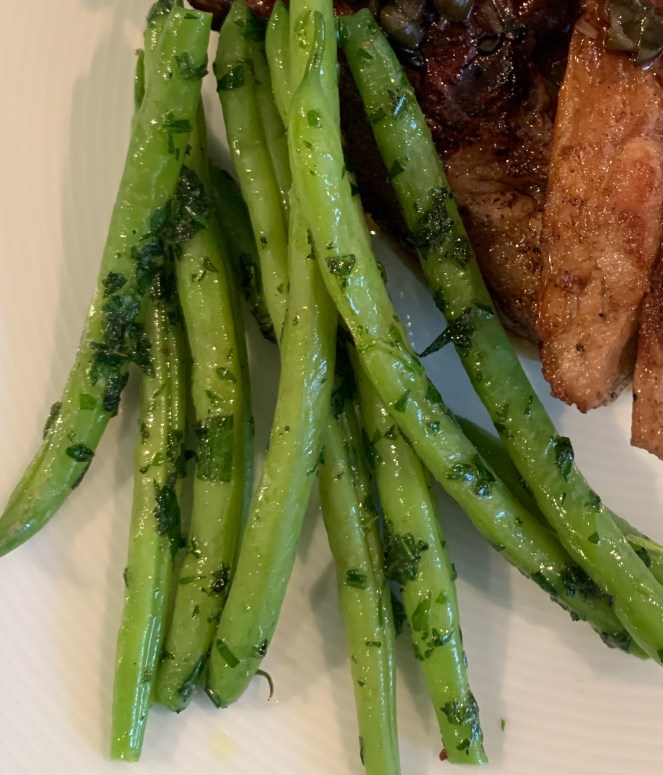 This is a delicious recipe for beans, and despite the amount of garlic the recipe calls for, the flavour is not overpowering. I found this recipe in David Lebovitz’s cookbook ‘My Paris Kitchen’, I love French cooking, so this is a favourite book of mine, not only for the recipes but for the Parisian tales he shares. The recipe in French is Haricot Verts au Beurre d’Escargot (beans with snail butter!), apparently it refers to the butter mixed with copious amounts of garlic which normally dresses the popular French dish of snails!