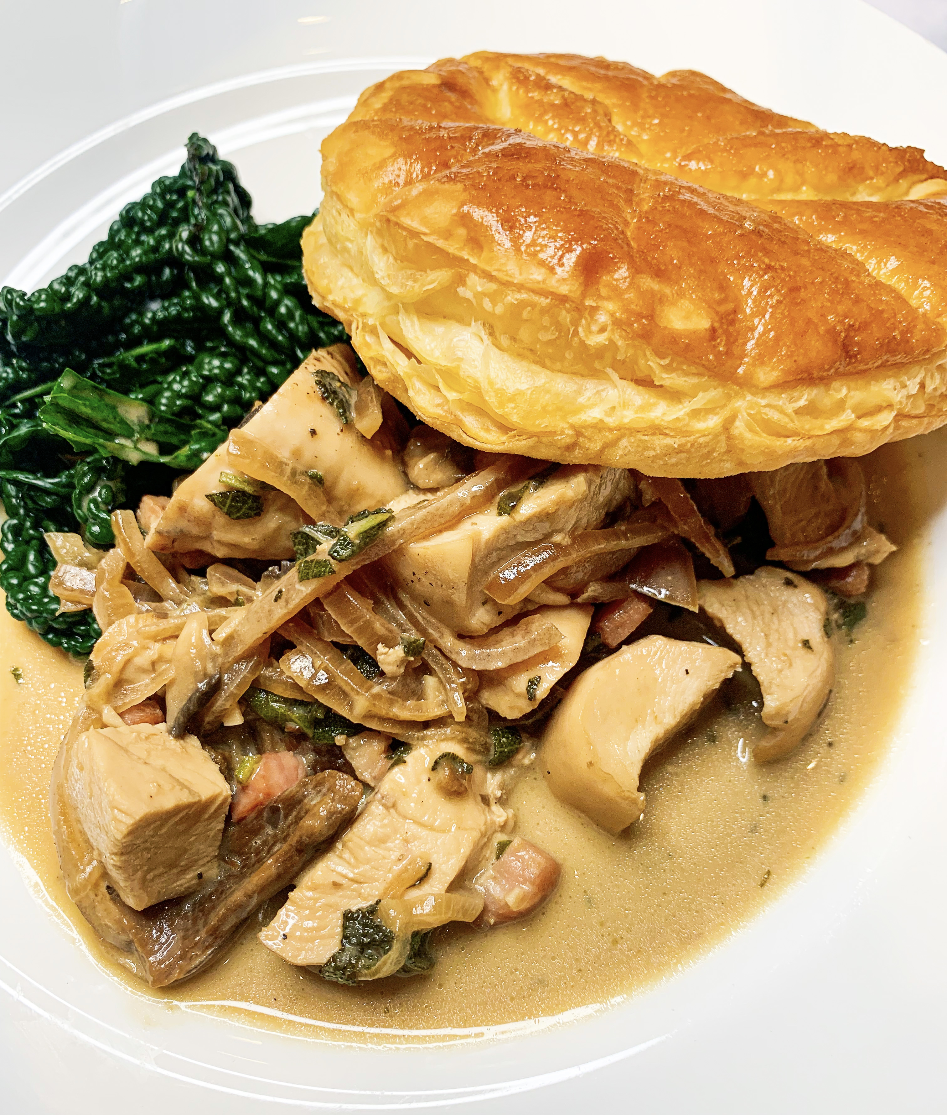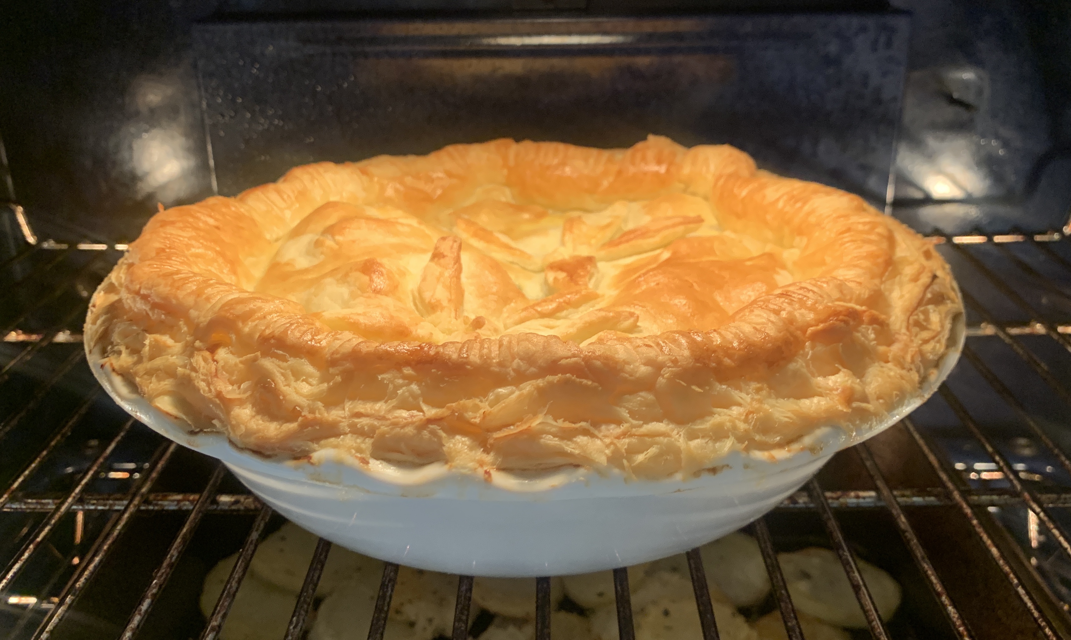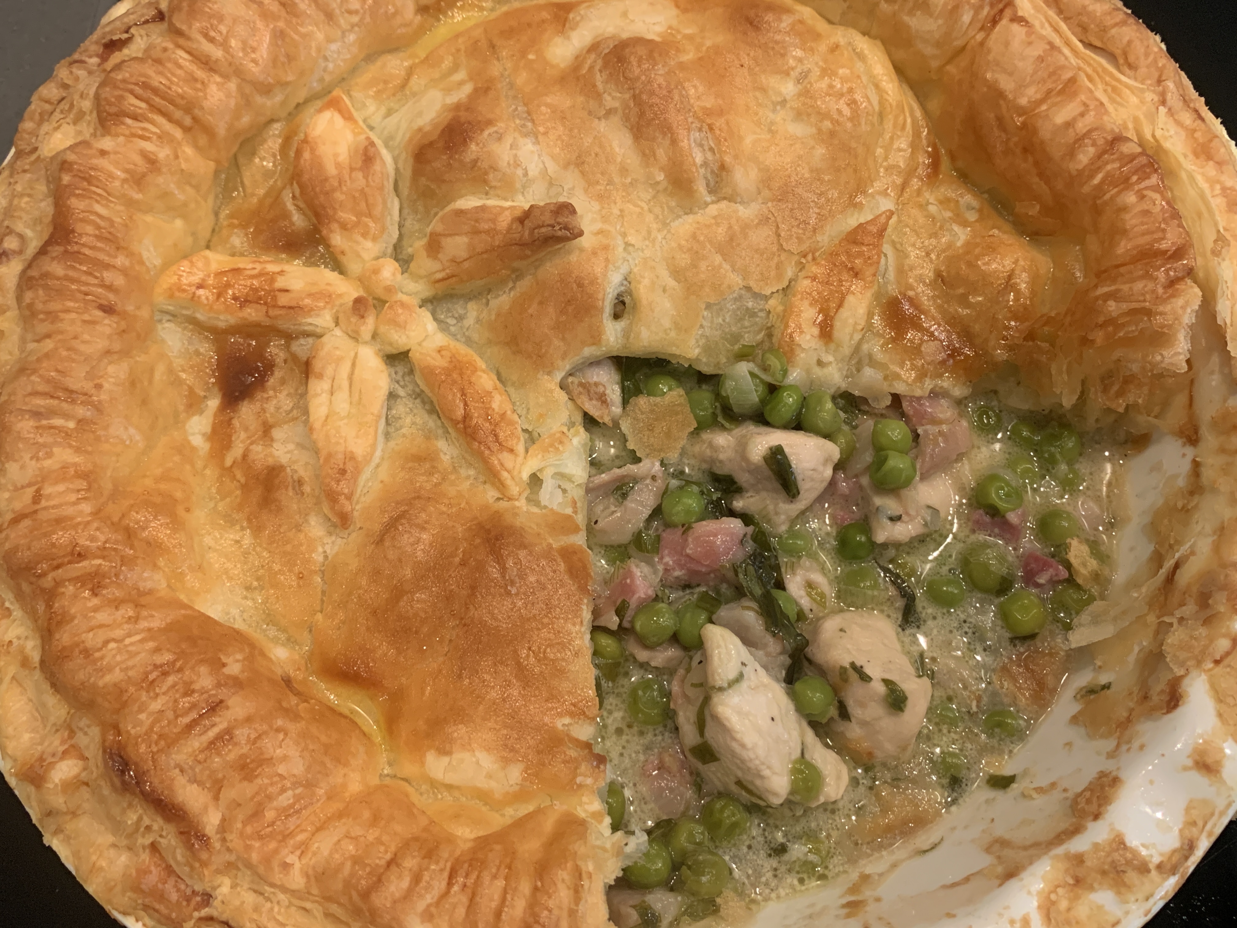 I’m gluten free, so unfortunately these days I can’t eat the pastry, but the filling is a treat in itself. I usually serve this with buttered new potatoes. I use ‘Jus Rol, Ready Rolled Puff Pastry’, they have started to make a gluten free puff pastry, I haven’t tried it, but I have heard mixed reviews so for the moment I will continue to be an unselfish ‘head cook’ and stick to the normal pastry that both Nick and Felix love! I prefer to use fresh chicken stock, but you could use a stock cube.