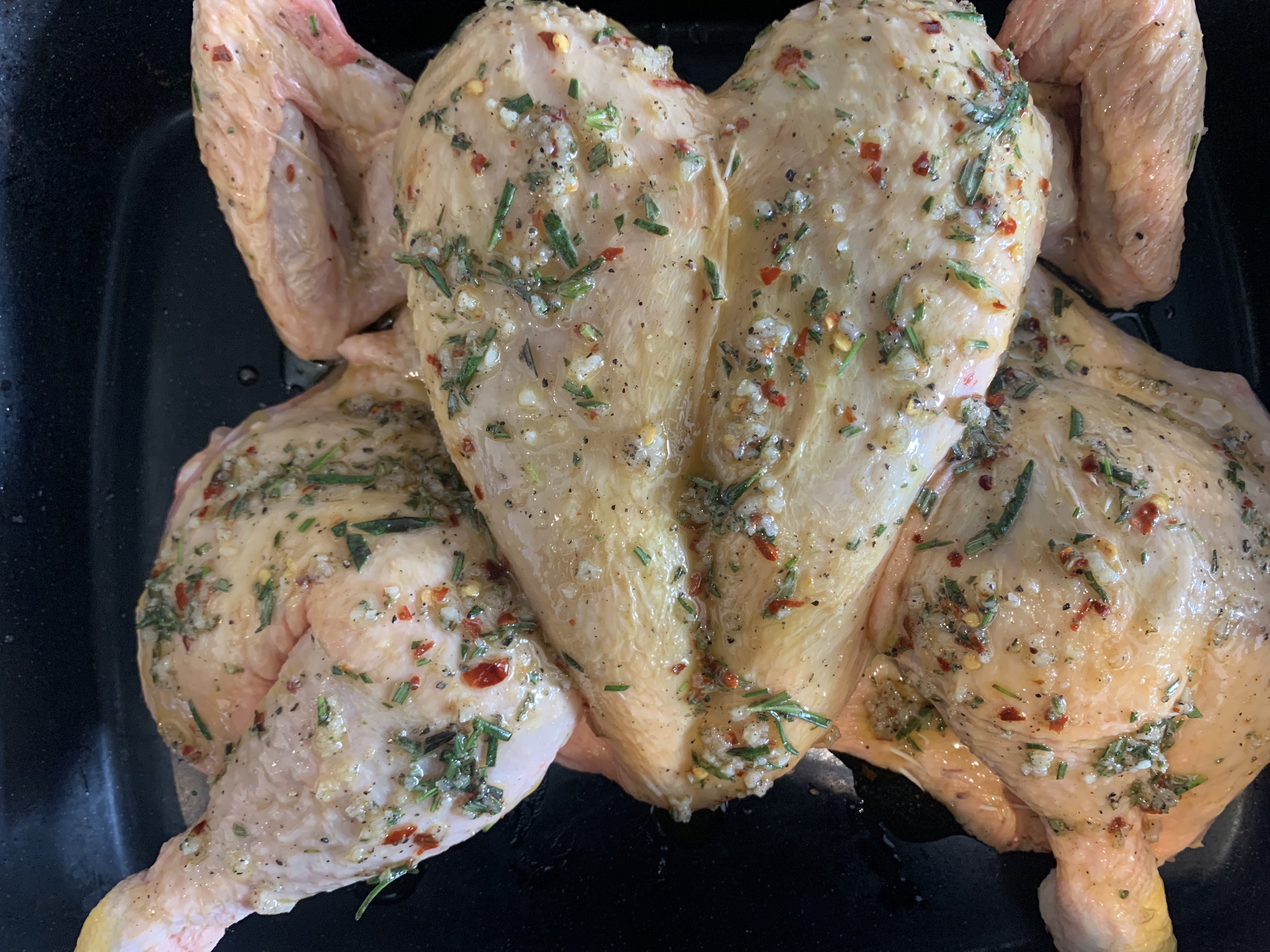 Spatchcock Chicken with Rosemary, Garlic and Chilli (Serves 4-6)