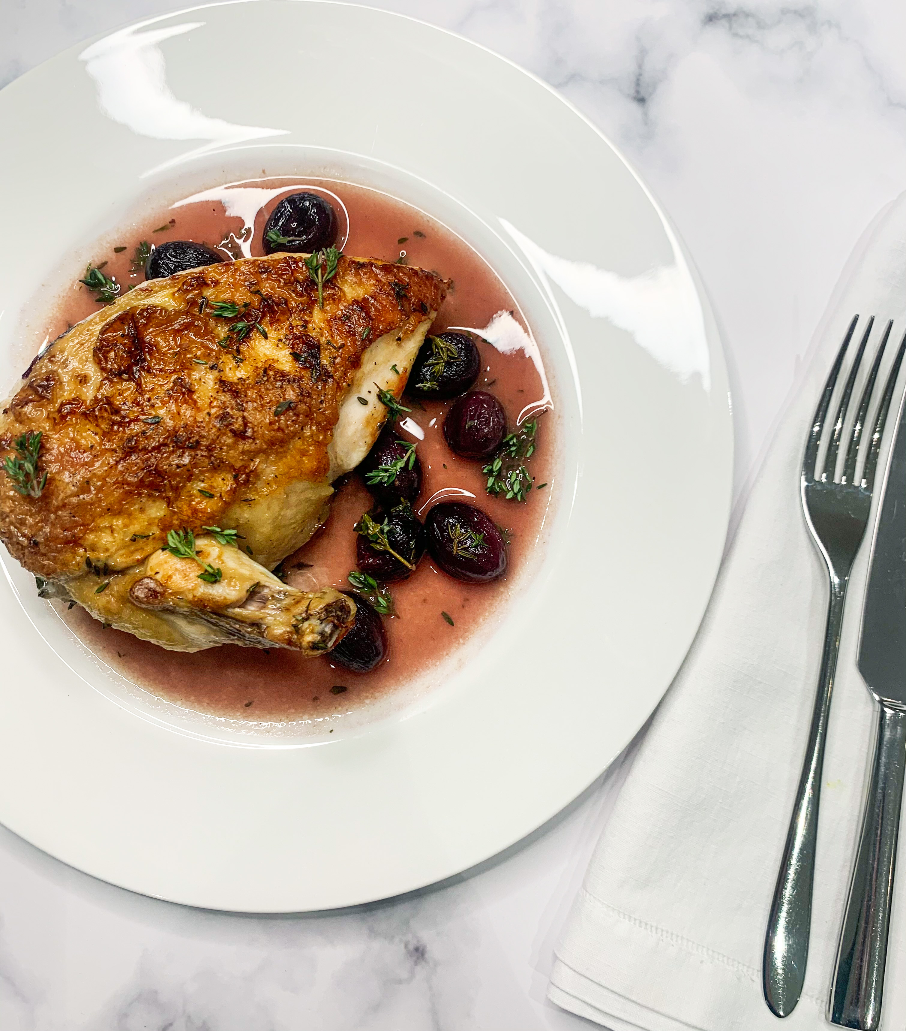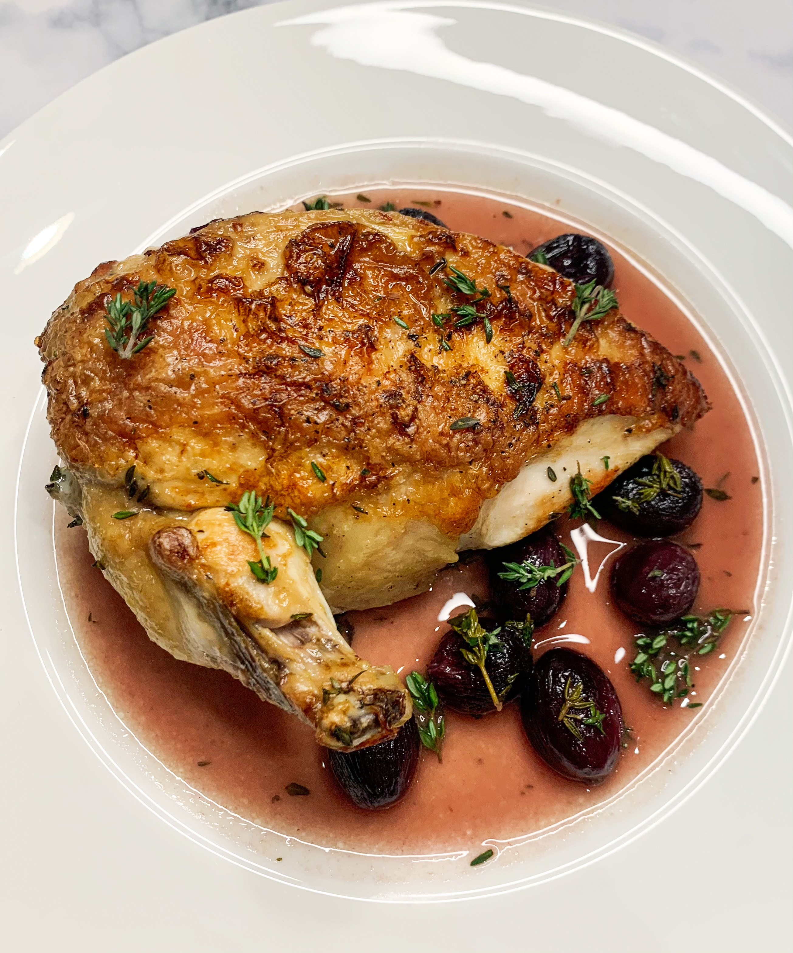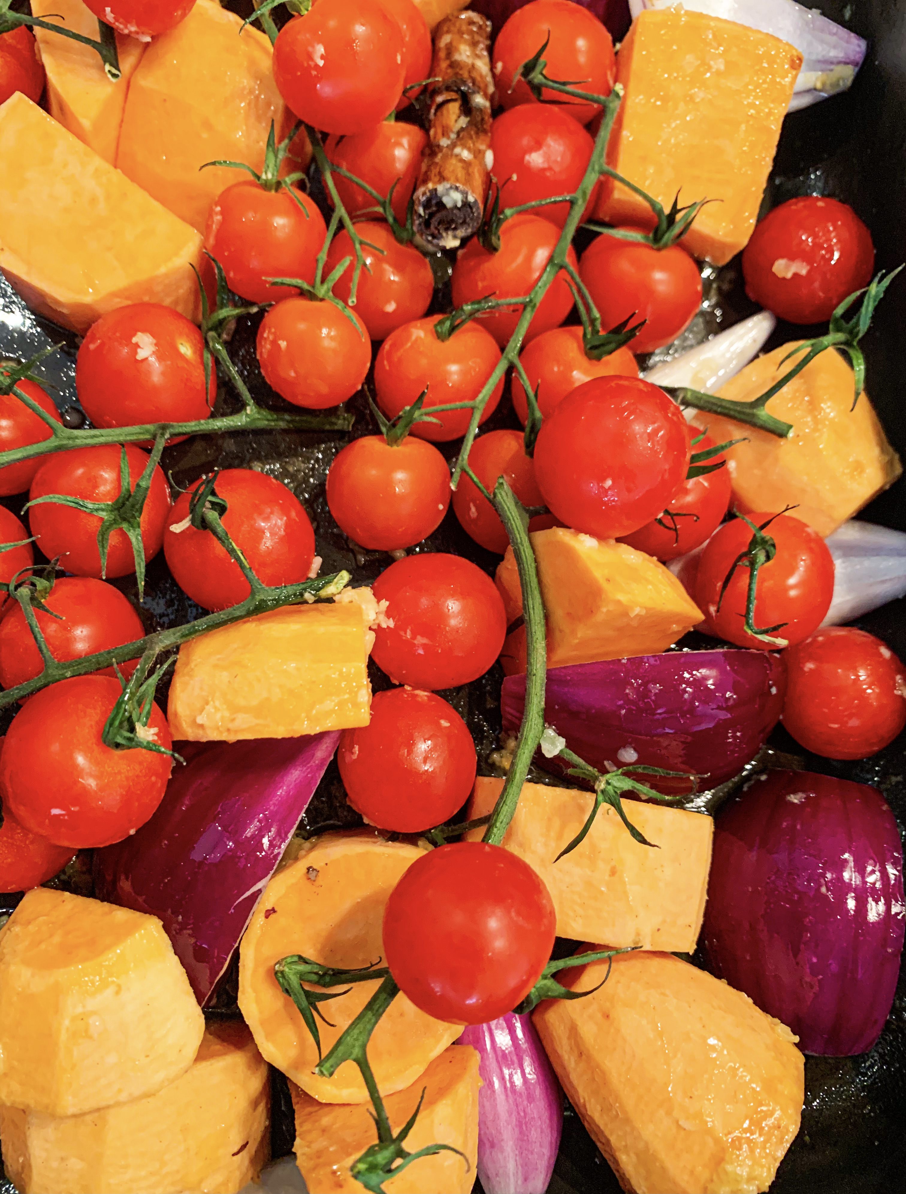- Serve the chicken and it’s wonderful cooking juices with the roast vegetables on the side.