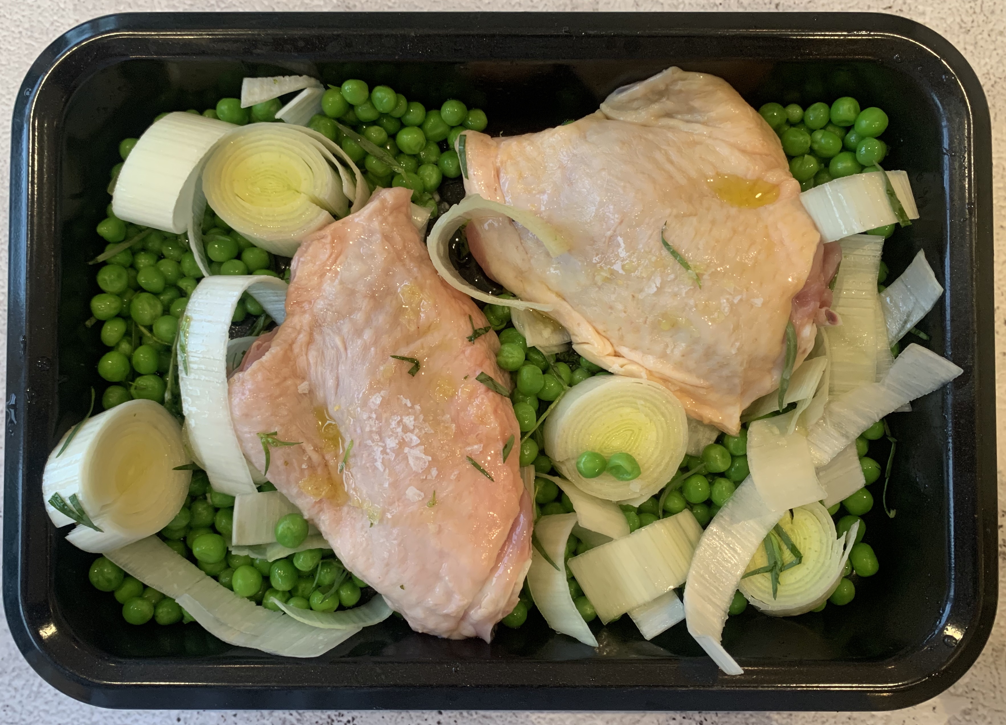 - Place the chicken breasts on a baking tray in a preheated oven, 200’c fan, for 25 minutes until cooked through.