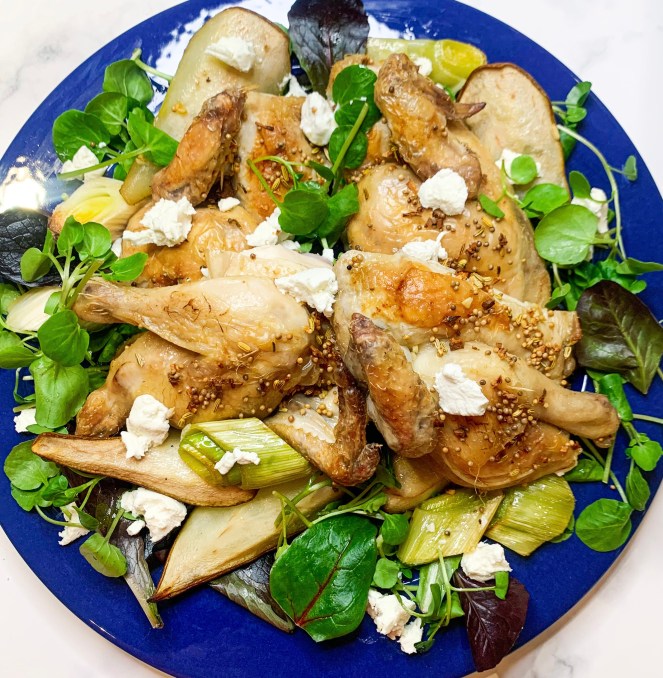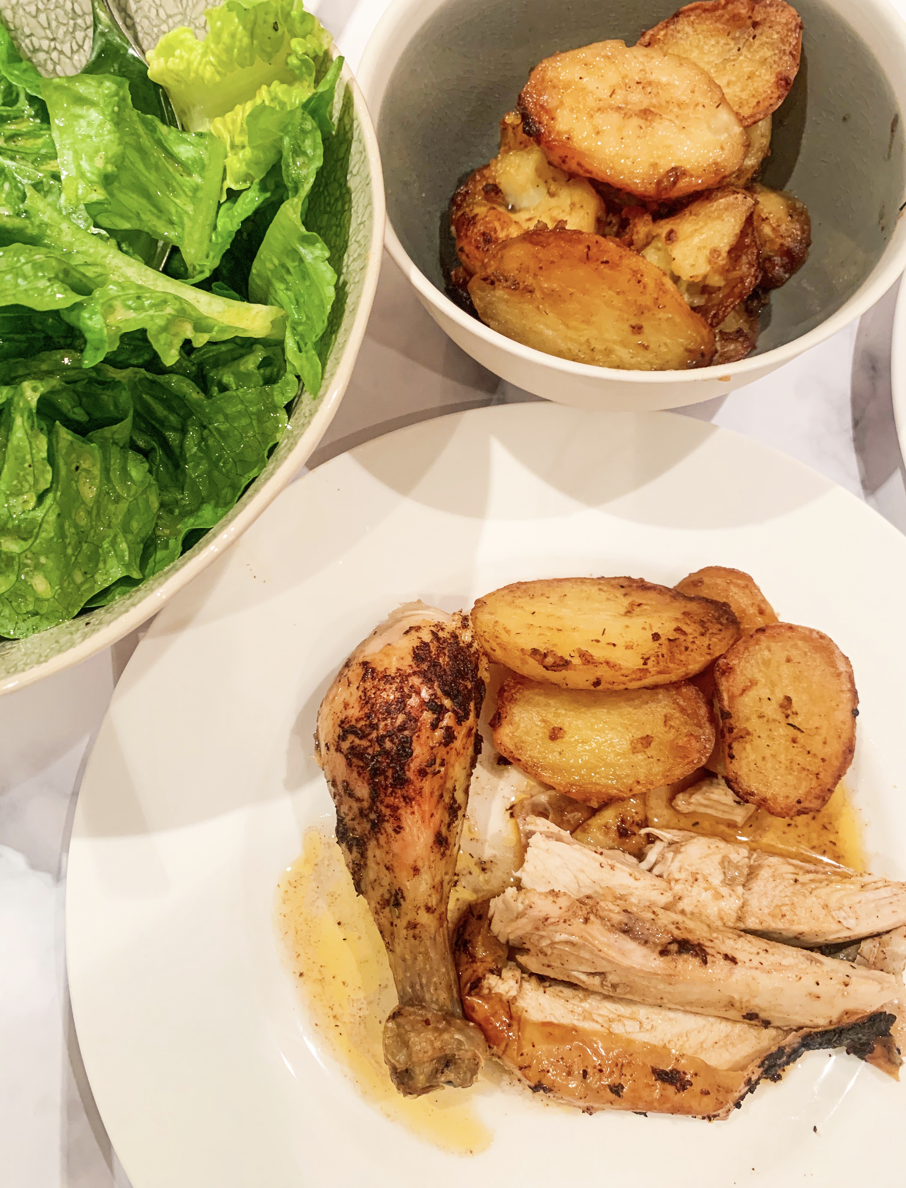 This is a modern take on a traditional roast and is one of those recipes which promises to be a family favourite. The juicy flavours of this dish are enhanced by the subtle sweetness of balsamic vinegar which younger members will definitely love! The recipe is from Donna Hay’s cookbook, ‘One Pan Perfect’. It is almost a ‘perfect one pan recipe’, however, if like me you prefer your potatoes a little crisped up, then it’s best after initially cooking together with the chicken, to move them into a separate roasting tin – I’ve adjusted the recipe below accordingly.