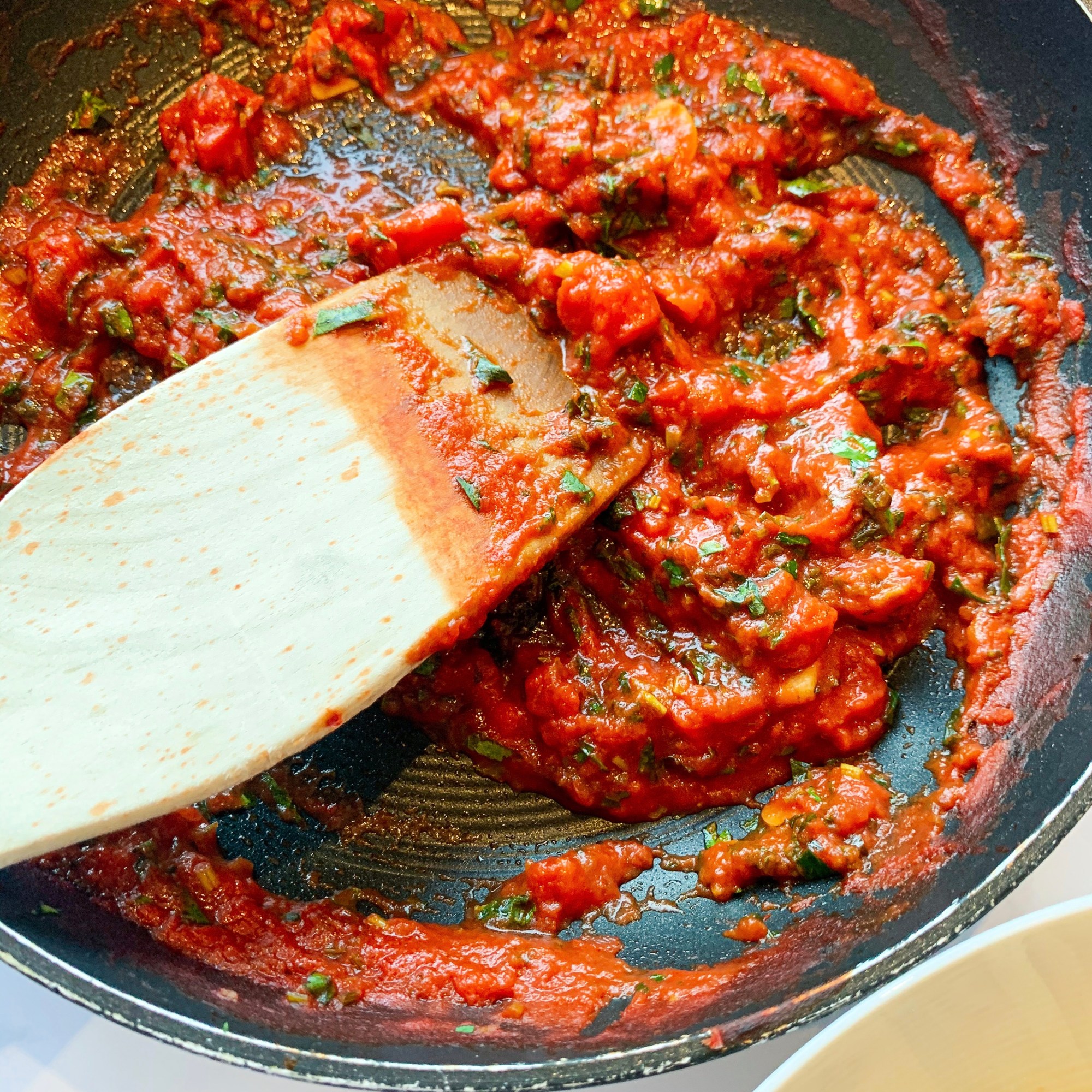 - Tip in the tomatoes, mix everything together well, reduce the heat and cook for another 5 minutes, stirring from time to time.