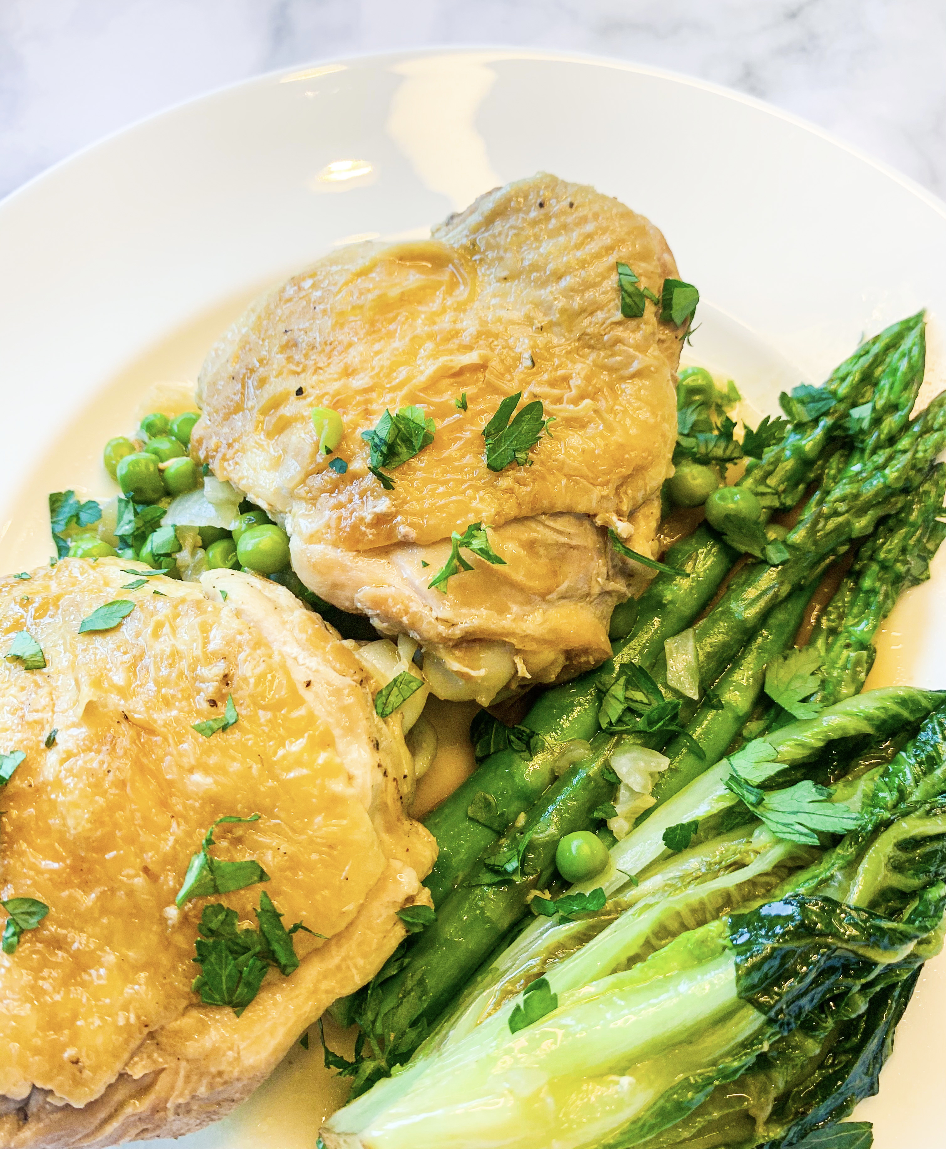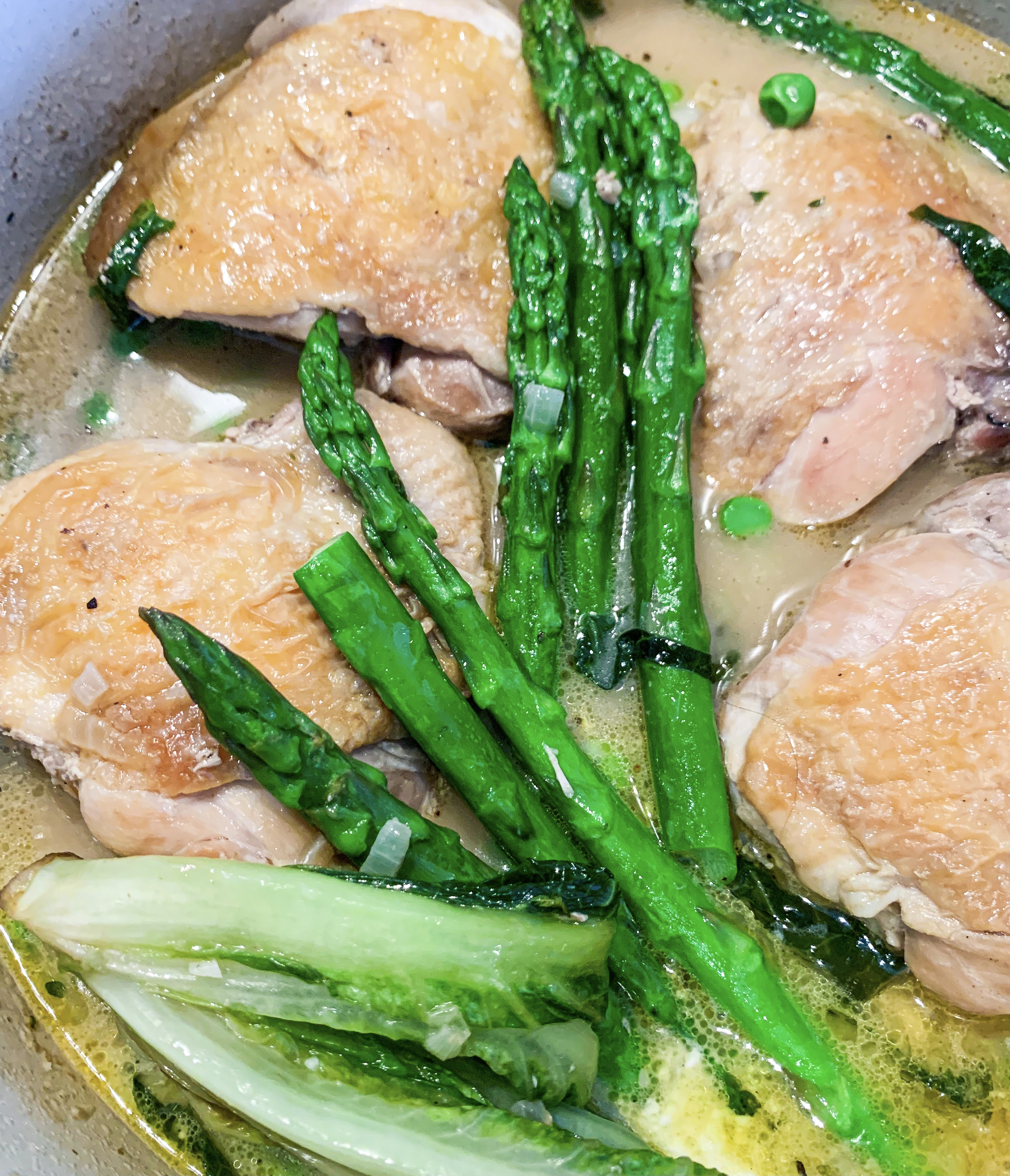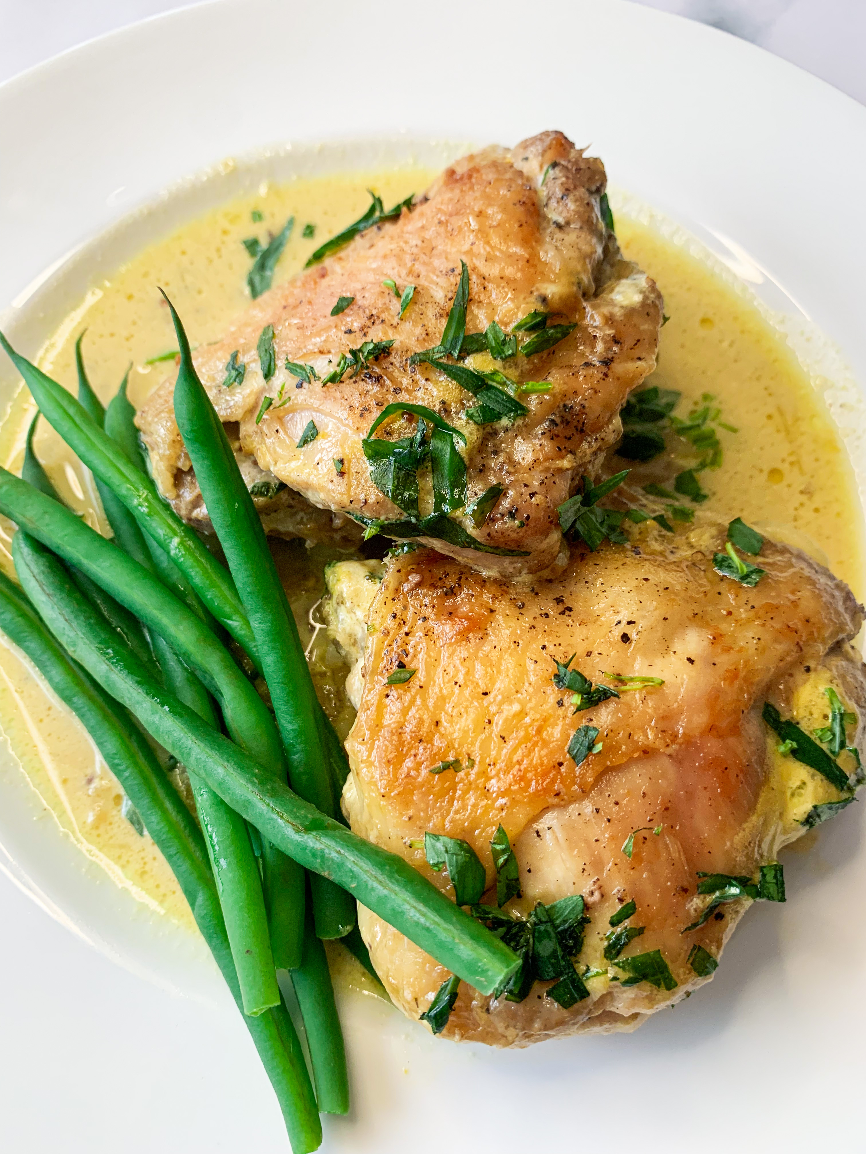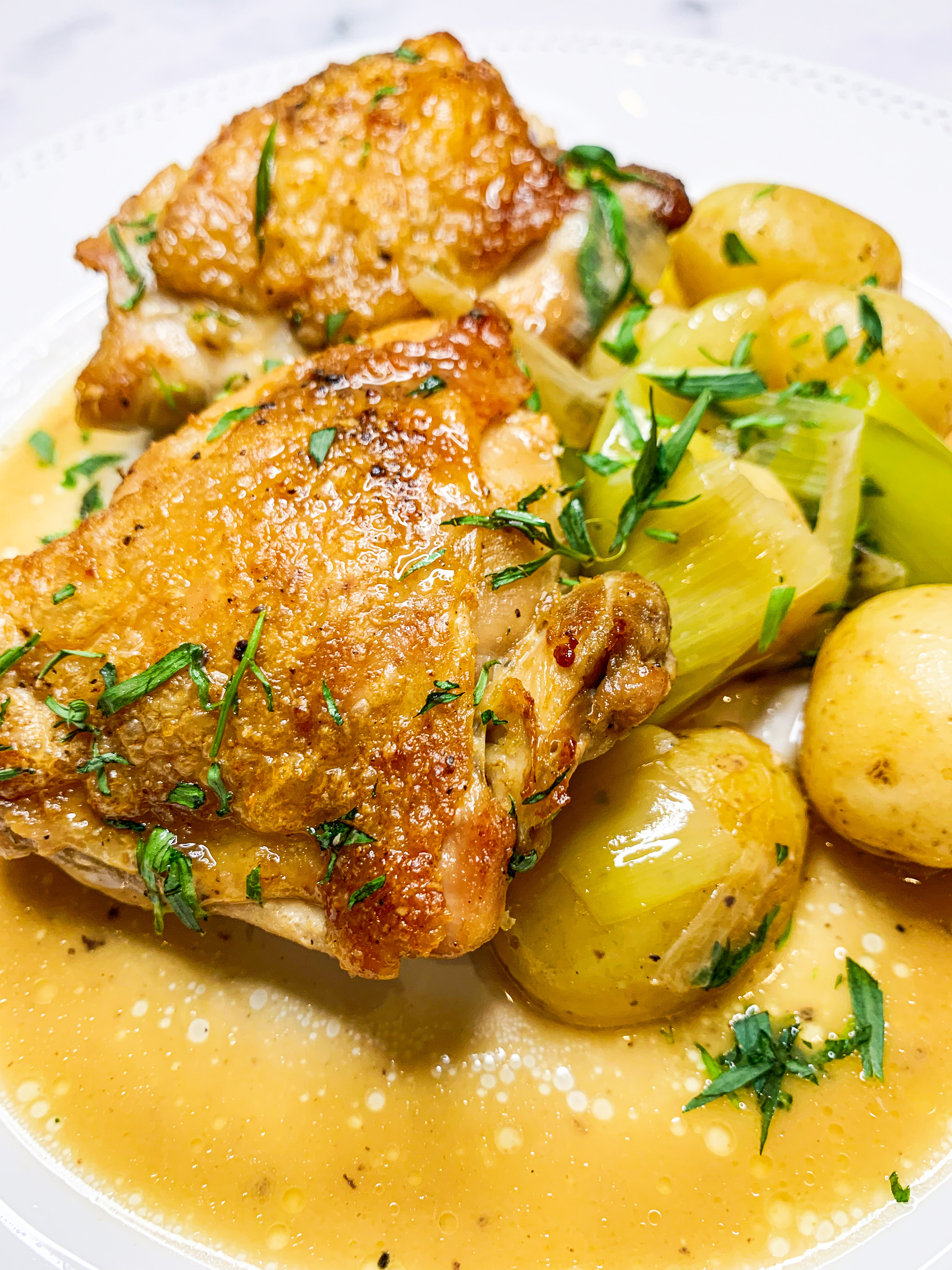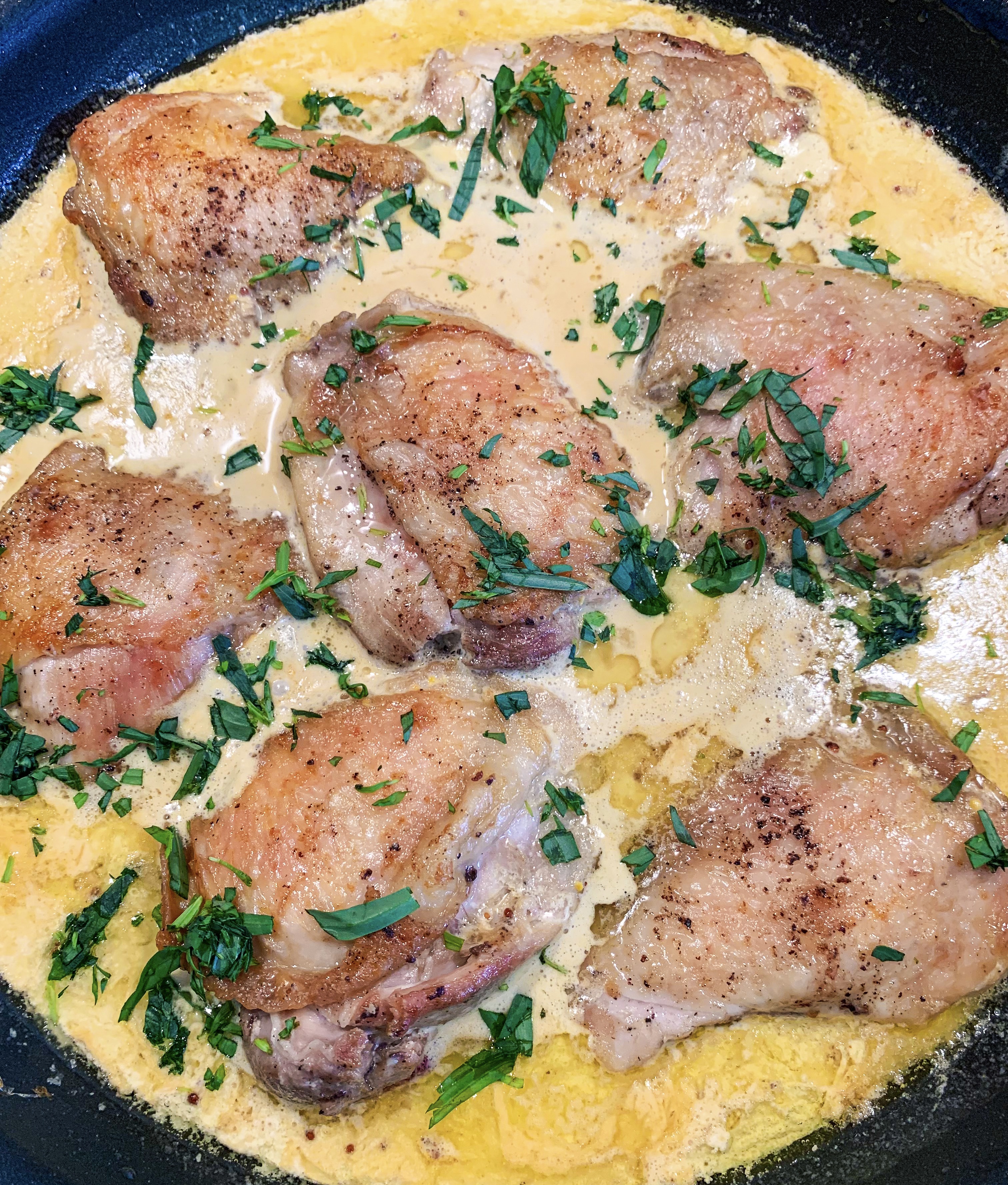 8 boneless chicken thighs, skin on (if you buy from a butcher ask him to bone them for you)