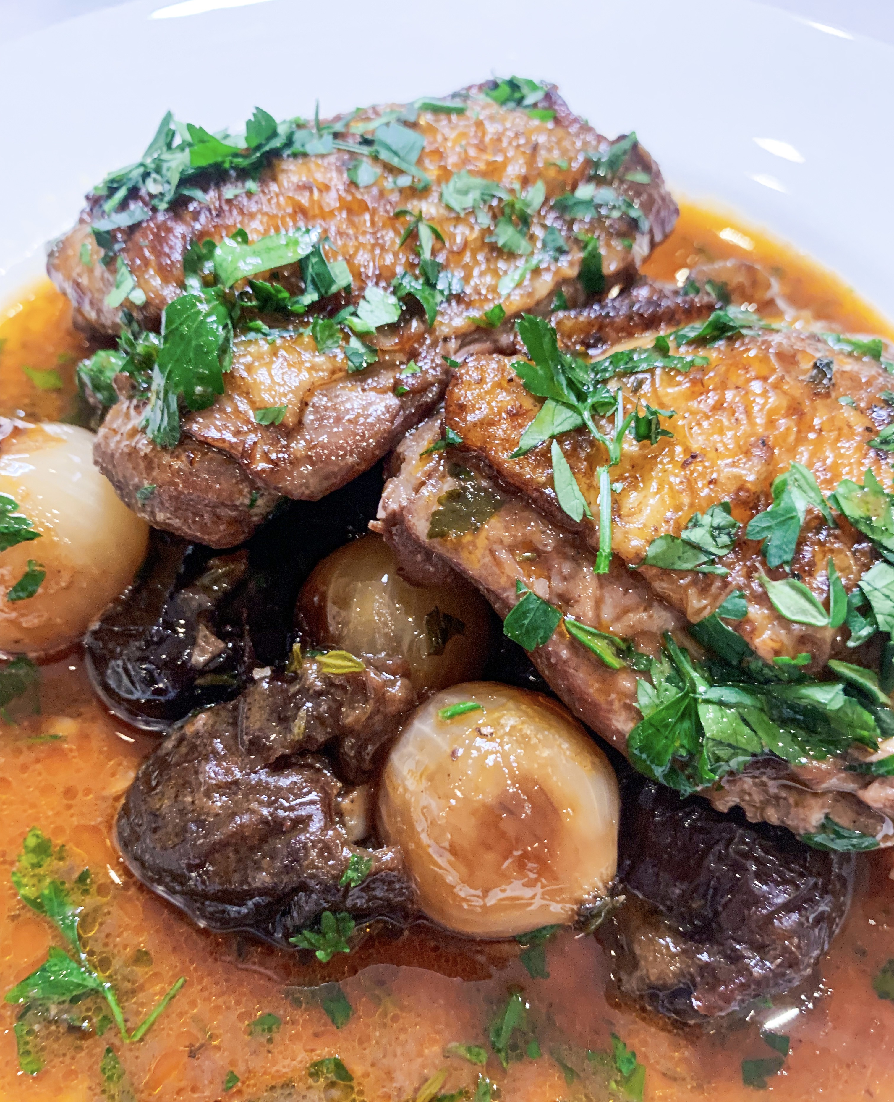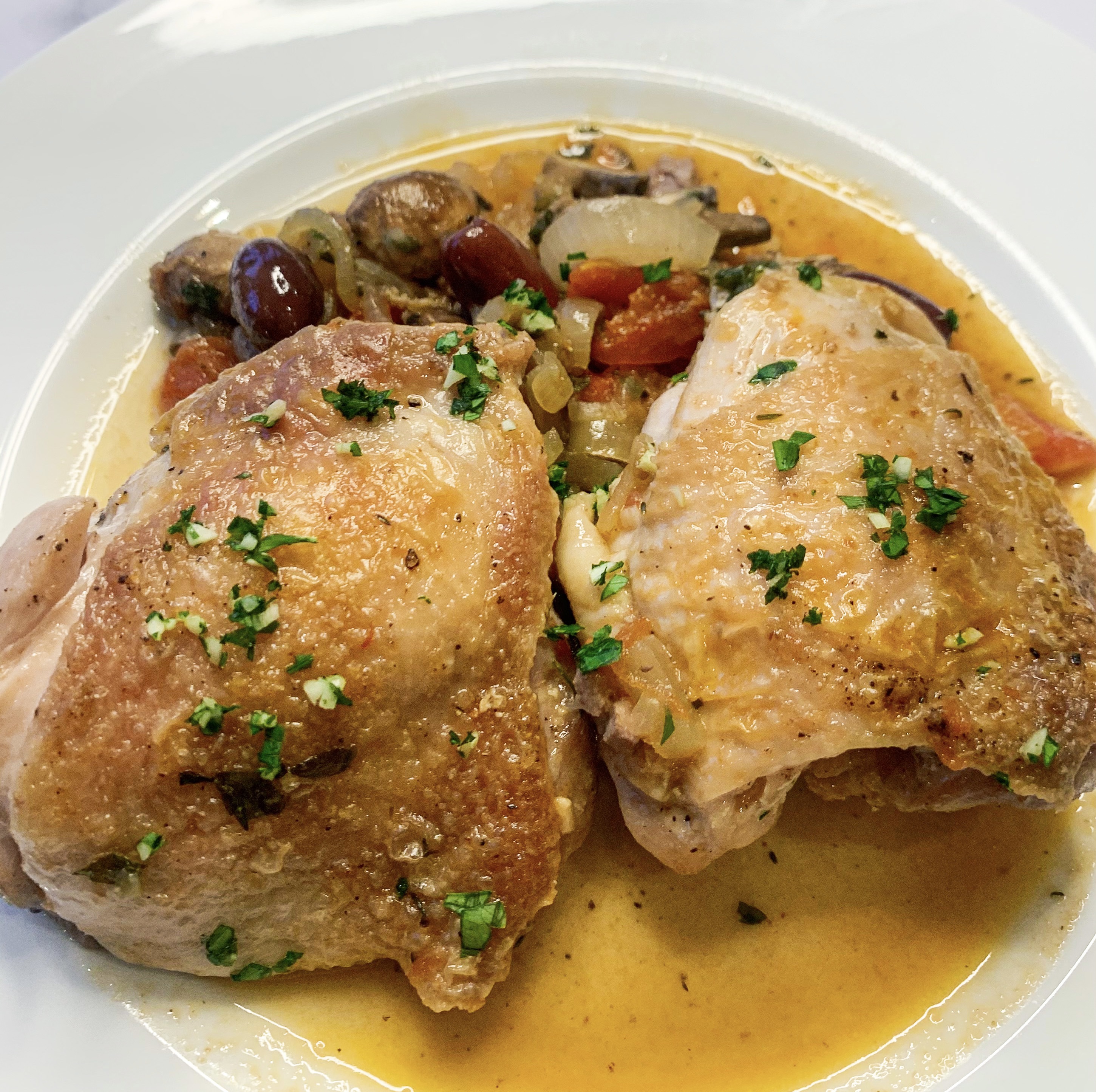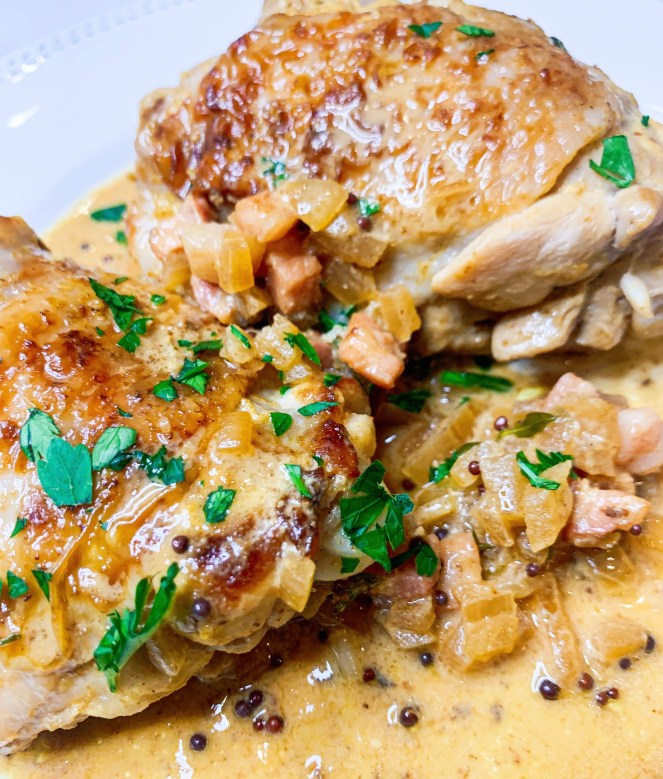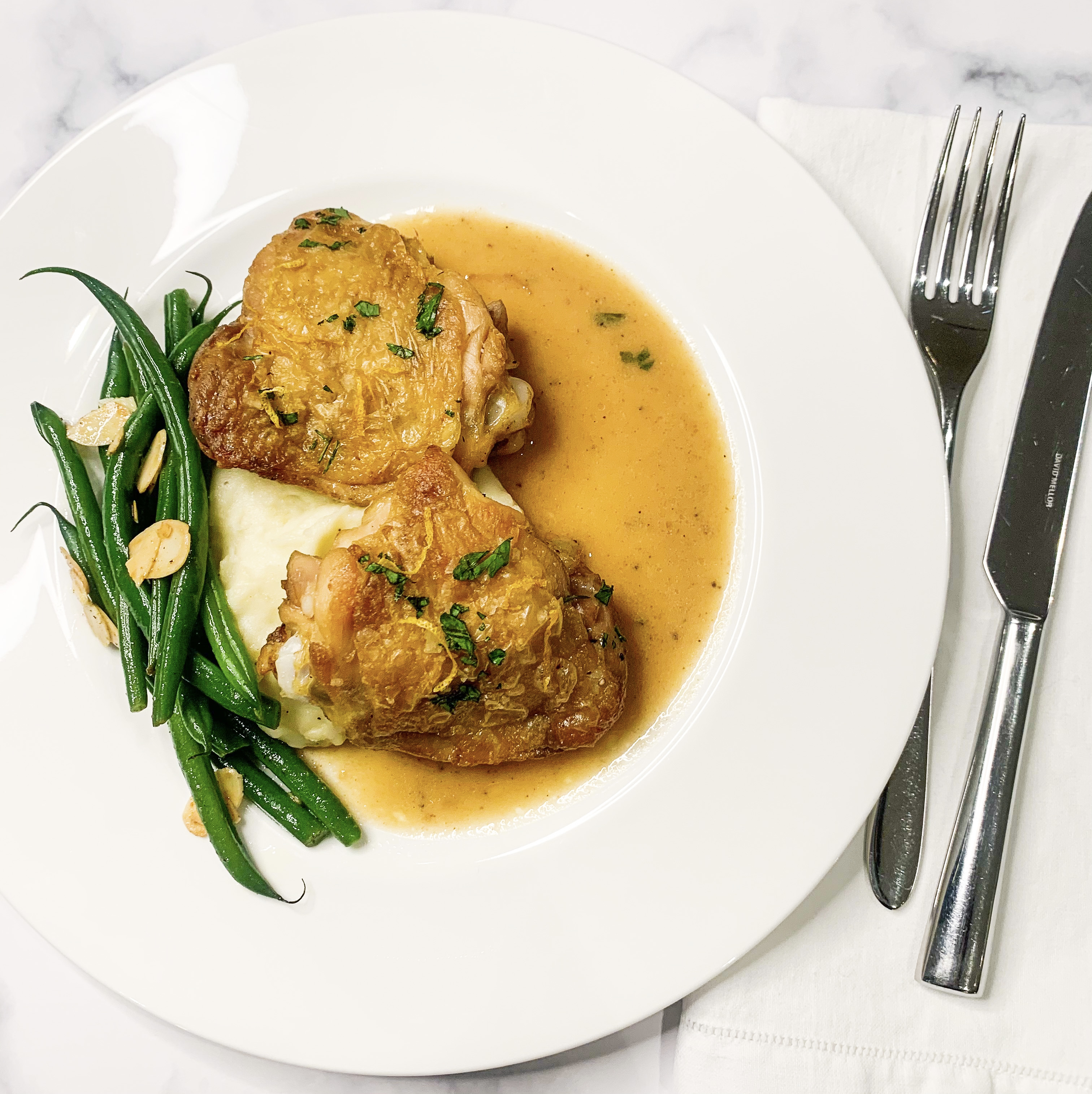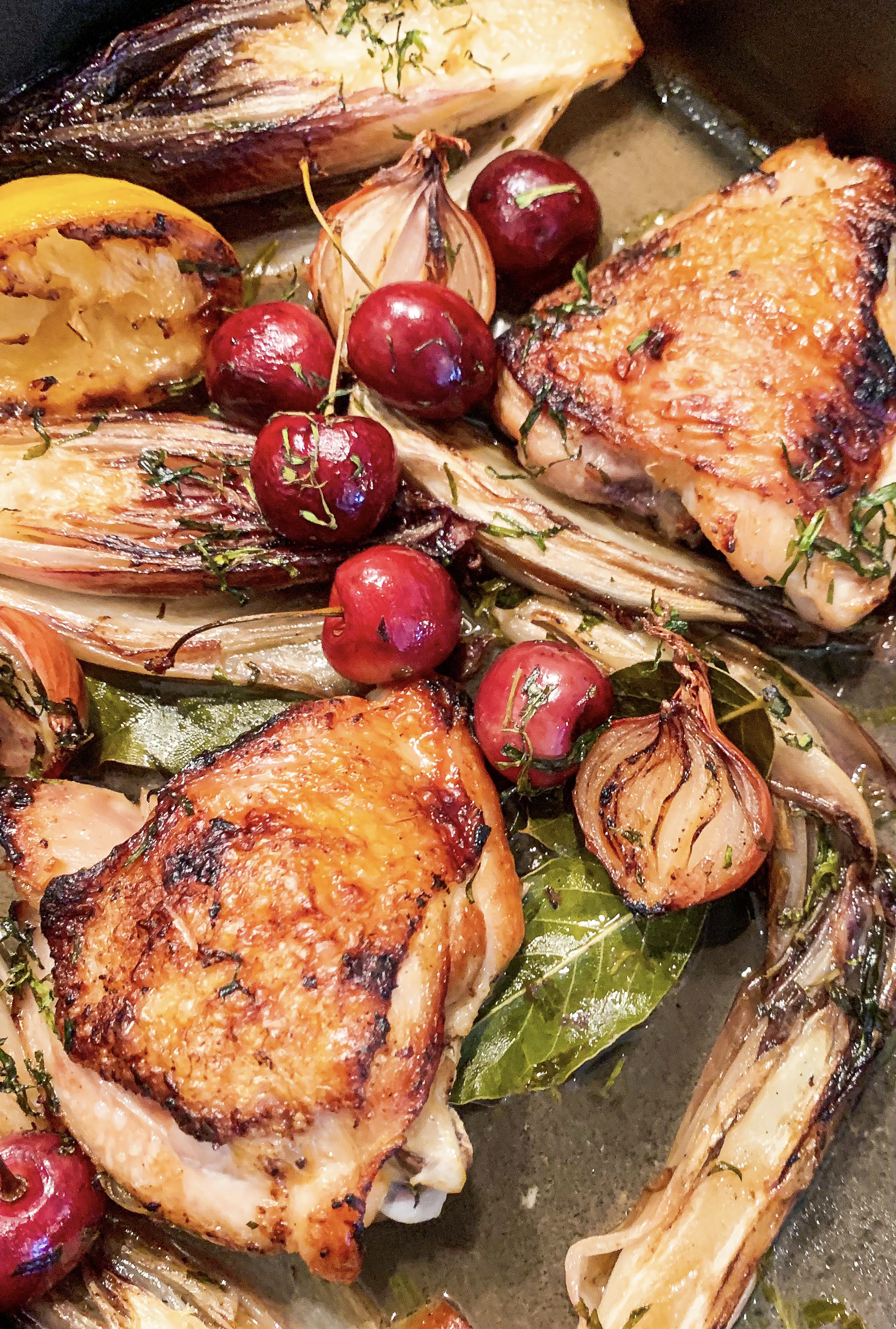 8 boneless chicken thighs, skin on (if you buy from a butcher ask him to bone them for you)