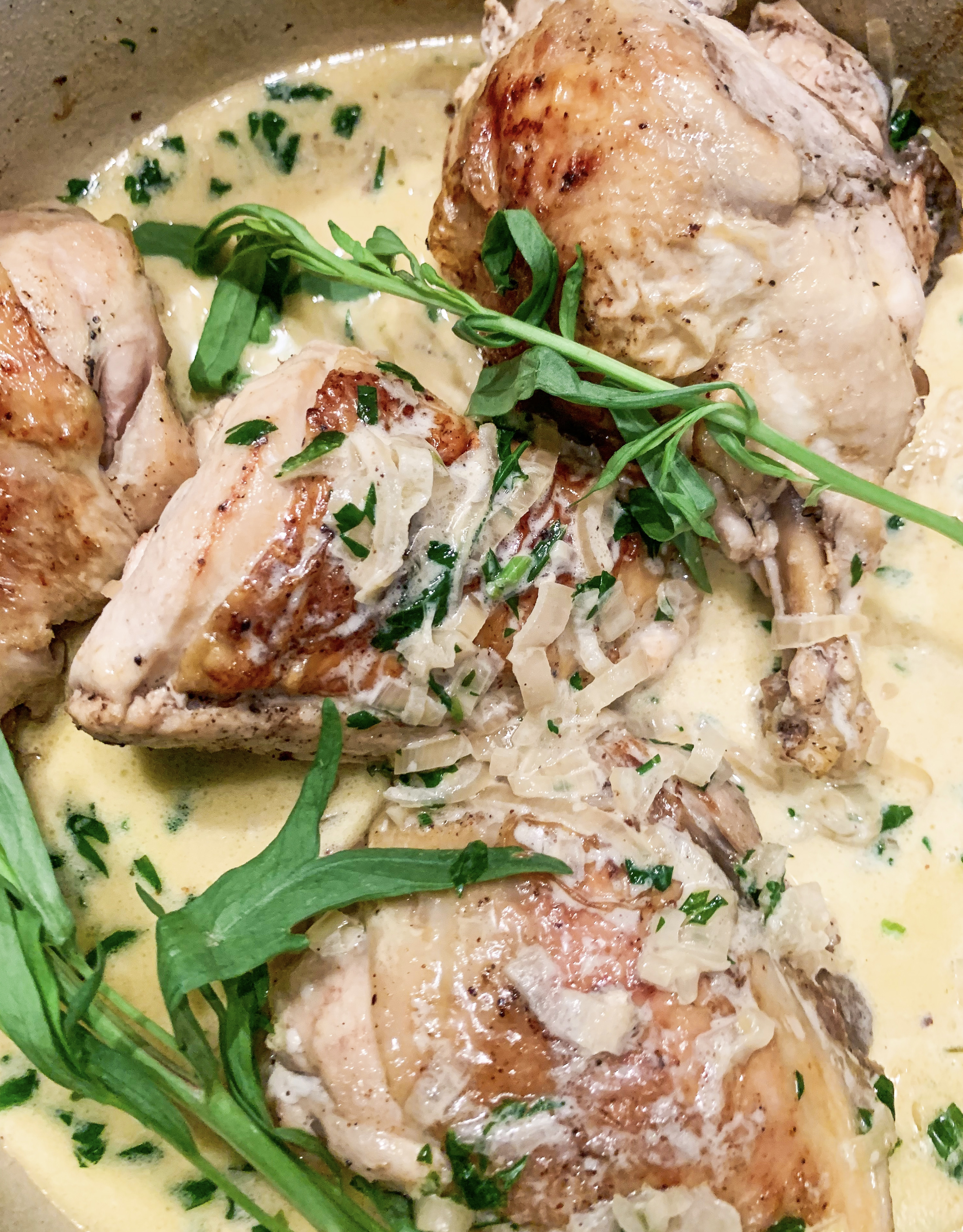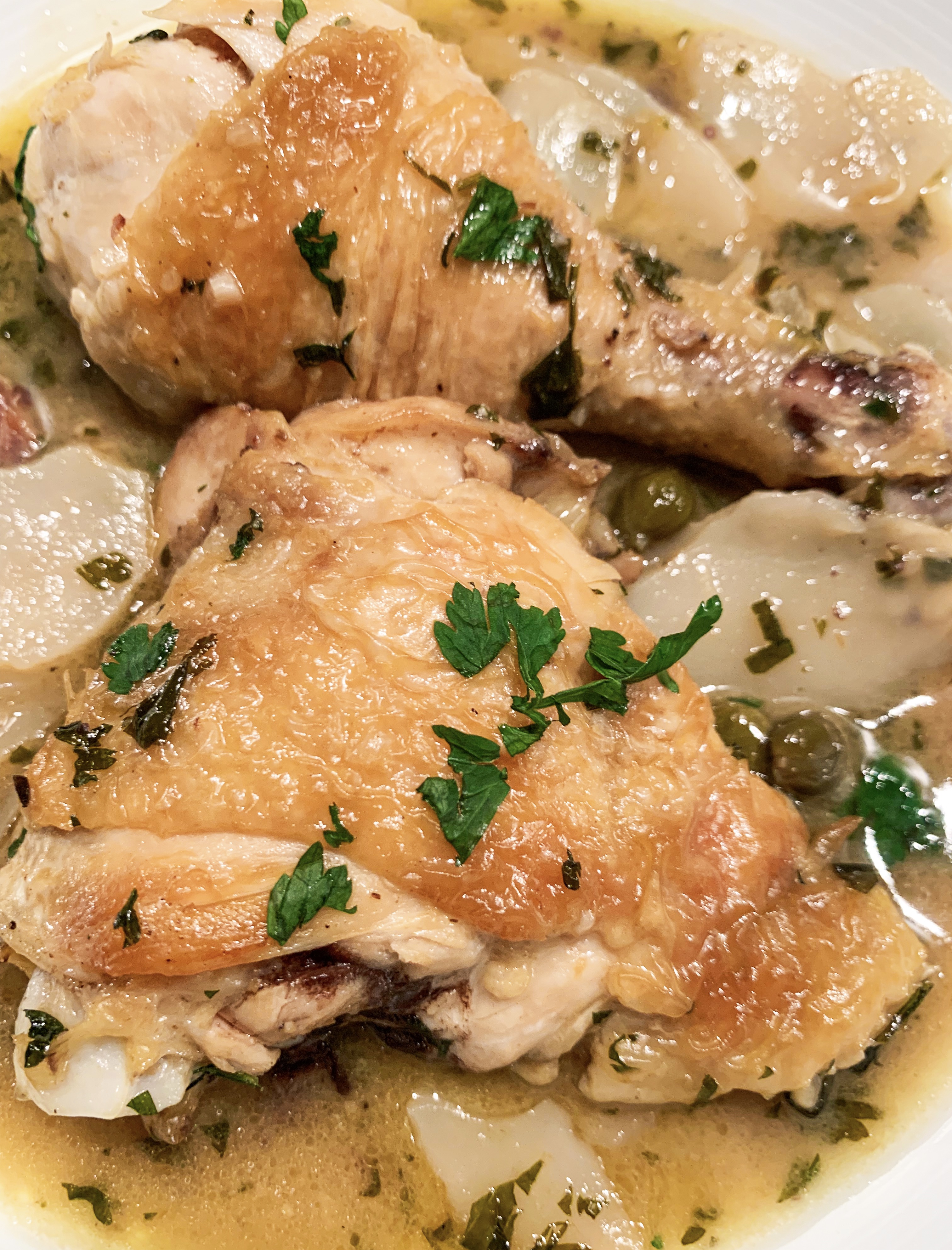 Fricasséed Chicken with Jerusalem Artichokes (Serves 4-6)