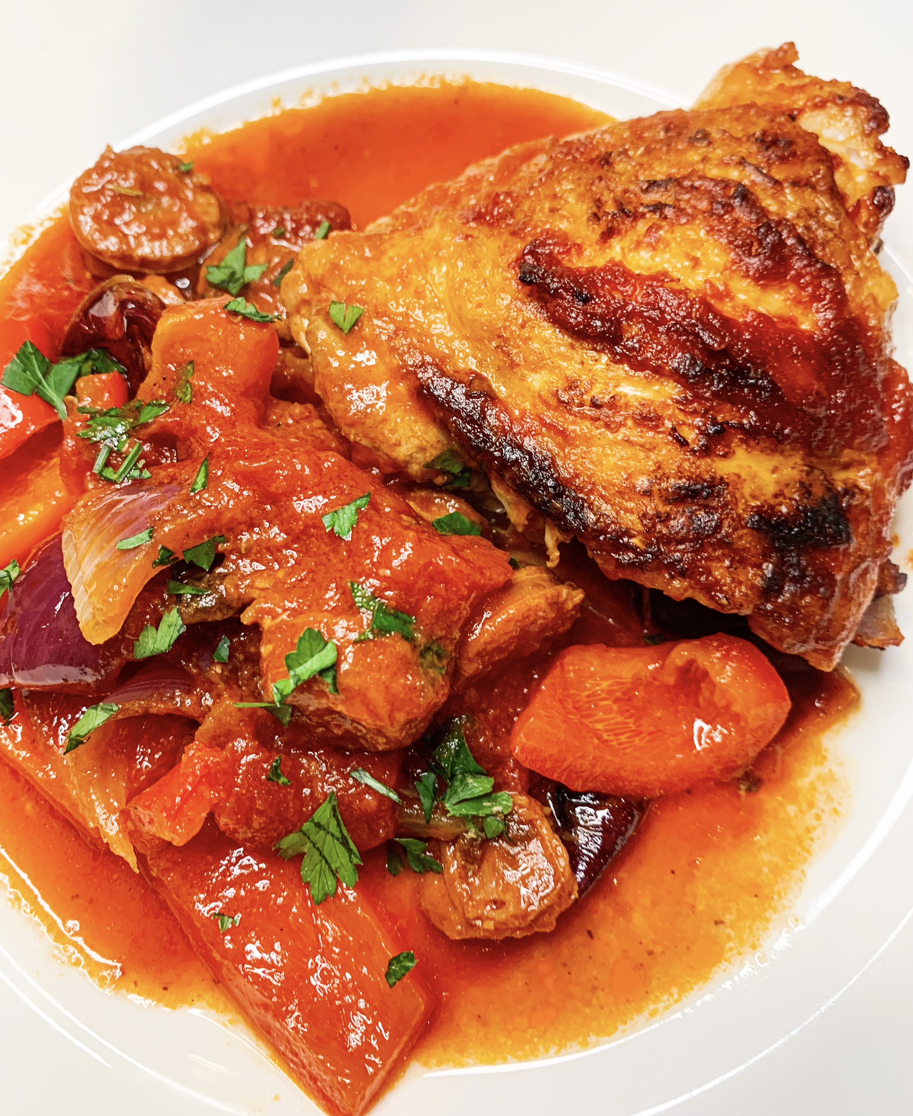 Moroccan Chicken with Tomatoes & Saffron-Honey Jam (Serves 4)
