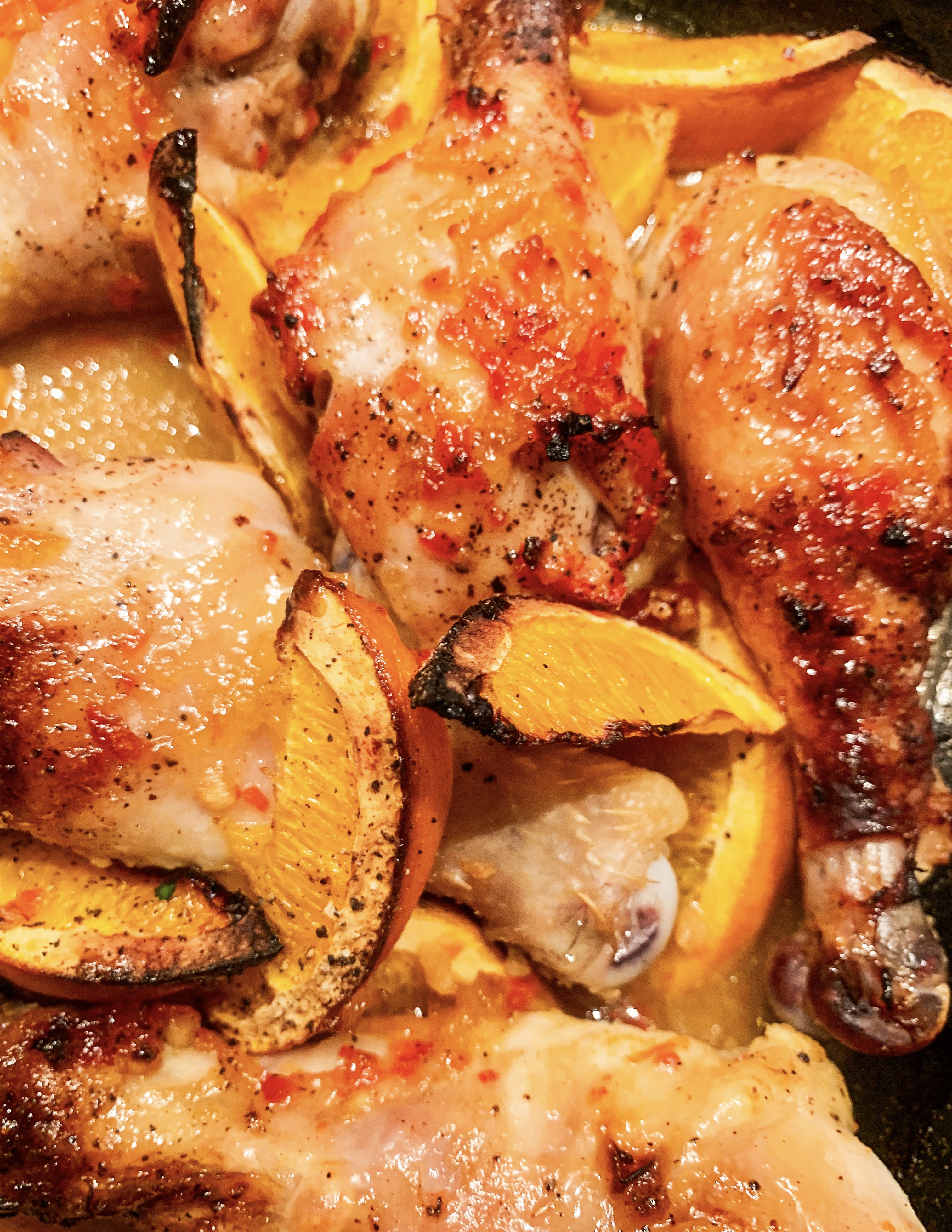 - Remove the chicken pieces and set aside, cover and keep warm. Now bring the juices to the boil and simmer until well reduced to a kind of cream – it shouldn’t be at all sloppy. Add the honey to taste and continue to cook until well-reduced and jam-like. Check the seasoning and add the orange flower water. Return the chicken to the pan and warm through.