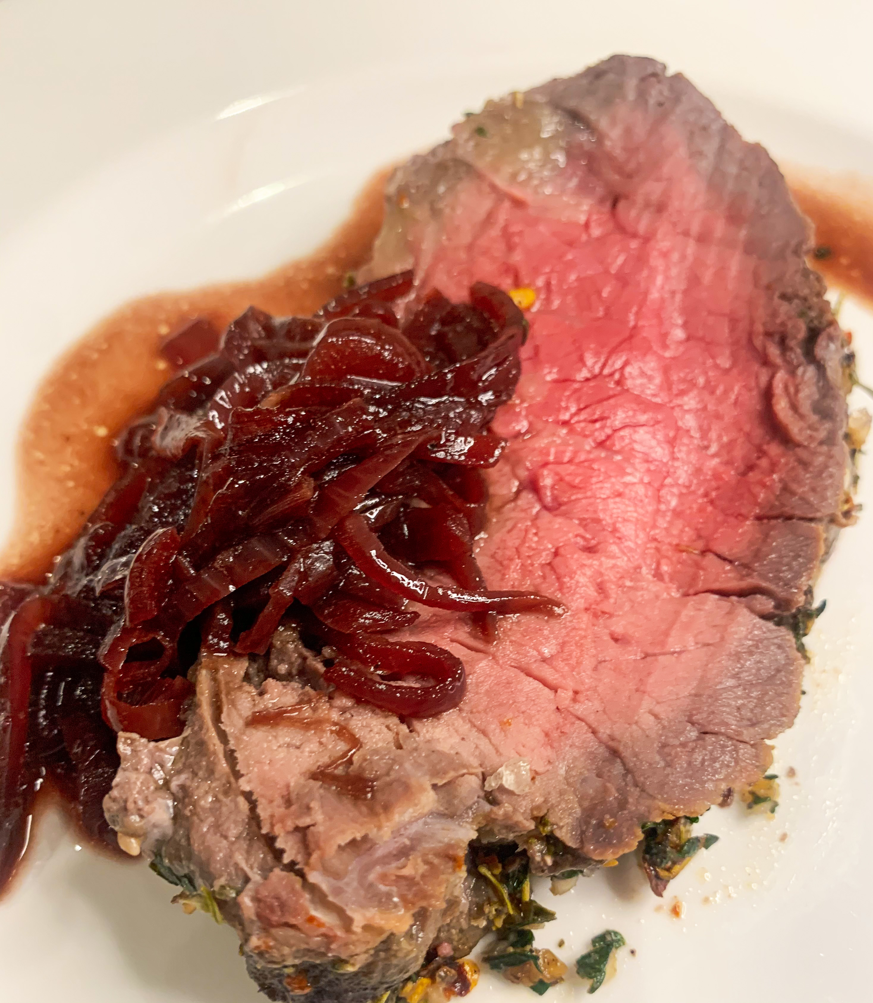 Five Spice Roast Fillet of Beef with Caramelised Onion & Red Wine Sauce