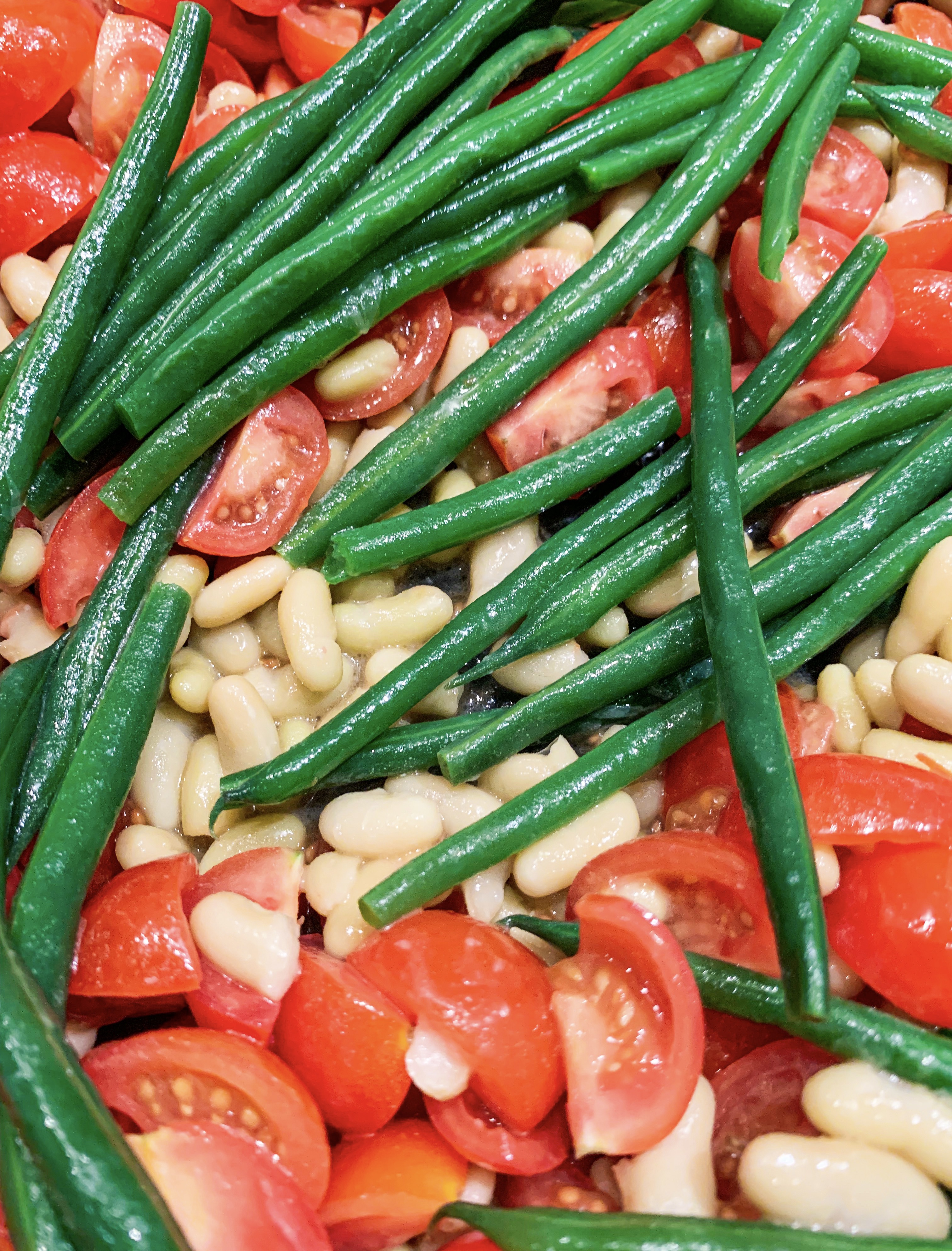 - Melt the butter in a frying pan and add the flageolet beans and the tomatoes, cook until the tomatoes are slightly softened and the beans are heated through. Add the fine green beans and reheat.