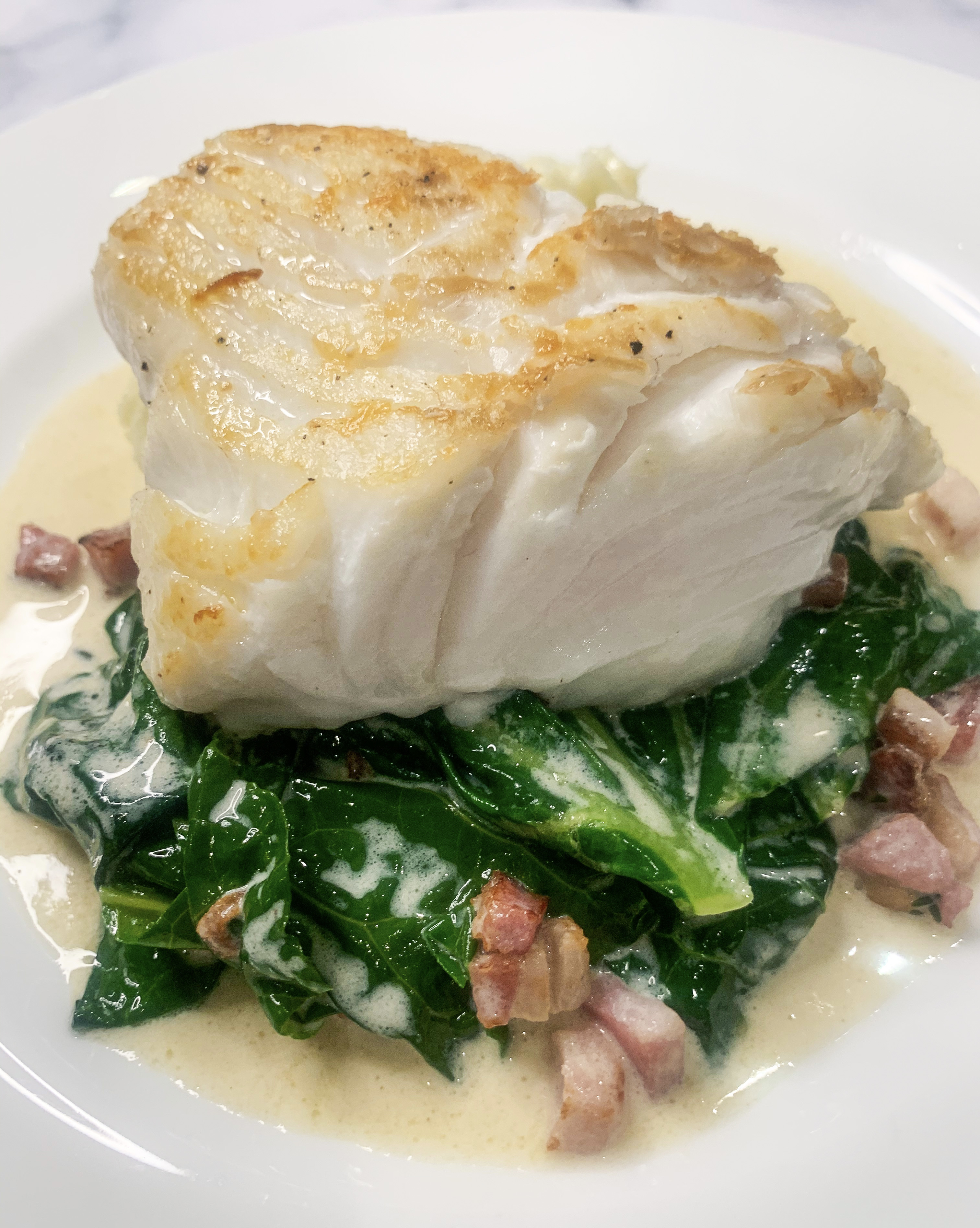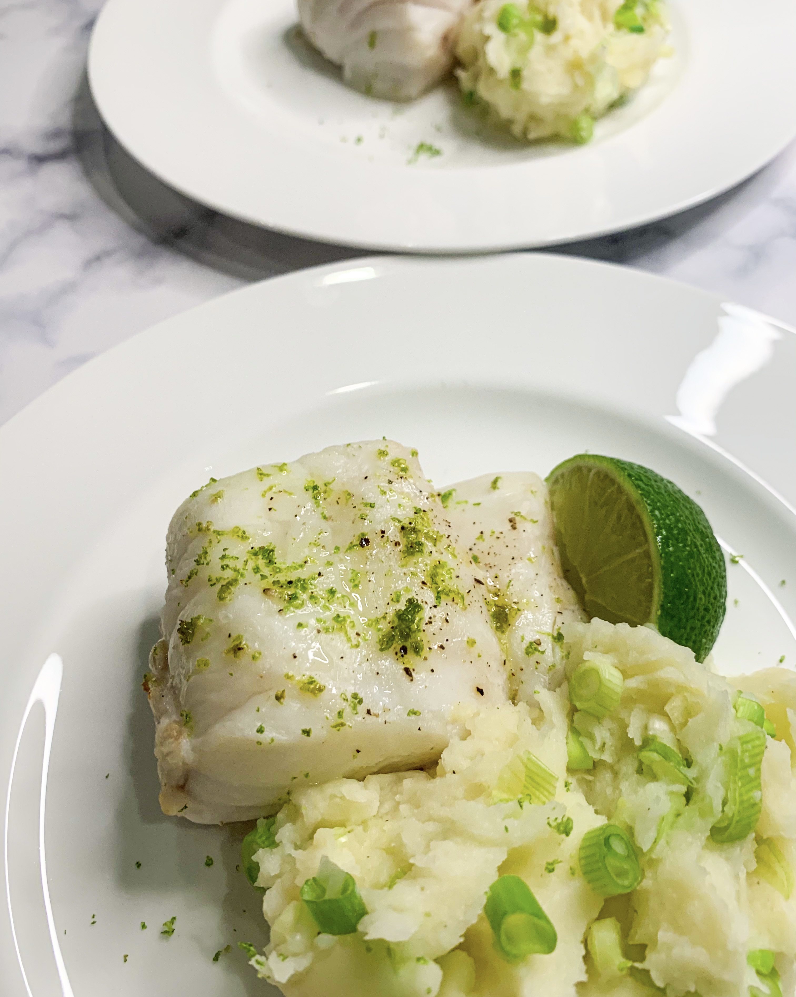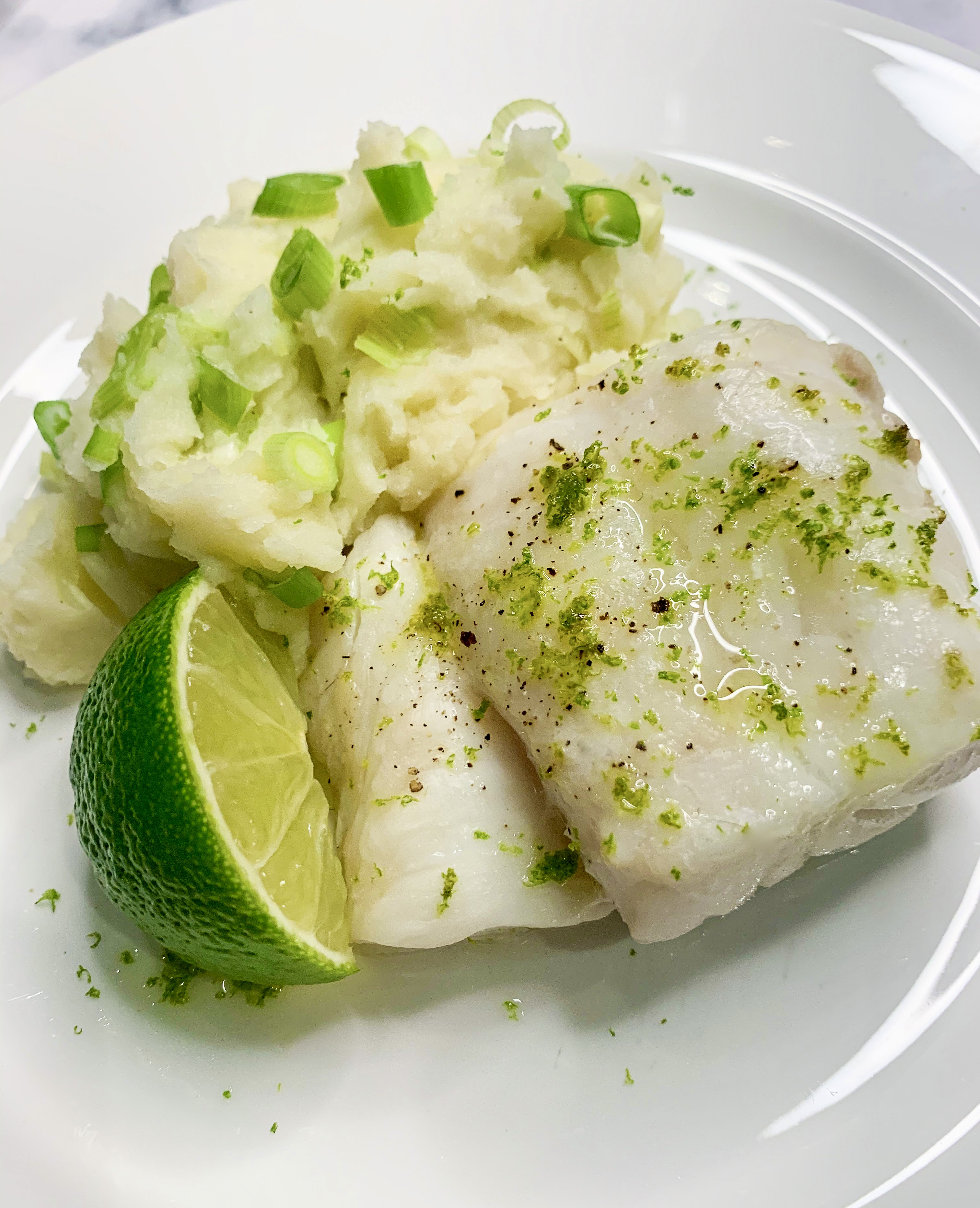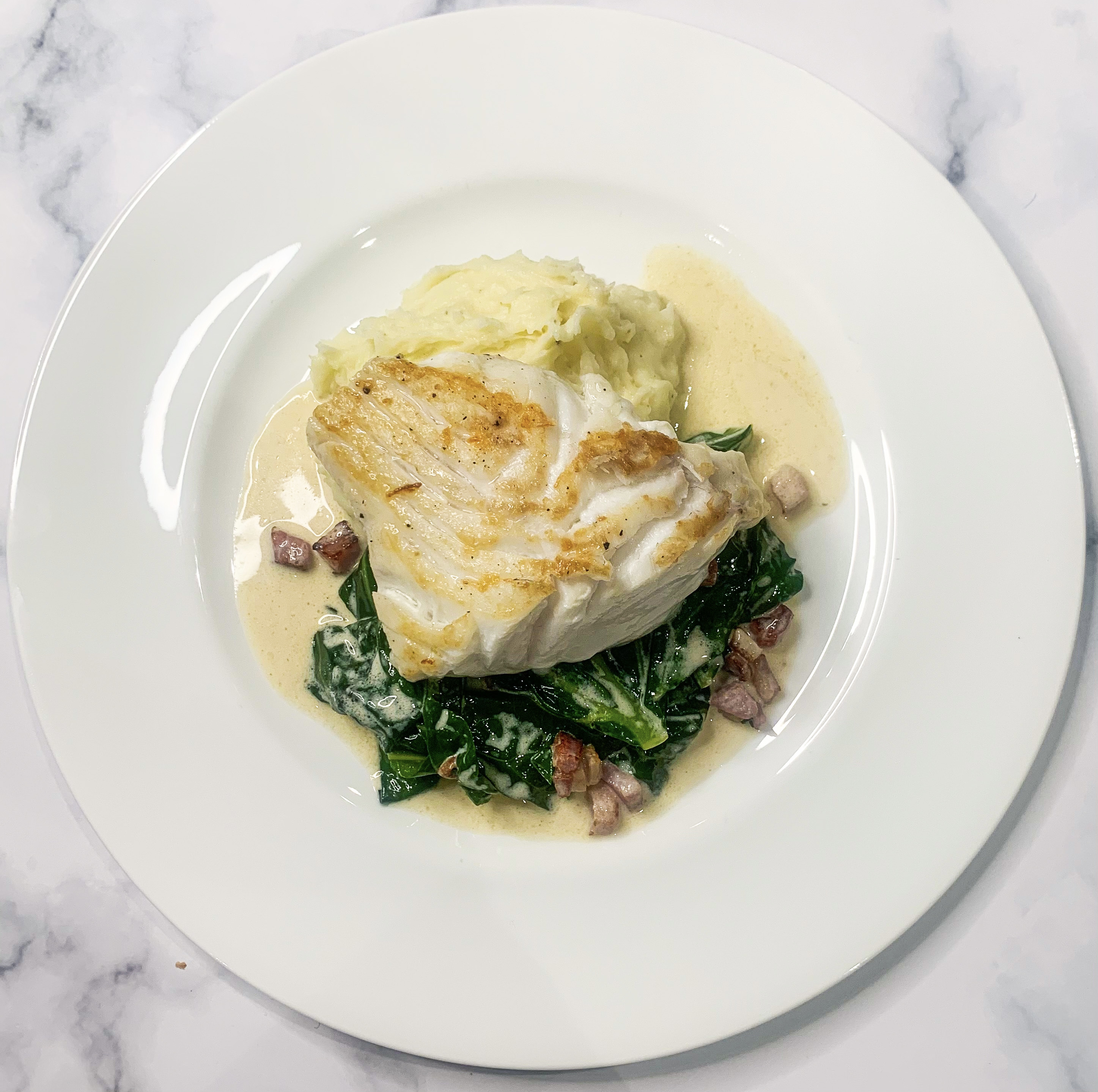 Butter Roasted Cod with Spring Onion Mash (Serves 1)