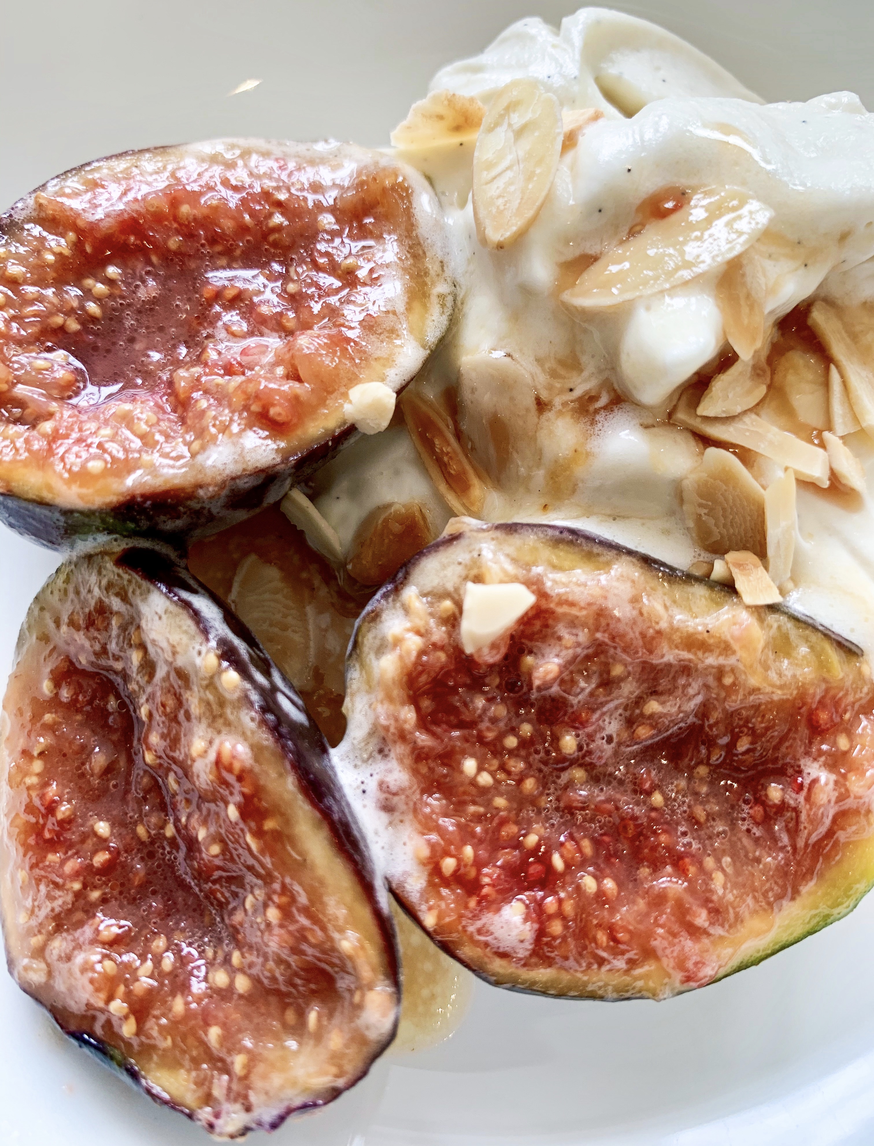 - Spoon the mascarpone into bowls and top with the figs and some of the sauce. To finish sprinkle with the toasted almonds.