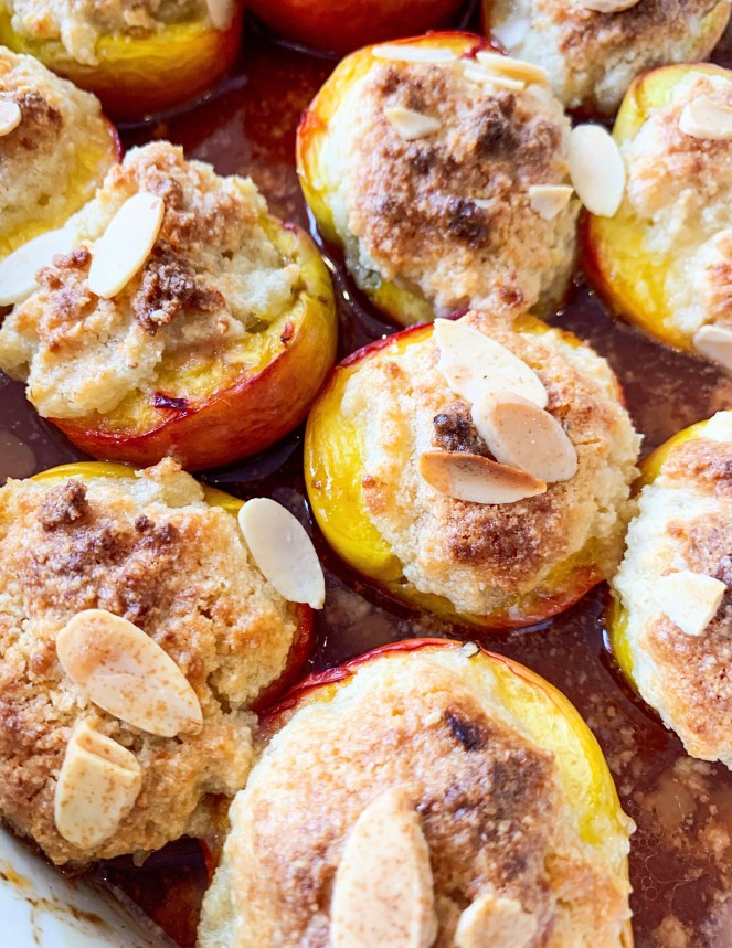 - Place in a preheated oven, 180’c fan, and bake for about 30 minutes until the apple is soft and the top has firmly set.