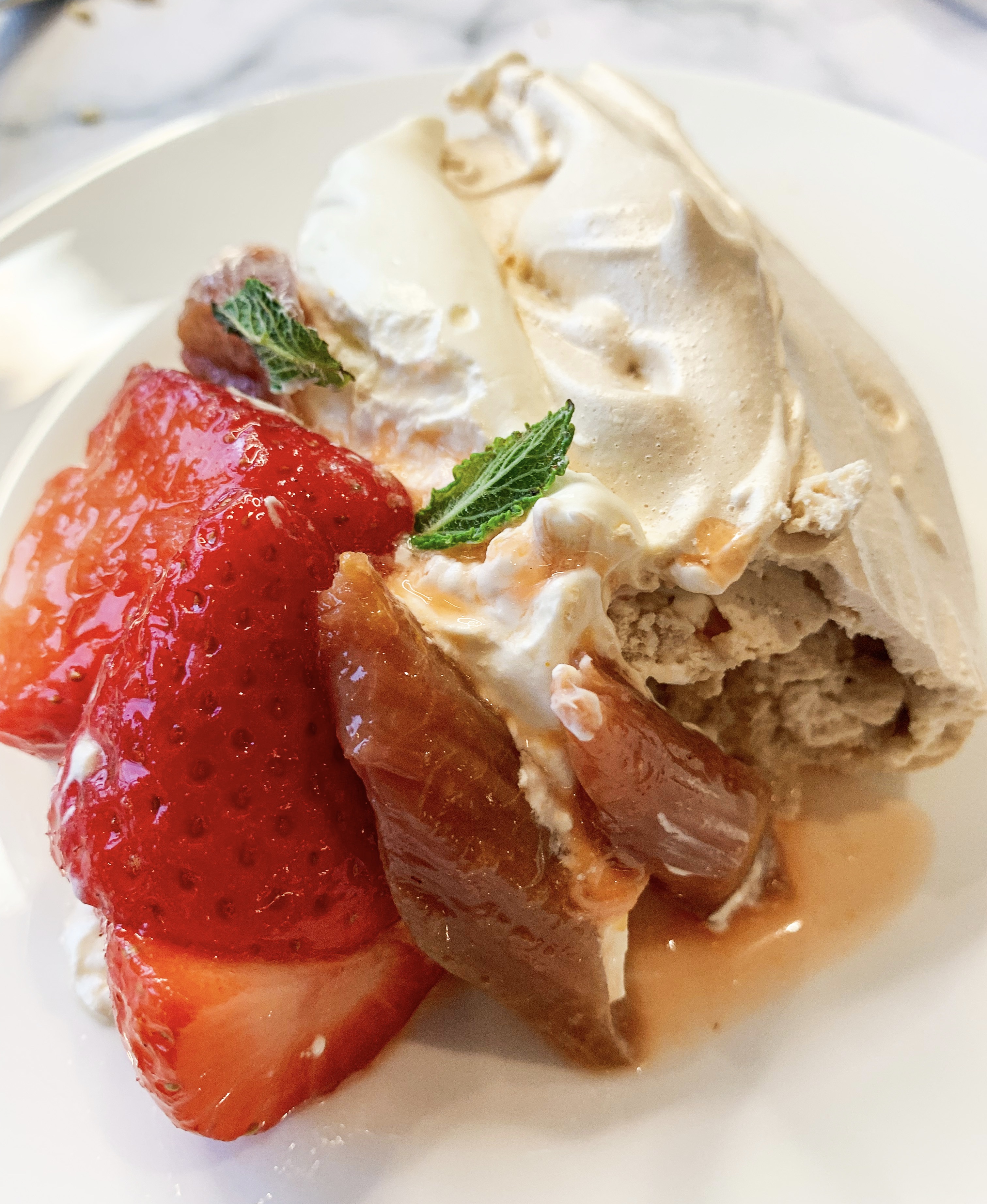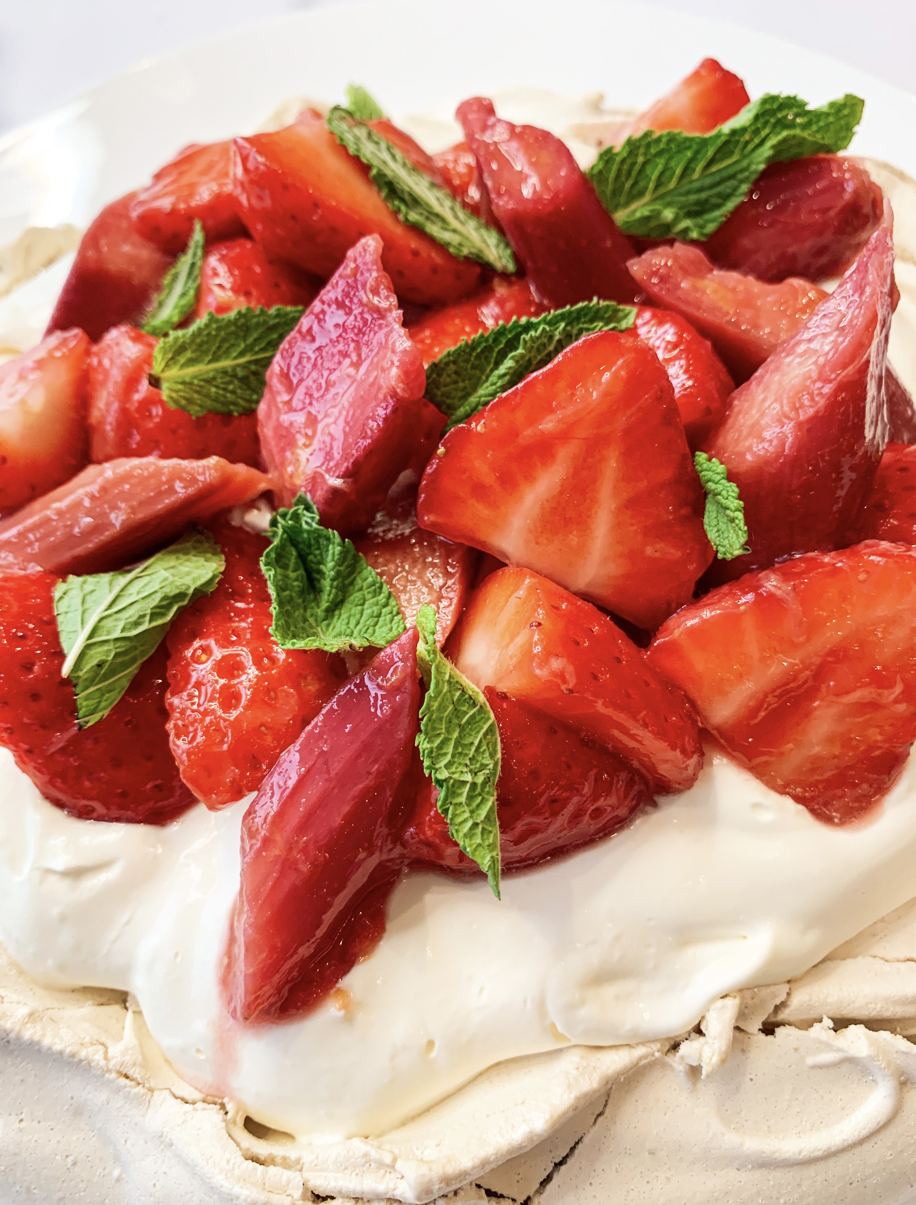 Brown Sugar Pavlova with Strawberries and Rhubarb (Serve 6)