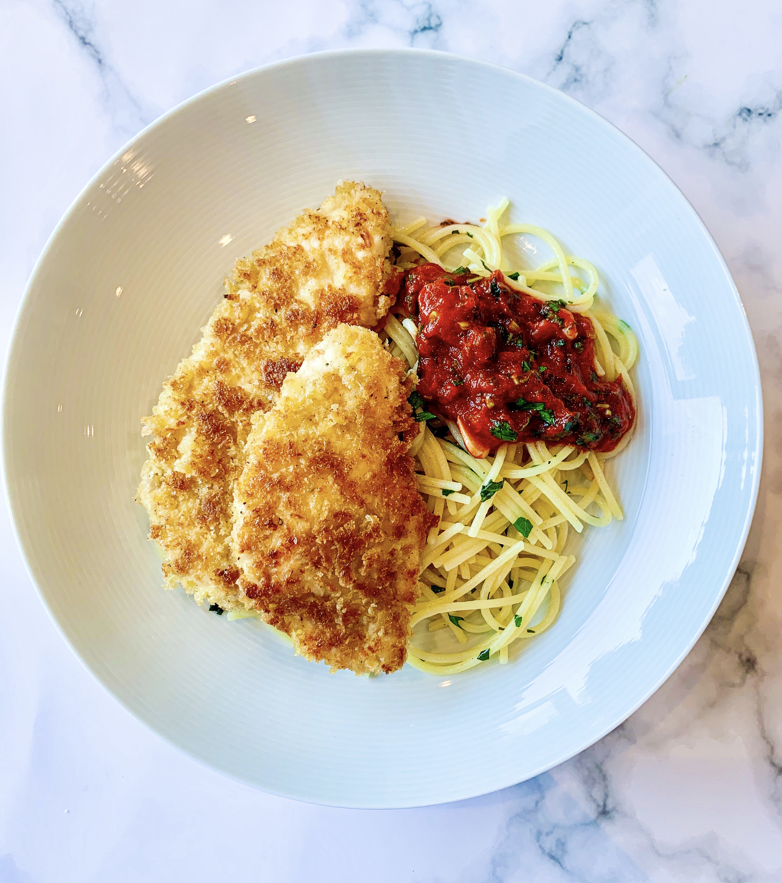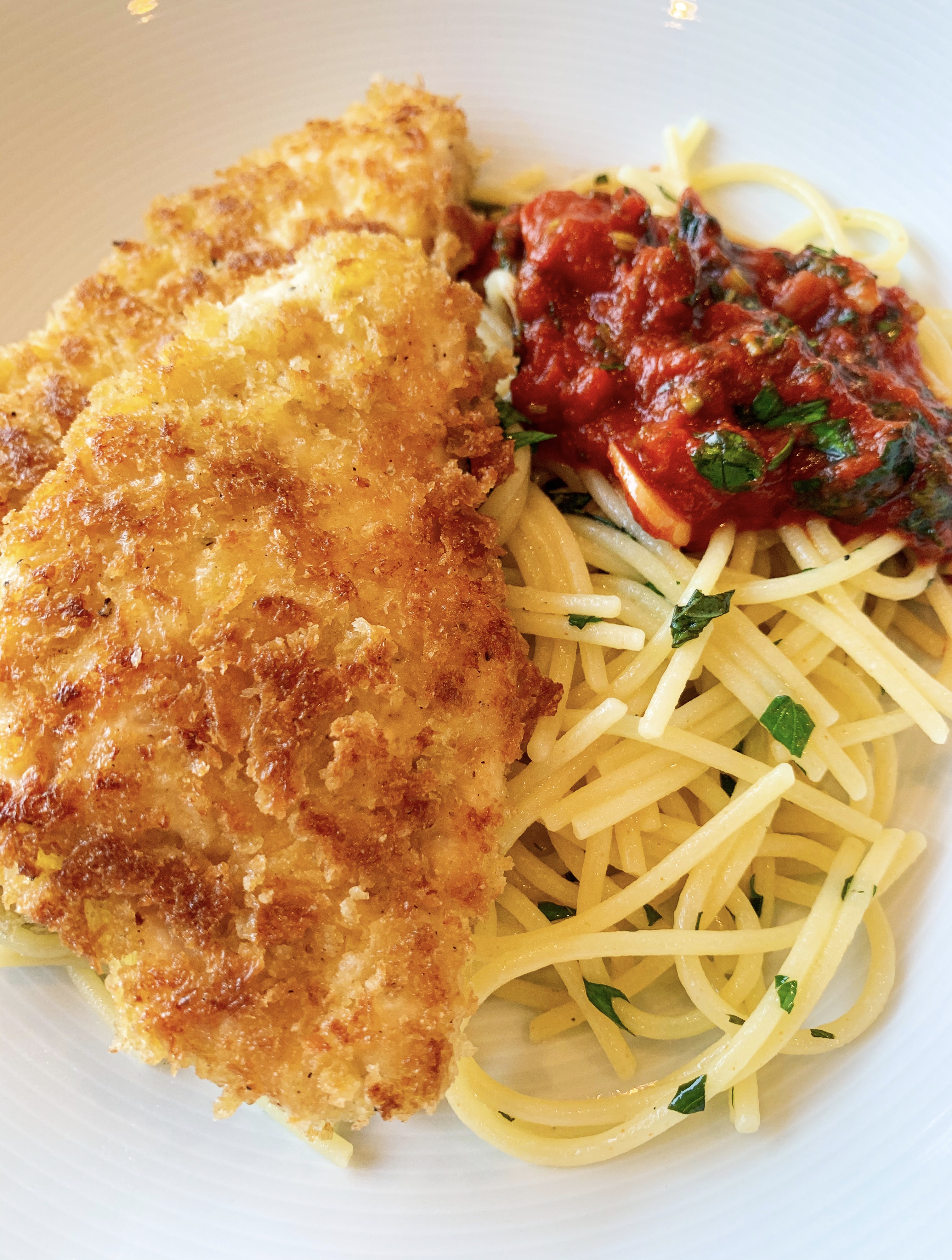 Chicken Milanese with Spaghetti & Tomato Sauce (Serves 4)