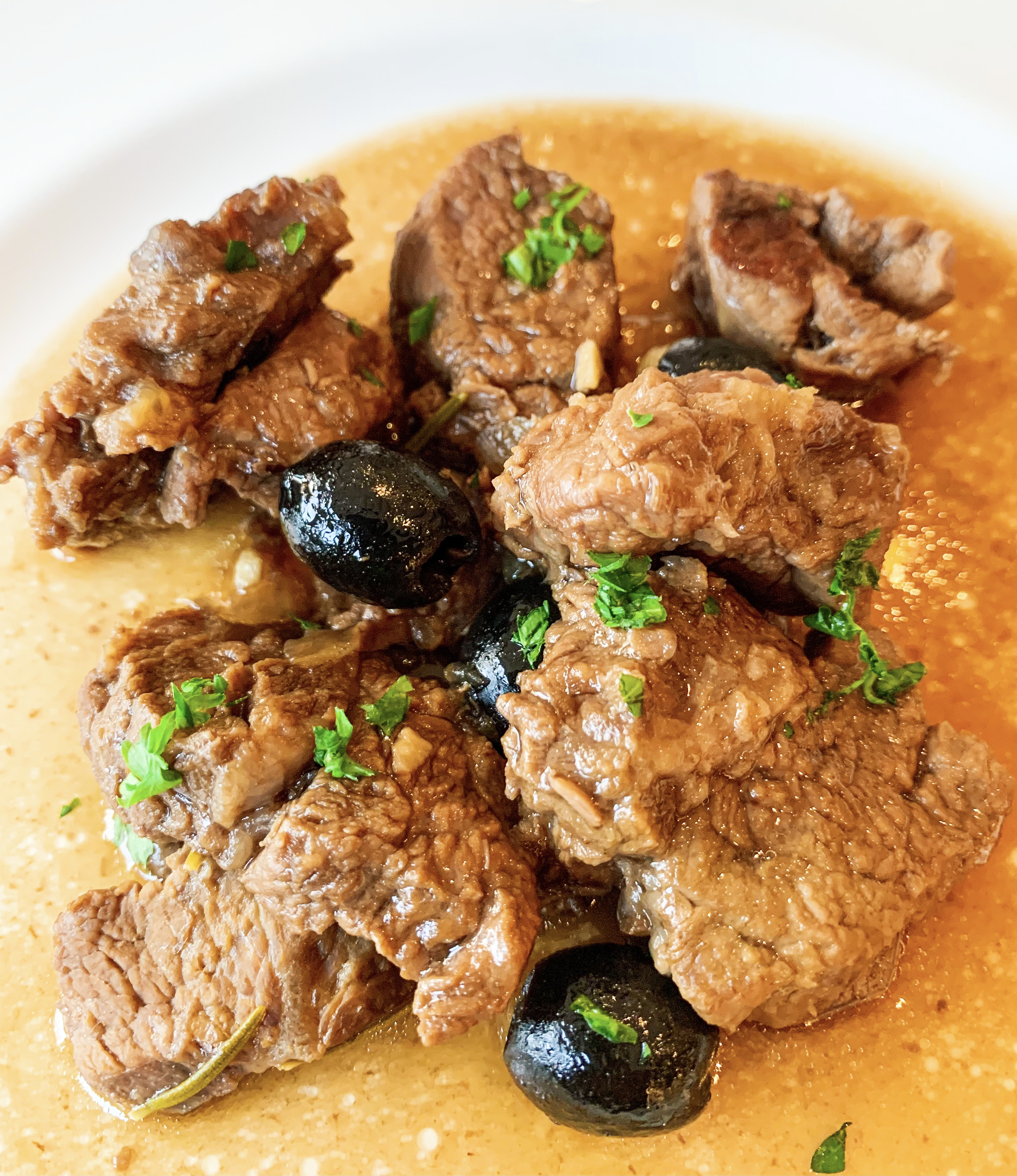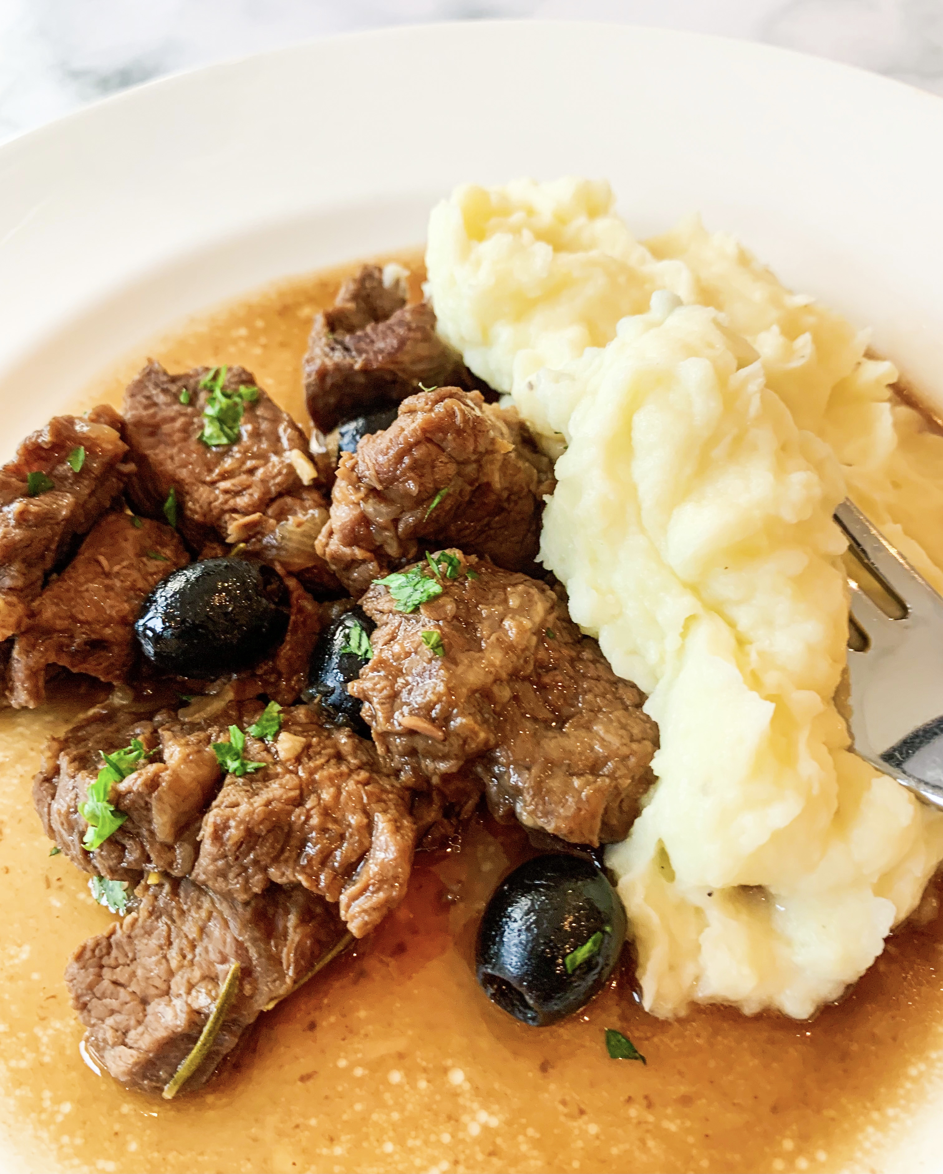 - Check that the lamb is tender and that the liquid is reduced by half, no more, (if not continue to cook for a further 15 minutes). Add the olives and pomegranate molasses and cook gently for a further 10 minutes until the sauce is lovely and shiny. Finally, add the lemon zest to taste and season with salt and pepper. Serve with ‘Creamy Garlic Mashed Potato’ (recipe here).