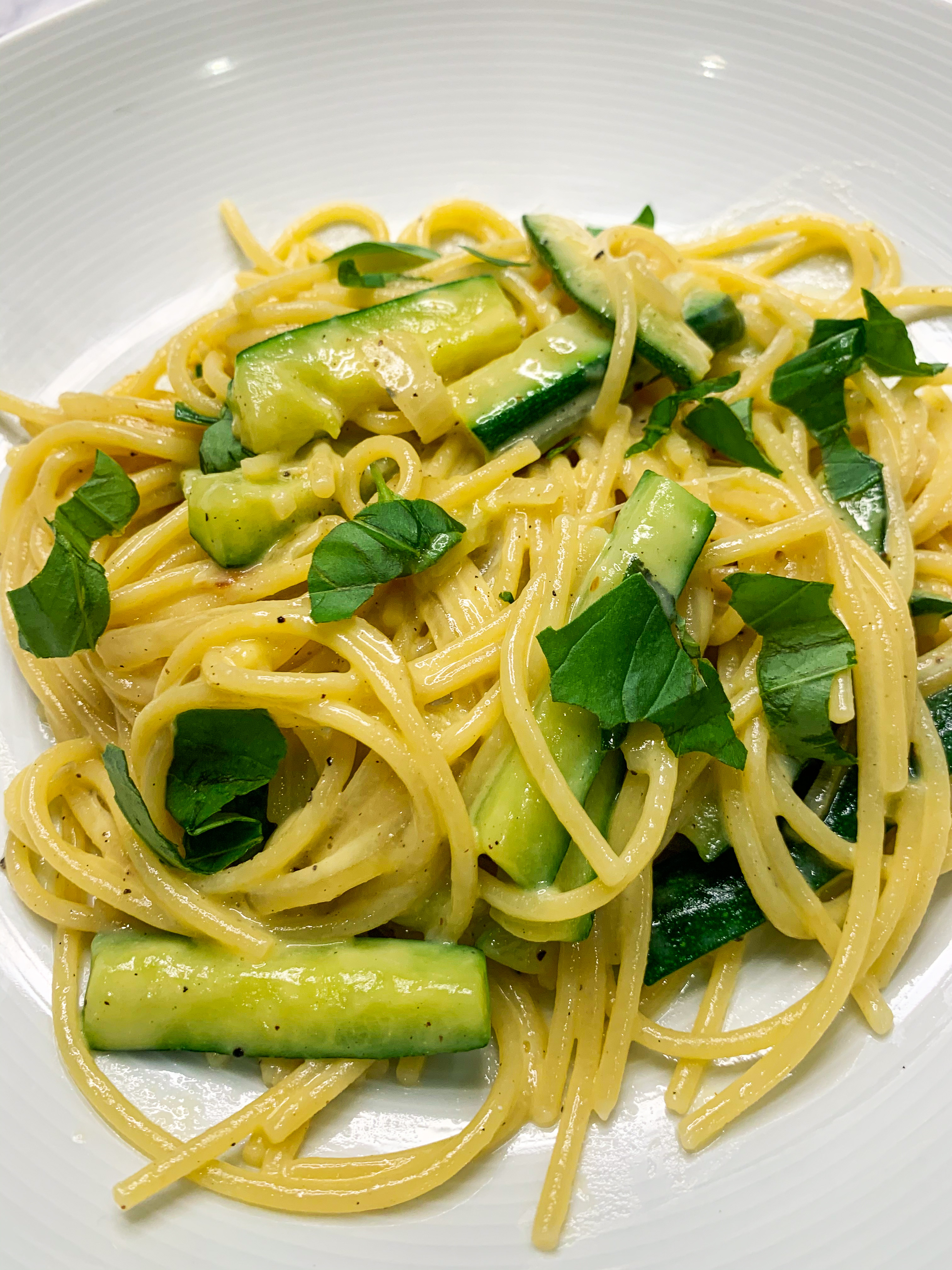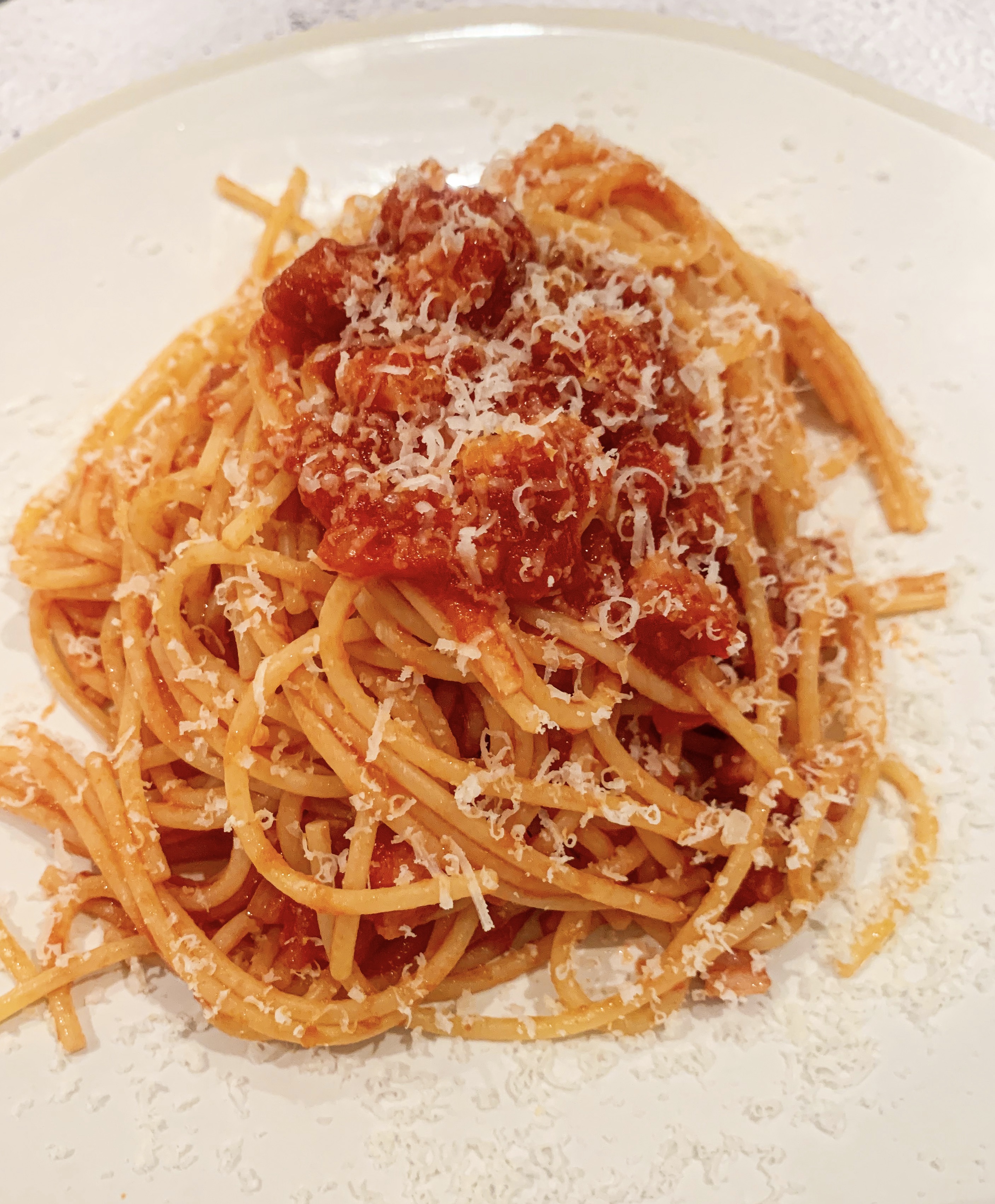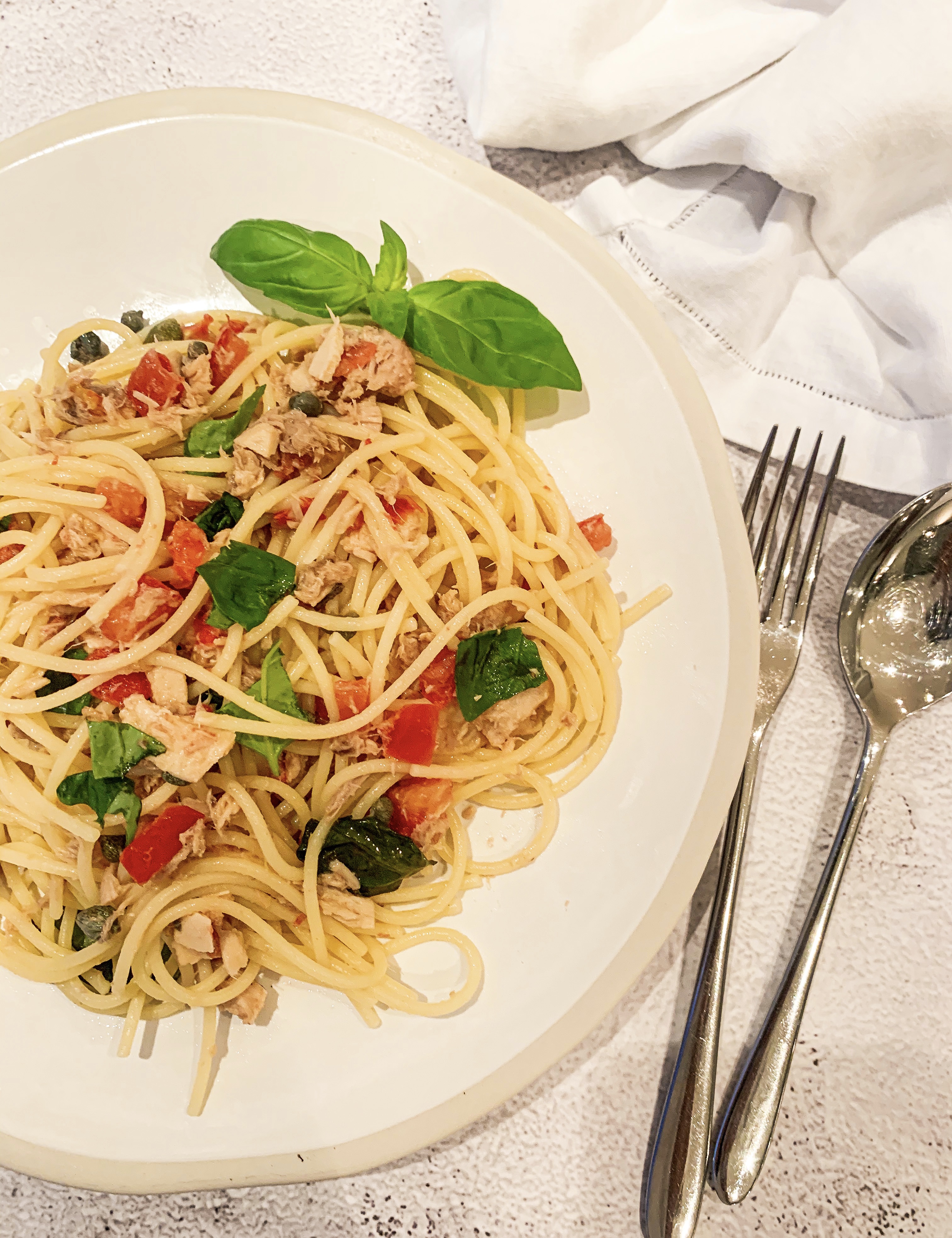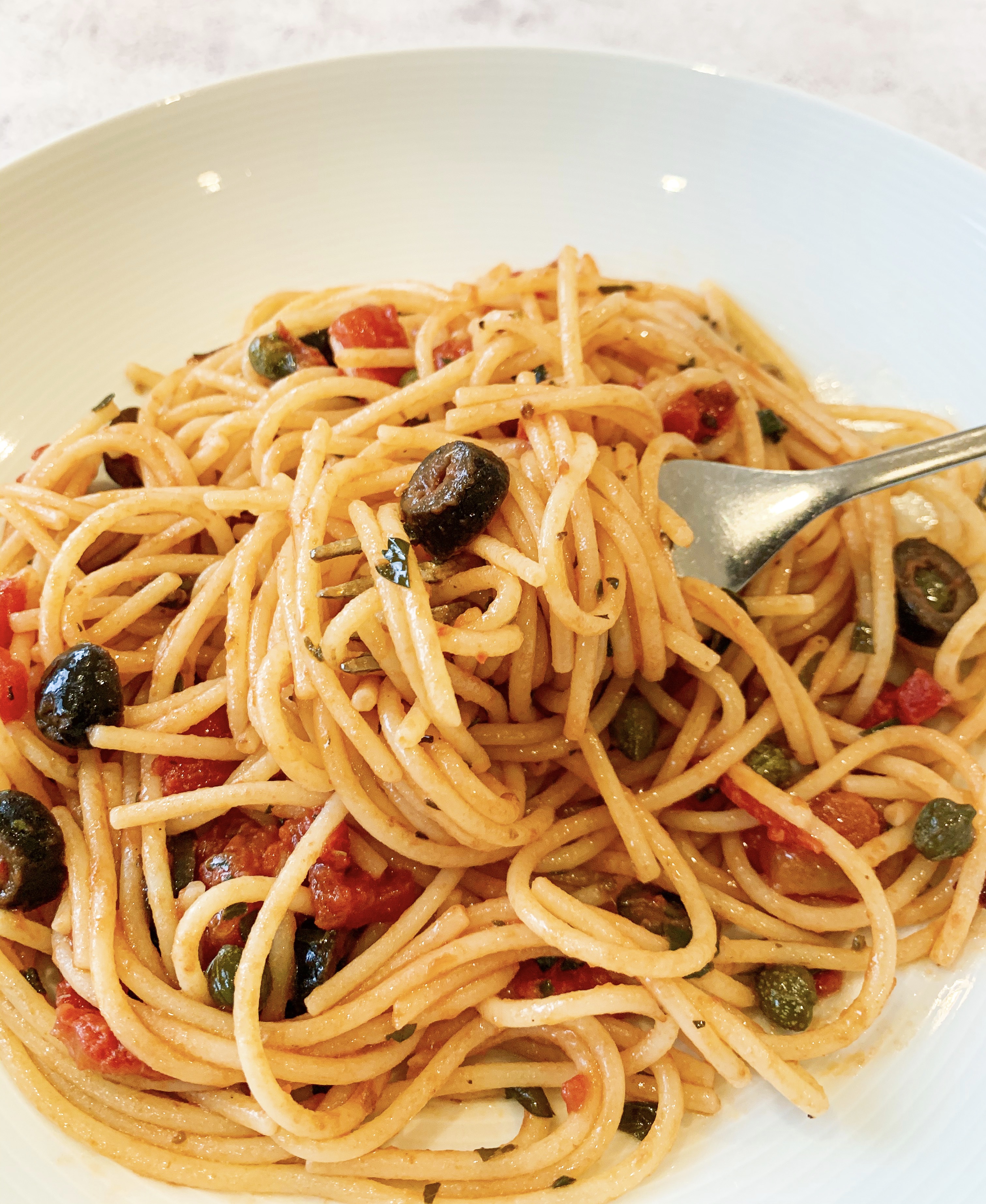 This is a perfect summer pasta dish, a delicious ‘no cook’ sauce for spaghetti with the added bonus of being vegetarian!