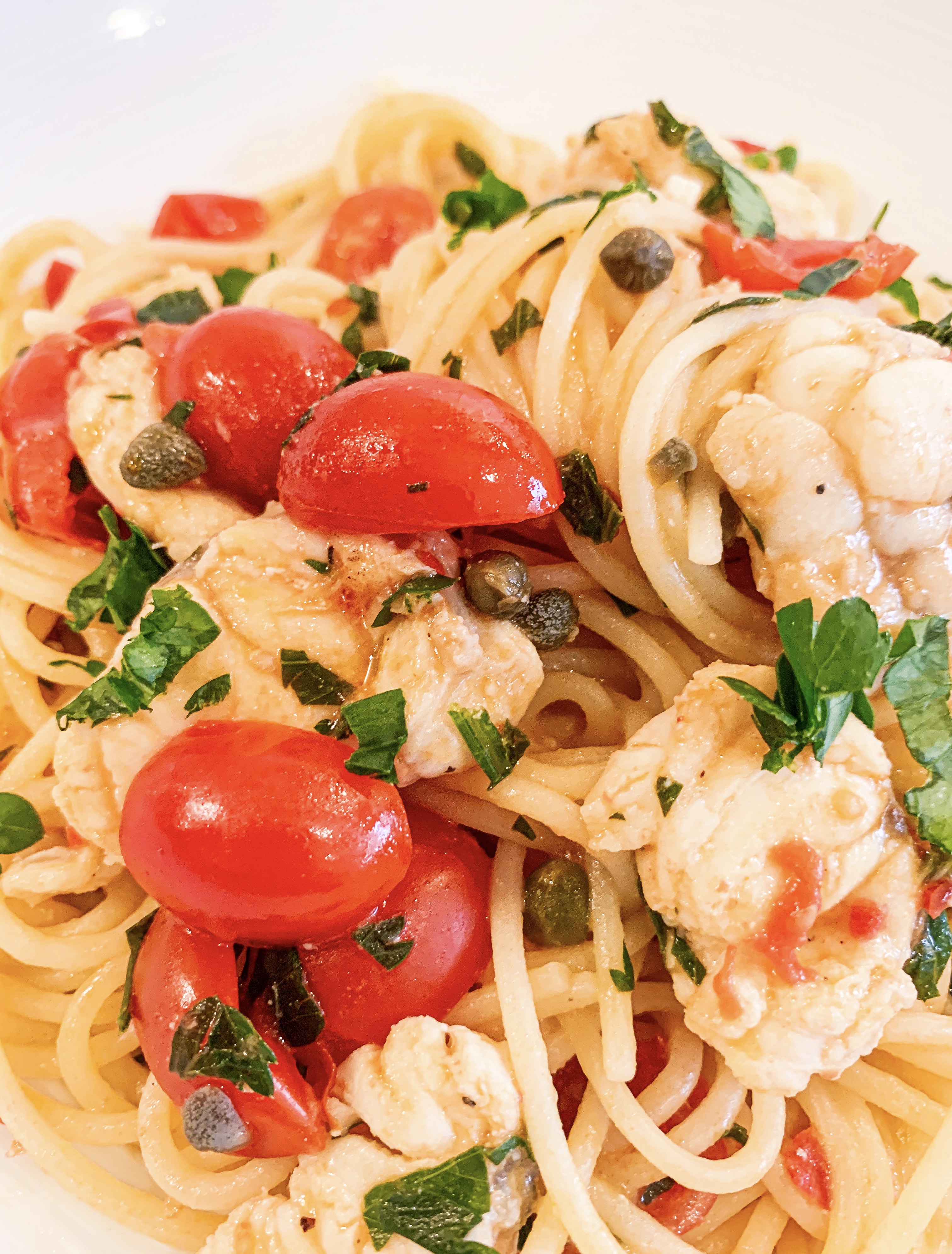 Spaghetti with Monkfish and Cherry Tomato Sauce (Serves 4)