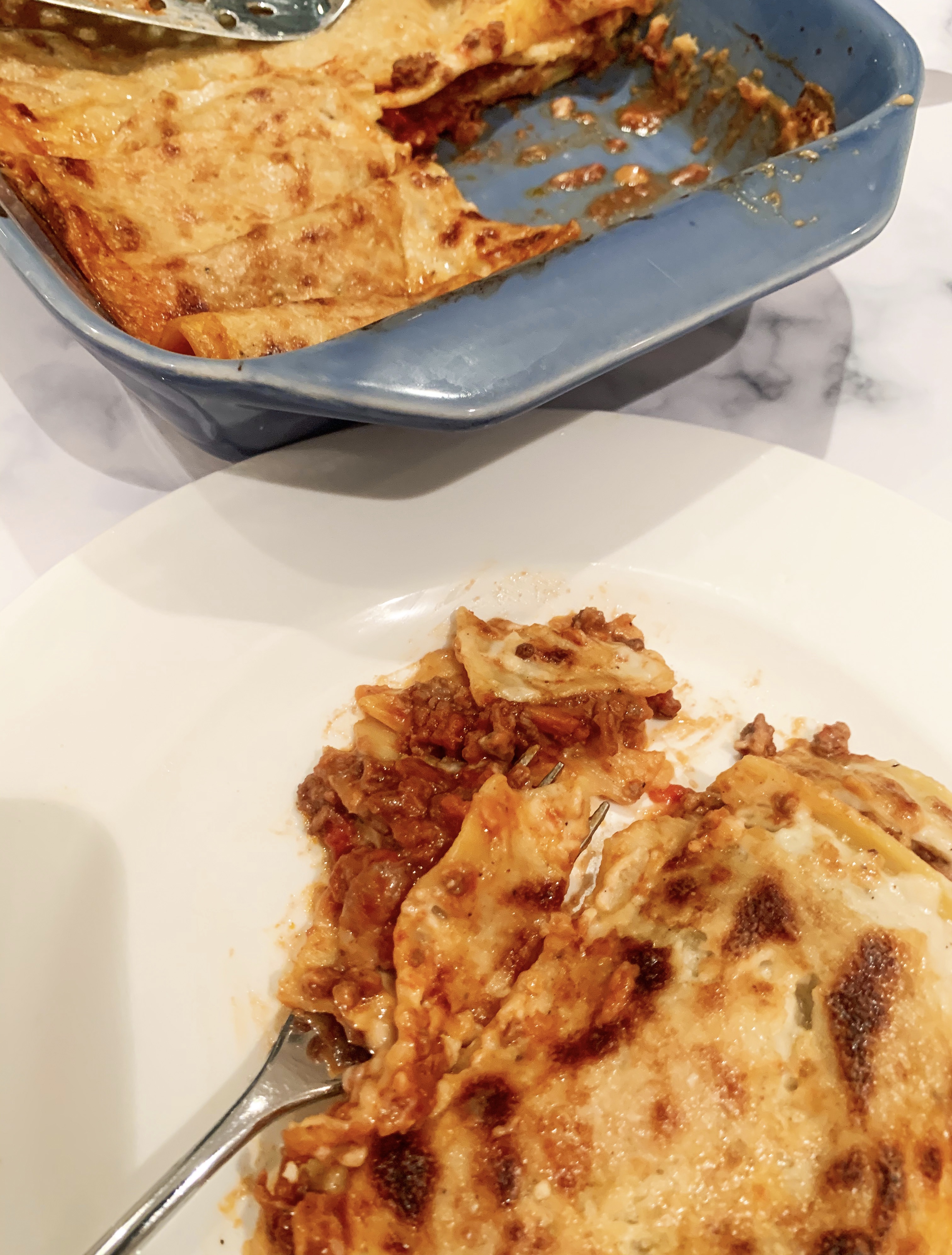 This lasagne from chef/food writer Nina Parker, is super easy as you don’t have to ‘faff’ around making a béchamel sauce, instead you just whip ricotta with grated cheese.