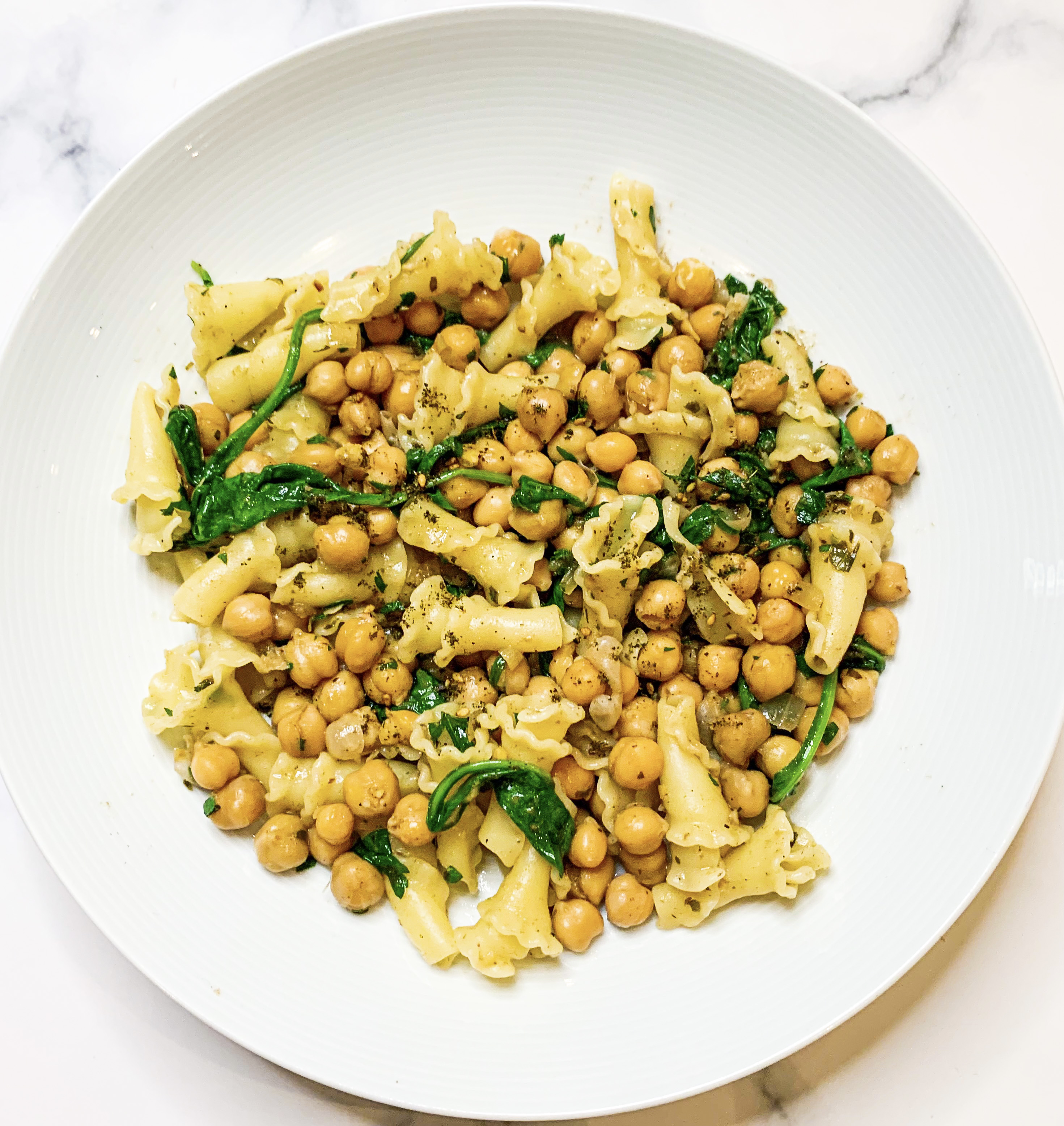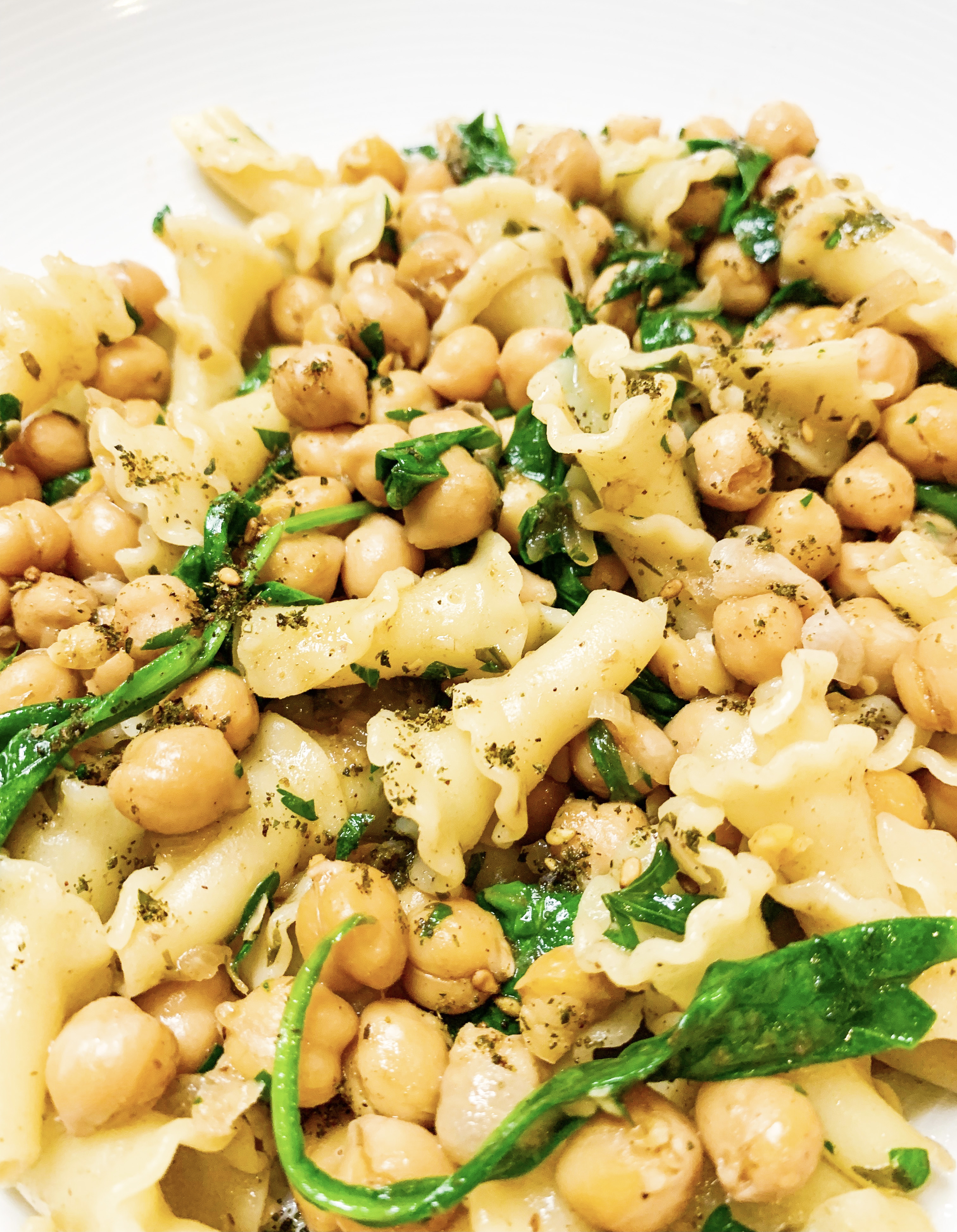 - Set a large saucepan over a medium-to-high heat with 3 spoons of olive oil. Add the chopped courgettes and tomatoes. Season with salt & pepper, cover (leaving a gap) and cook for 10 mins. Mix every so often. Stir in the 6 cloves of chopped garlic and cook for another 5 mins. Wash the chickpeas under cold water, drain and add to the pot. Season and simmer for another 5 mins. Stir in the peas and basil.