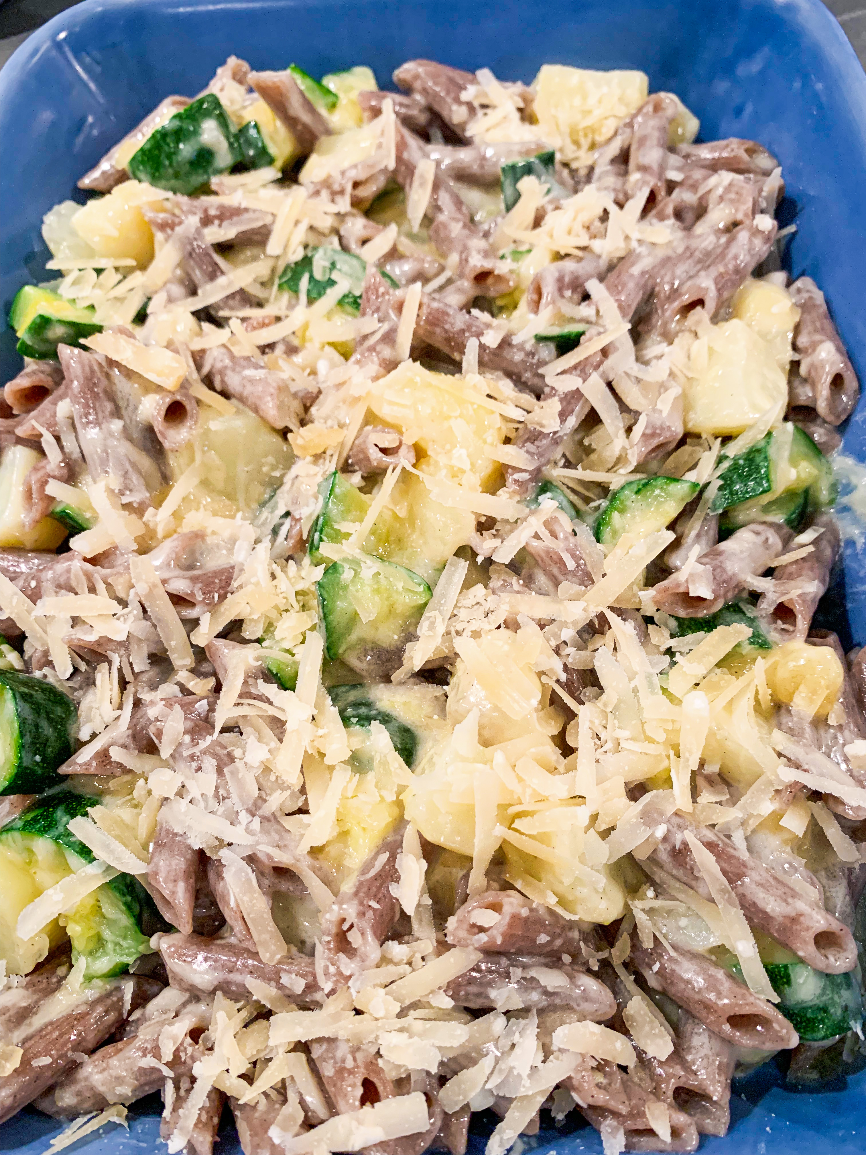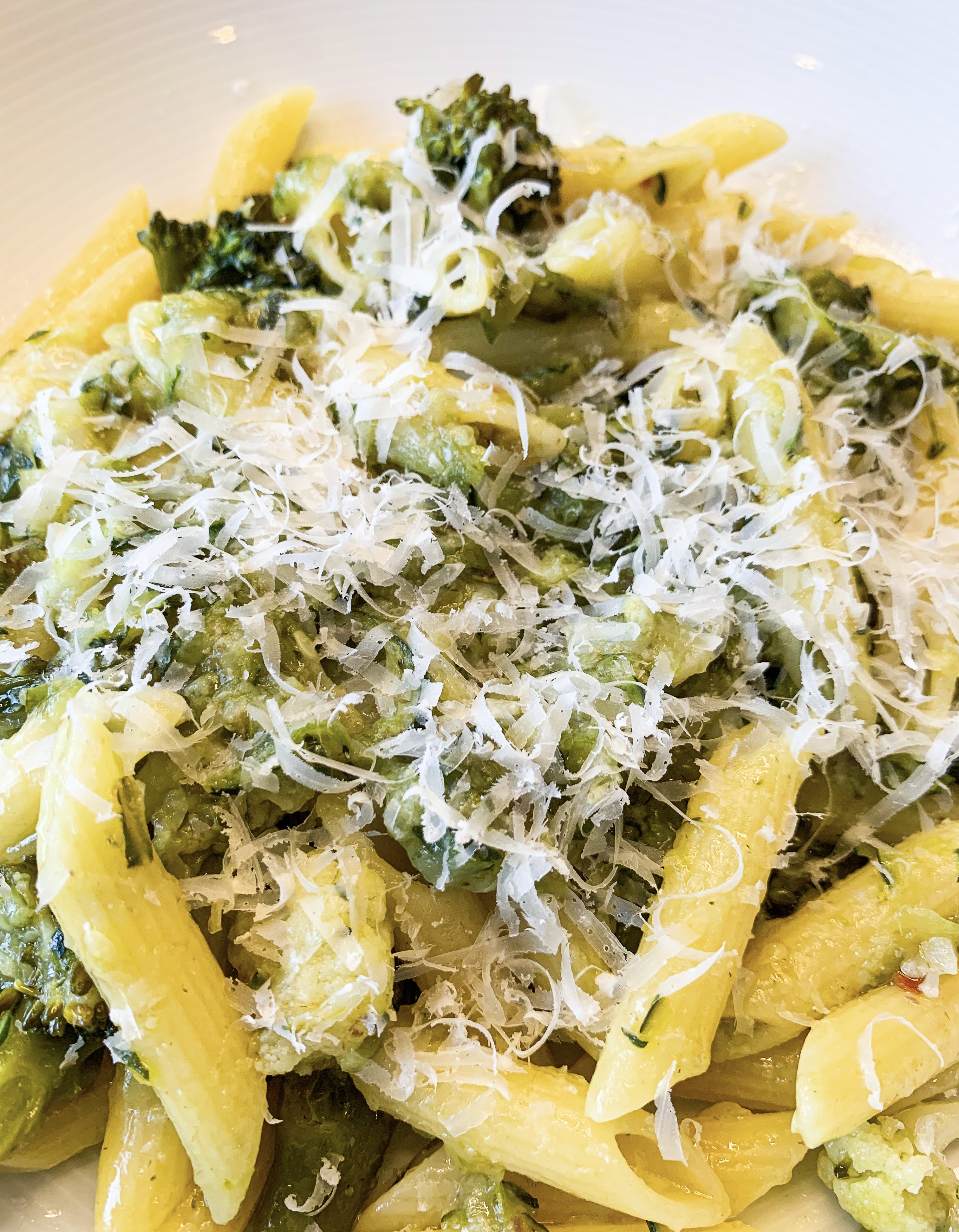 - Drain the penne, add to the sauce, finally mix in the parmesan cheese.