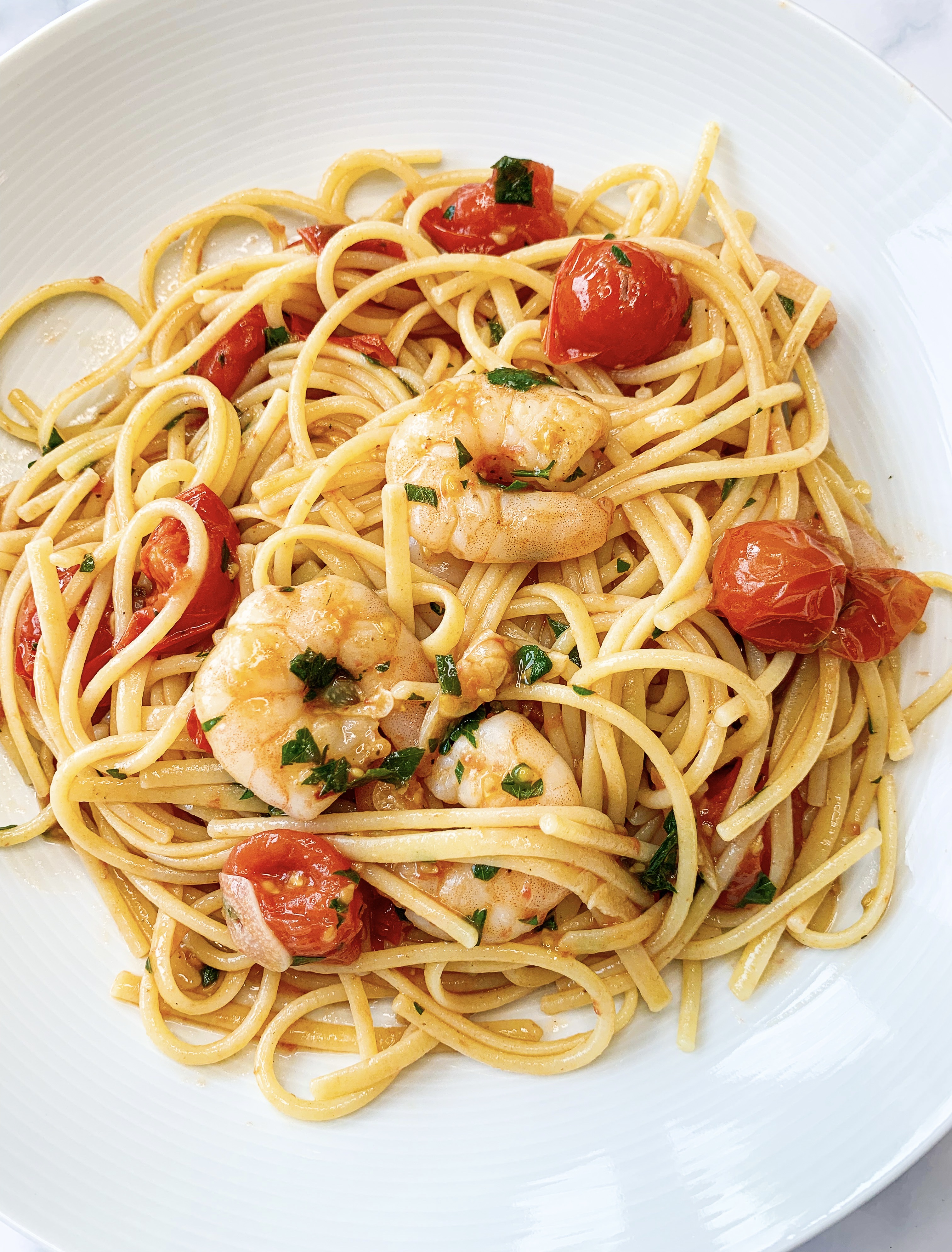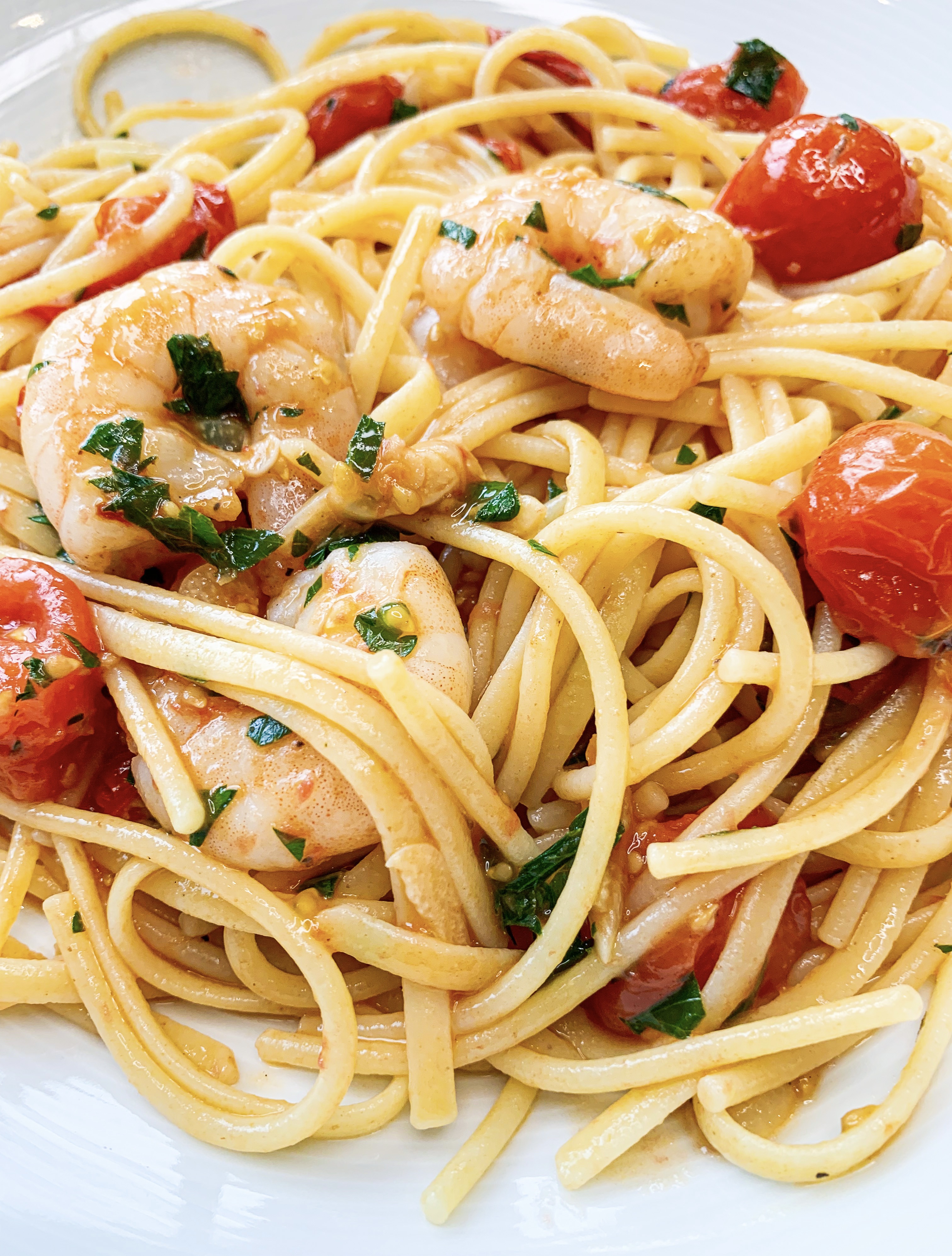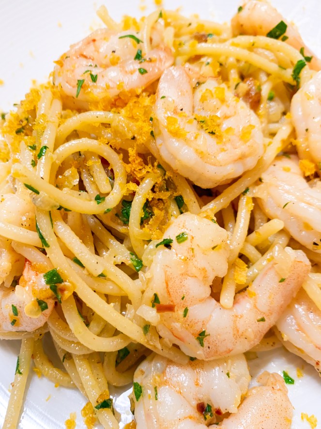 Spaghetti with Bottarga, Prawns, Parsley and Chilli (Serves 4)
