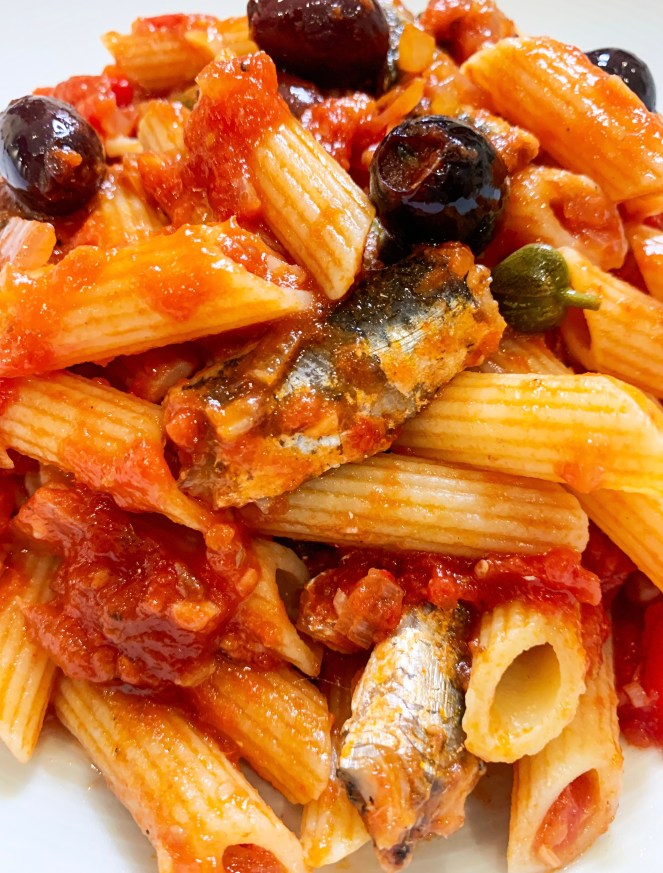This Puttanesca’ from Julius Robert’s cookbook, ‘The Farm Table’, is not your average ‘Puttanesca’ sauce. Along with that zing of spice there’s the addition of tinned sardines – it’s pure store-cupboard heaven! It’s a wonderfully warming pasta dish.