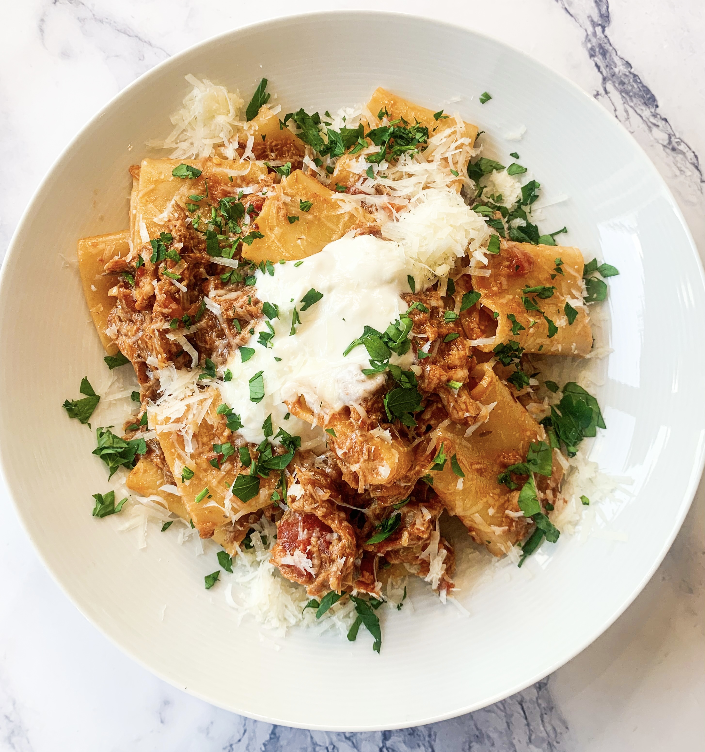 This recipe is from Athena Caldrone’s ‘Cook Beautiful’ cookbook. At first, I was sceptical of this book as the author is first and foremost an Instagram ‘lifestyle influencer’ rather than a chef, however, I’ve been very impressed with its recipes and this ragu has become a firm favourite. Often, slow-cooked Ragu’s can be very heavy but this one is surprisingly light plus the creamy goat cheese topping gives it a very modern edge. From the depths of the winter to a sunny summer’s day this is a recipe you’ll make time and time again!