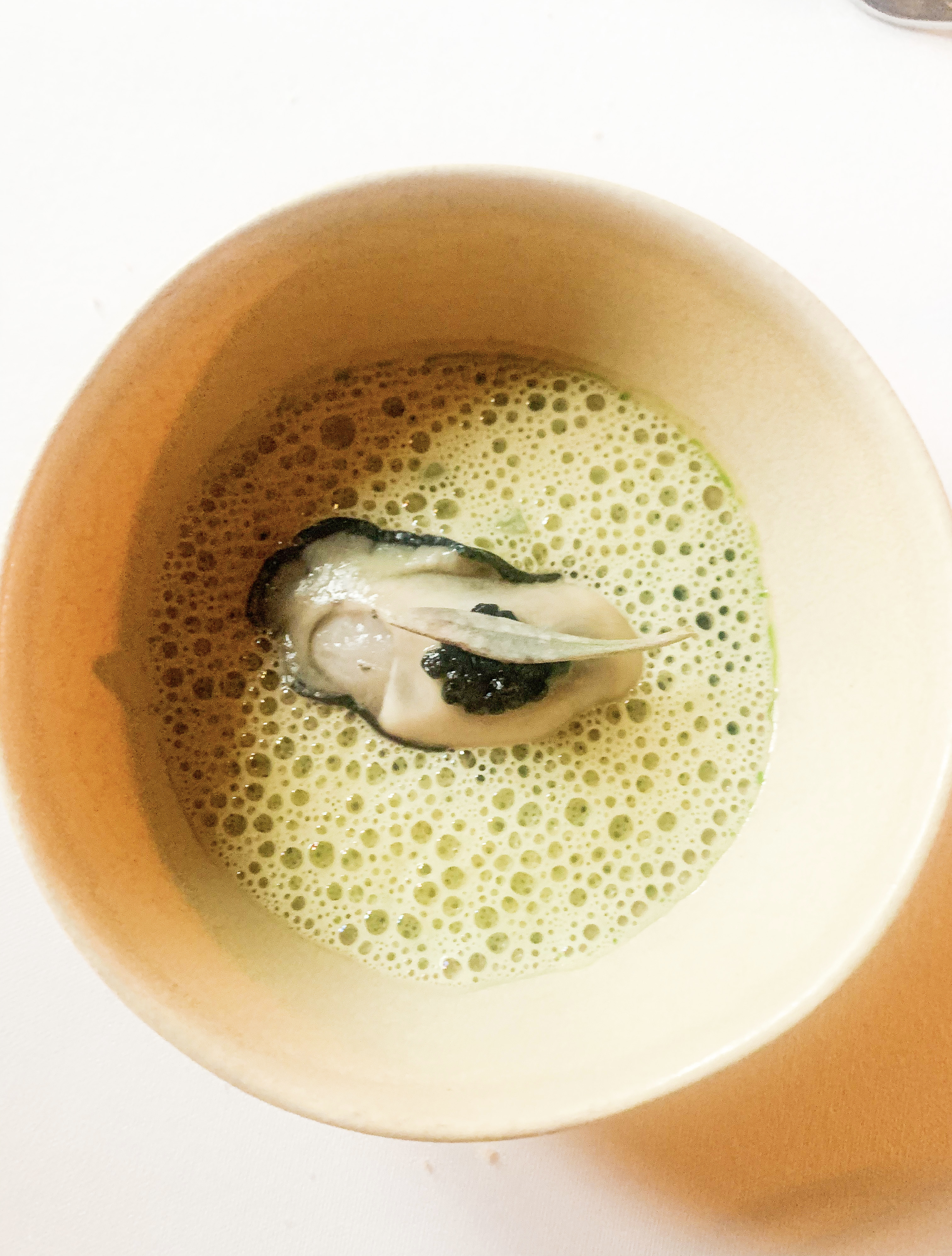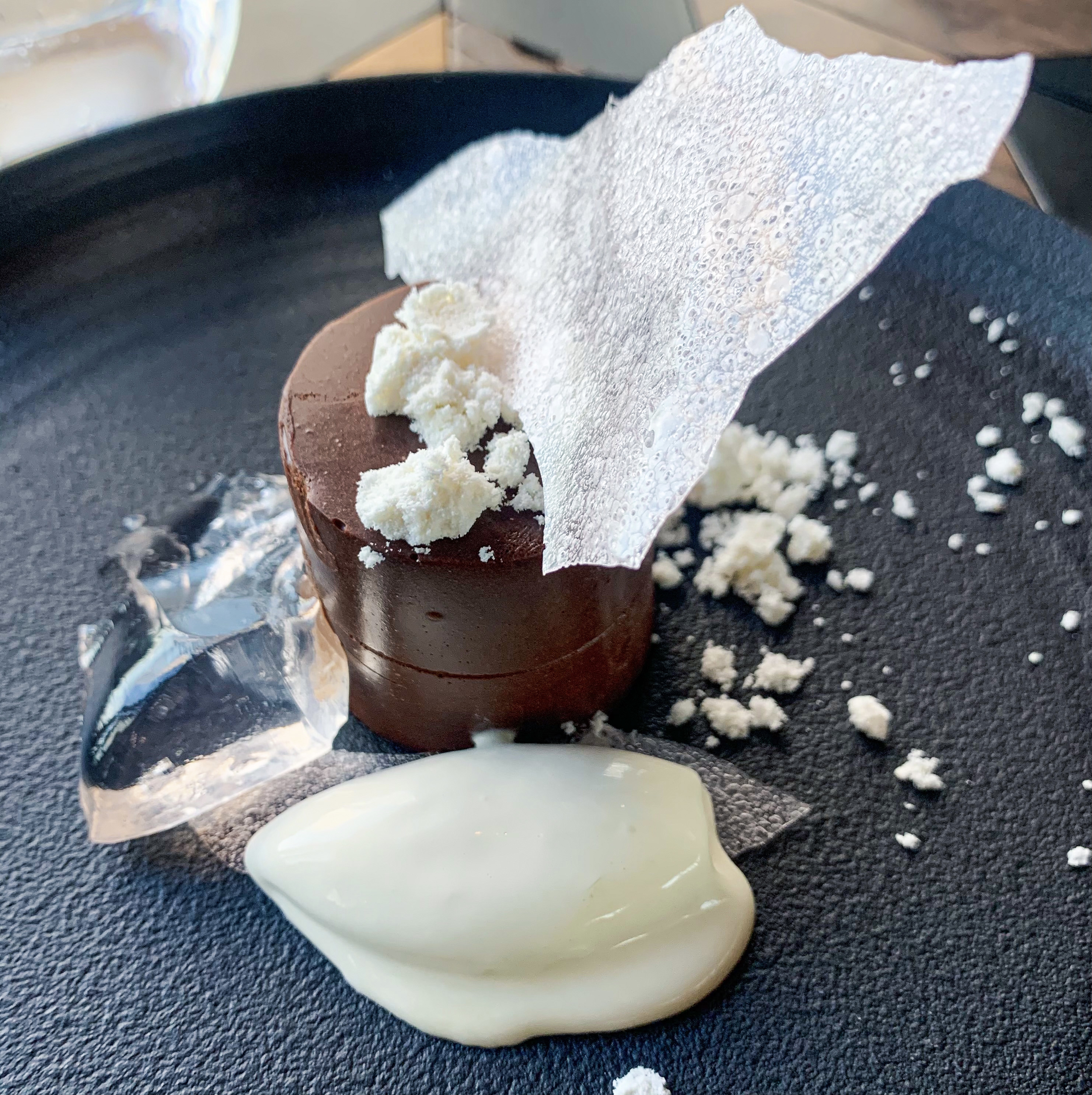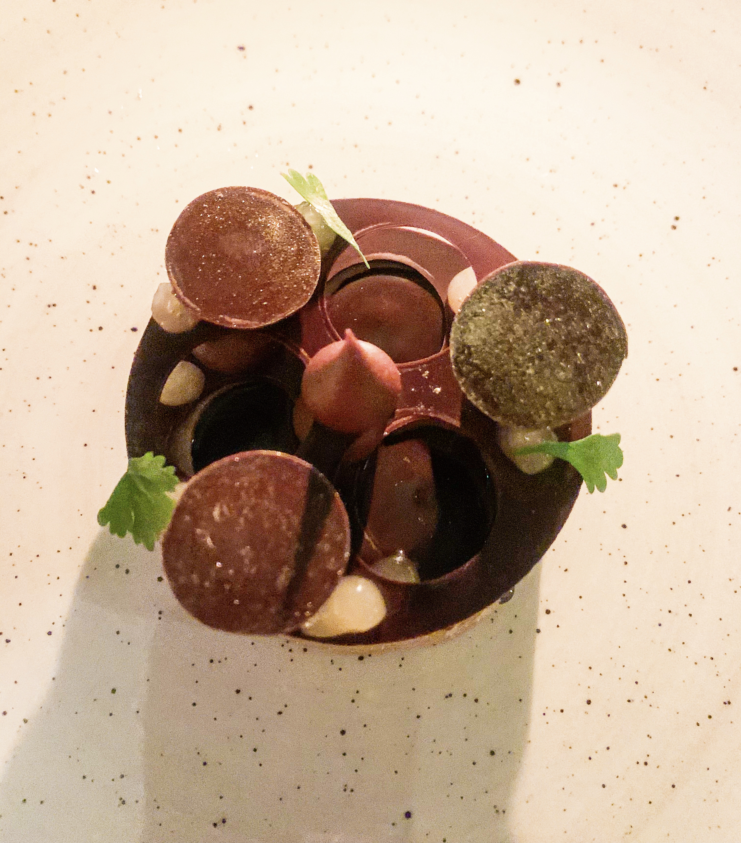 Following our cocktails, our dinner at The Fernery was as impressive, chef Douglas Balish, often uses the produce from The Grove’s kitchen garden and our 5-course tasting menu had wonderfully fresh flavours. Our first course was ‘Smoked Early Pembrokeshire Potatoes,’ this wasn’t by any means a simple potato dish, instead, this dish of pureed potatoes with egg yolk, dashi, pea and bottarga had complex flavours; smoky, salty and creamy. Our second course was a ‘Pembrokeshire Oyster’ slightly pickled with cucumber, jalapeno and sour cream, it was a wonderfully fresh dish to follow the creamy potato first course. The third course was ‘Chicken with Langoustine, Morels and Asparagus’, this was an unusual combination – I have never had chicken with shellfish in this way before and it worked beautifully – a contemporary take on a ‘surf ‘n’ turf’, I imagine that the chicken was cooked ‘sous vide’ as it was incredibly tender. Moving onto our fourth course, we enjoyed ‘Cardigan Hogget,’ a piece of lamb fillet flavoured with goats cheese, caper jam and garlic, again this was cooked to perfection. Finally, dessert, ‘Tulakalum Chocolate’, although the chocolate was, naturally, very rich, this dessert managed to be refreshing with the addition of ginger, lemon and coriander – it was the perfect end to our meal.