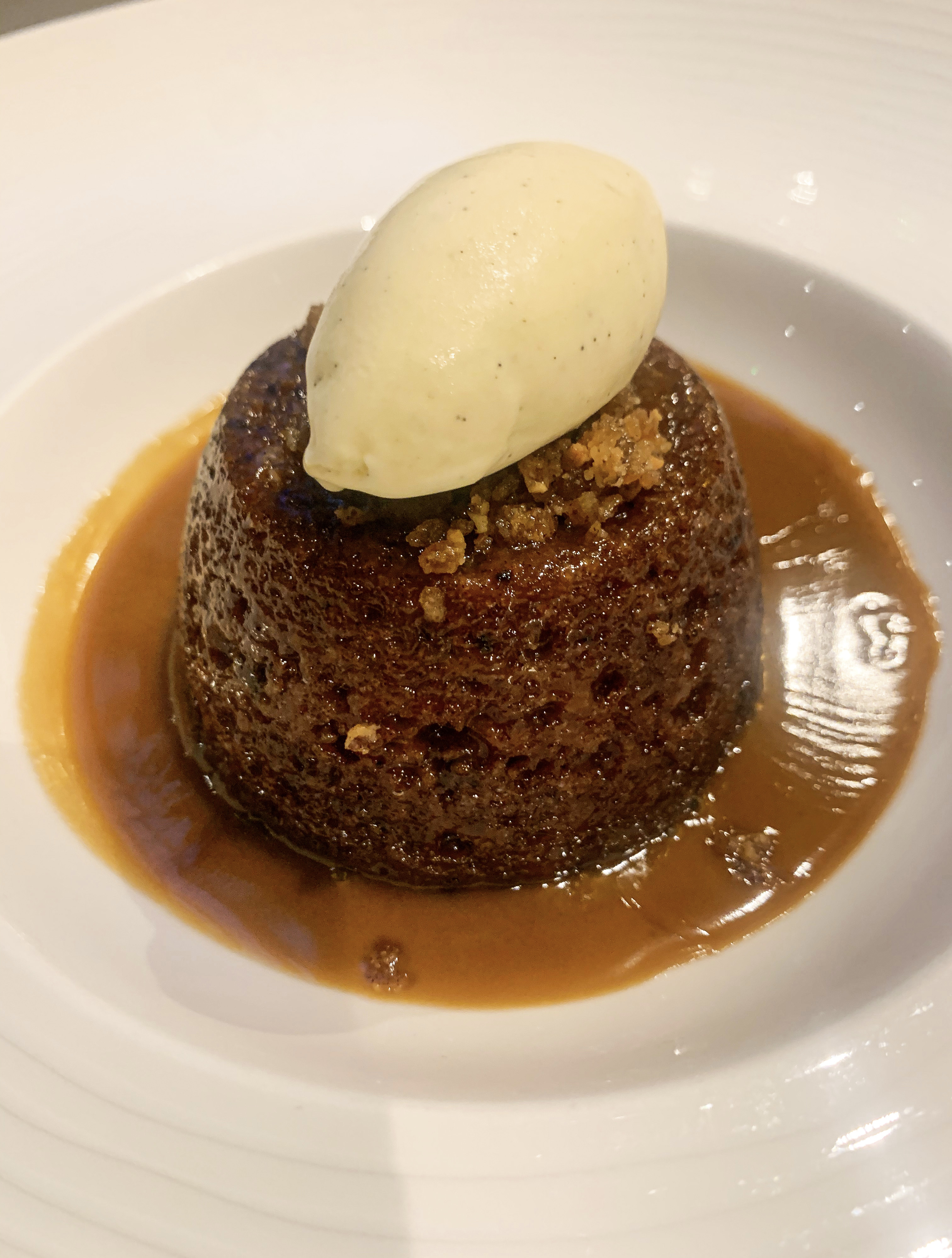 The menu is inspired by Welsh ingredients, simply prepared. On the evening we dined at The Artisan Rooms, we were pleased to see that wild garlic featured on the menu; on our walks along the Pembrokeshire coast, we had spied (and smelt!) a lot of this wild plant, if I lived locally I would definitely be foraging, to cook it at home! So to start with I chose the ‘Wild Garlic Soup’, which was beautiful, both fantastically green and flavoursome, with a dash of soft goats cheese. I was so eager to taste this beautifully vibrant soup that I forgot to photograph it for you and, as I was enjoying it so much, I also failed to photograph Nick’s ‘Game Terrine En-Croute’, which was also very ‘tasty’! For our main courses, we had ‘Lamb Rump with Wild Garlic and Leeks’, it was the creamed potato flavoured with the garlic and leeks that carried this dish, the lamb, I must admit, lacked a little on the flavour front, however, the ‘Cod with Coconut and Seaweed’, was a definite winning dish, it was delicately flavoured and cooked beautifully. Finally desserts, Sticky Toffee Pudding, always a crowd-pleaser, this was undoubtedly good; I particularly liked the little nibs of toffee that were dotted through the sponge! We also shared the Rhubarb and Ginger Cheesecake, it was delicious, the rhubarb was wonderful although we couldn’t taste much ginger. It was a great meal and a lighter alternative to the richer meal we had enjoyed at The Fernery.