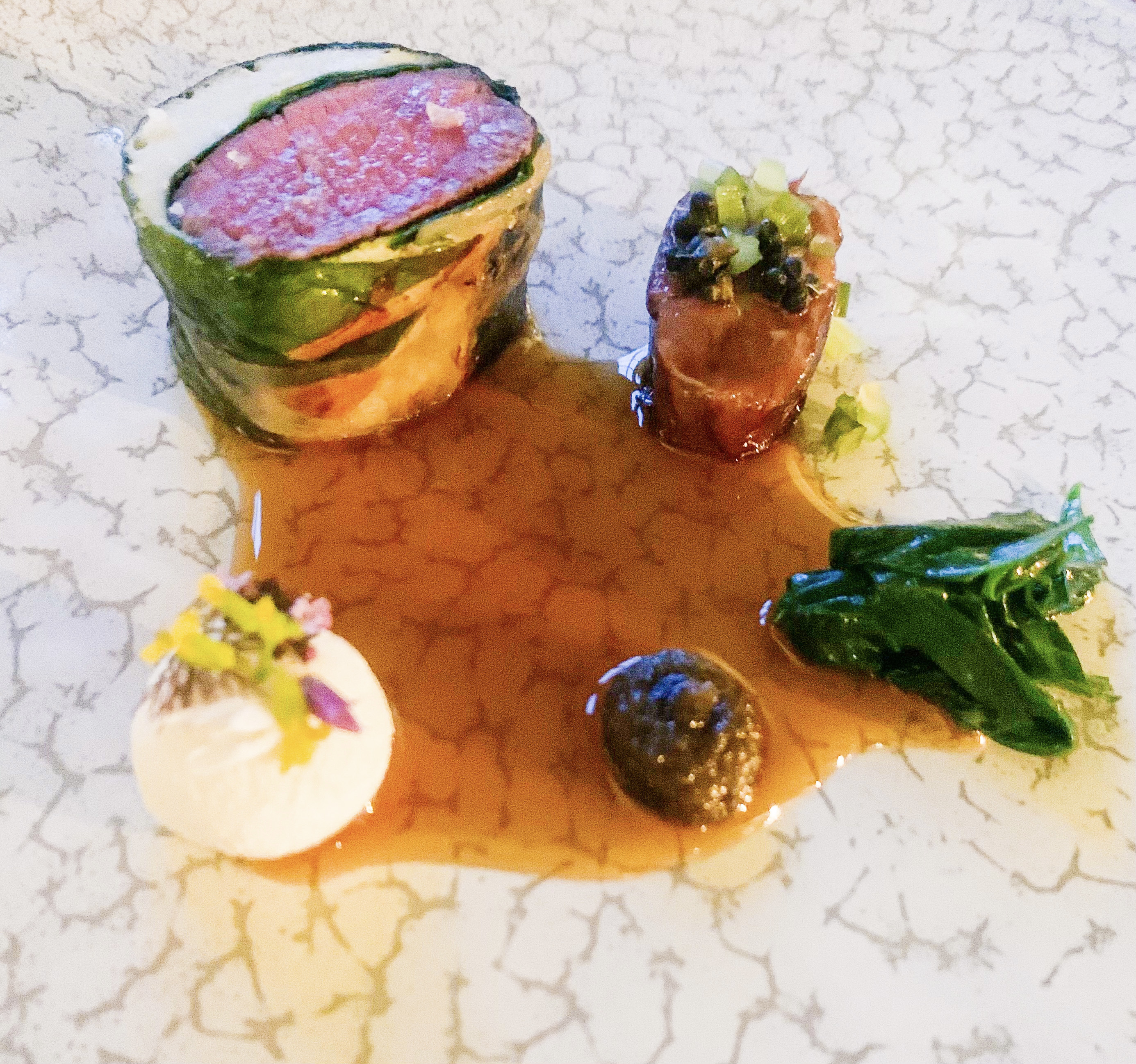 We ate at the Fernery, the more formal of The Grove’s two restaurants, on our first night, and what a great start it was to our stay. The restaurant is in the more traditional wing of the hotel, with its white-clothed tables and classic interior it has that quietly comforting atmosphere that only the best country hotels can offer. Before dinner we enjoyed cocktails in the lounge – the classic Old Fashioned for me and a Negroni for Nick, both were perfectly made. Nick’s Negroni was particularly good and on asking about the vermouth they used we discovered that it was an artisan brand, Carpano Antica Formula – we will be ordering a bottle for home!!…In fact, over the next few days, we were to try a few more of their signature cocktails(!) and discovered that they strived to introduce the subtle flavours of other artisan brands – their Martini was made with the addition of Eccentric Limbeck Gin and lavender bitters – wonderful!