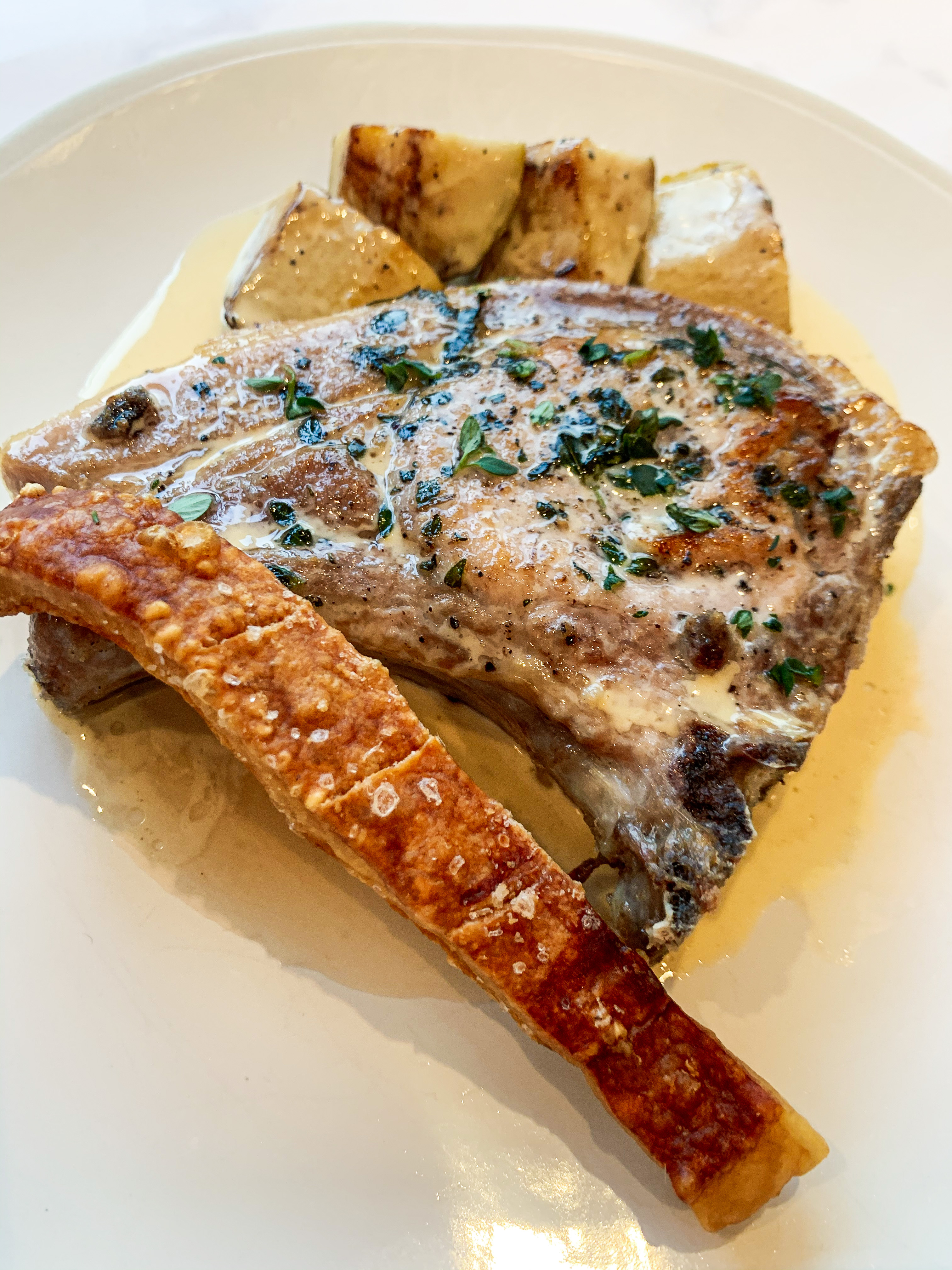 Roast Pork Chops with Apple Sauce, Chimichurri & Crackling