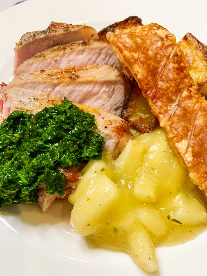 In this recipe from the cookbook, ‘For the Love of Food’, Chef Paul Ainsworth gives the traditional pork chop an extra punch with the addition of the Latin American sauce, Chimichurri. It works particularly well with the salty pork crackling and the sweet yet slightly tart apple sauce. It’s a lively dish perfect on any day, be it May or the midst of the winter. (I’ve slightly changed the preparation of the crackling and chops from the original recipe).