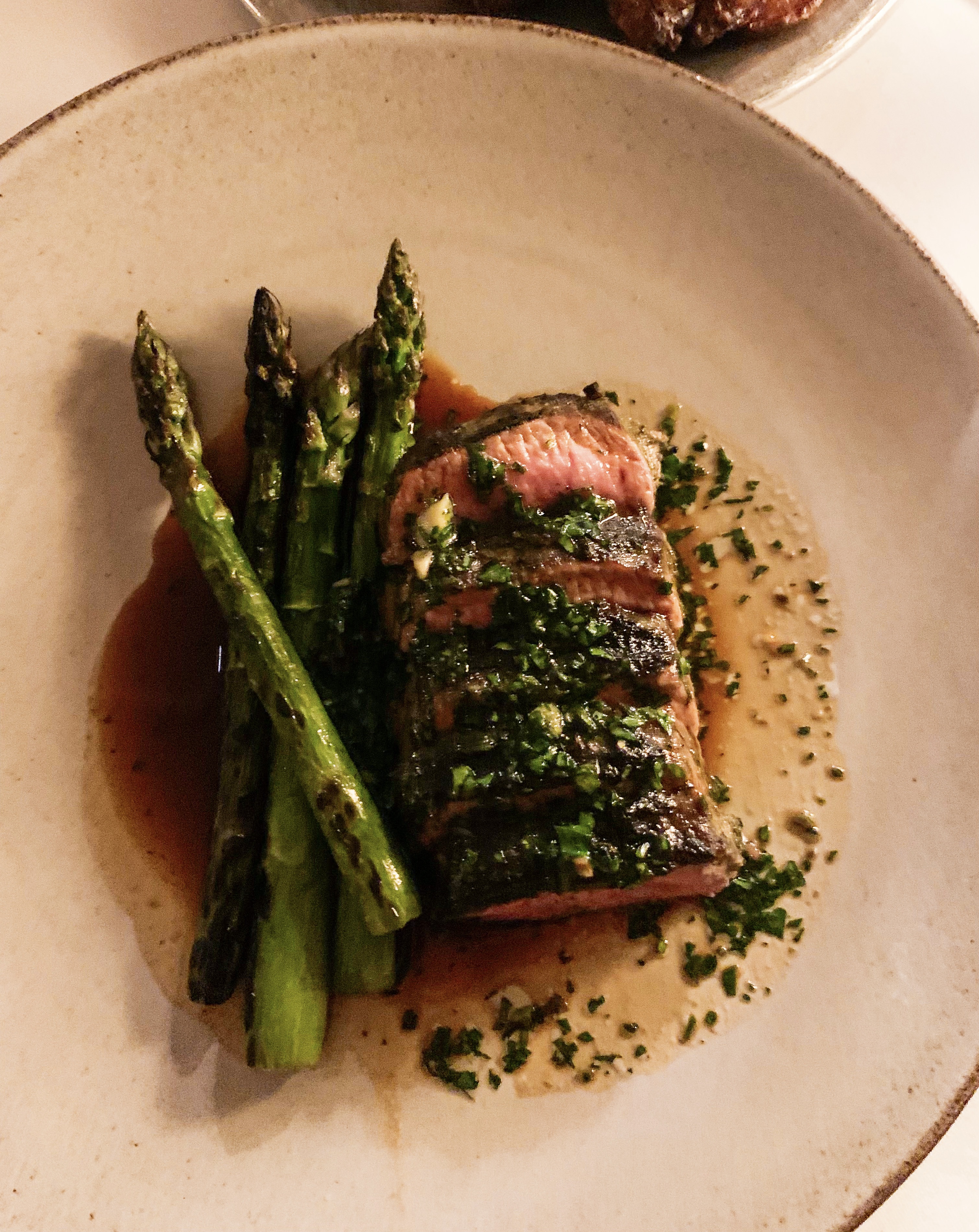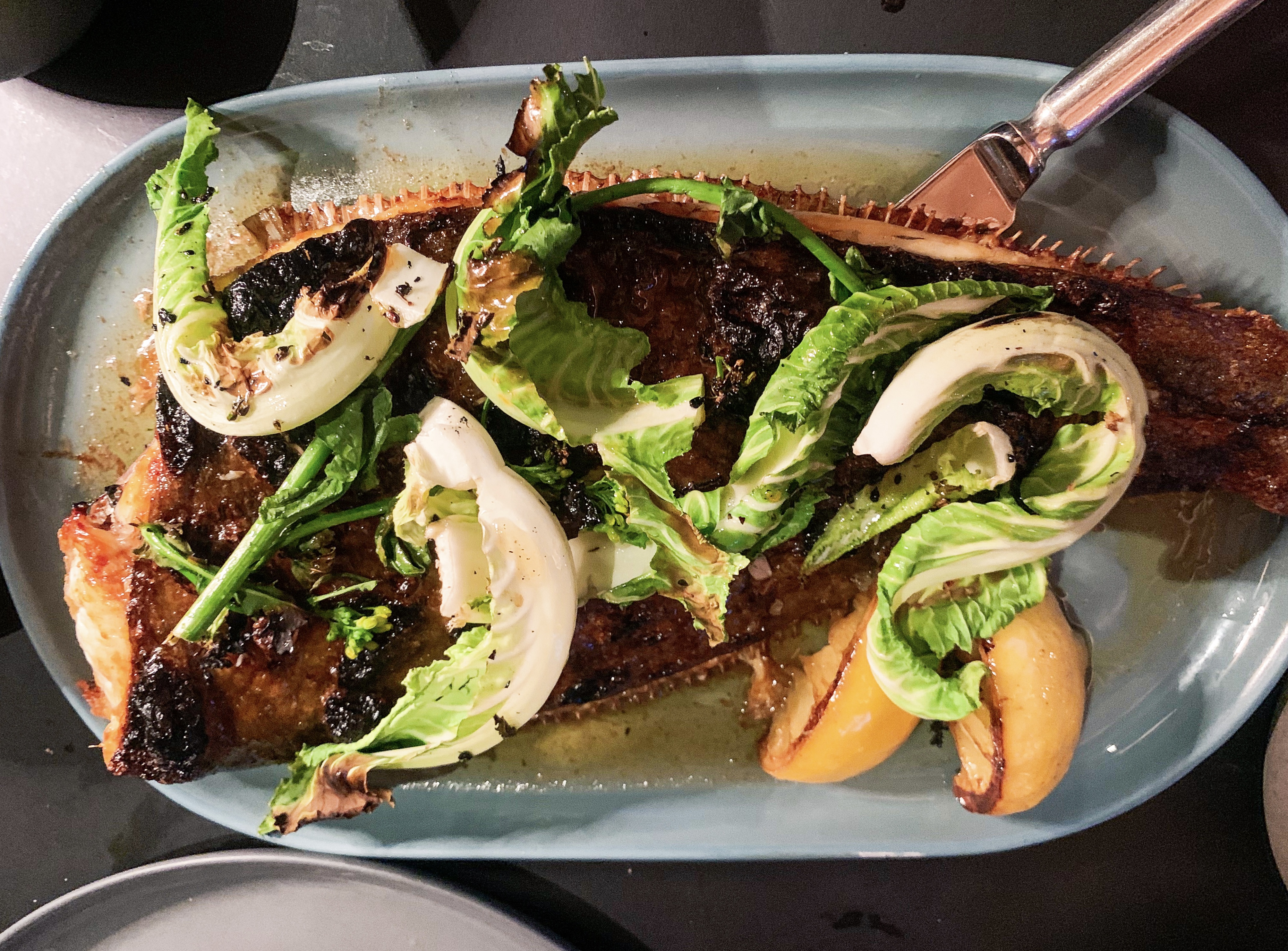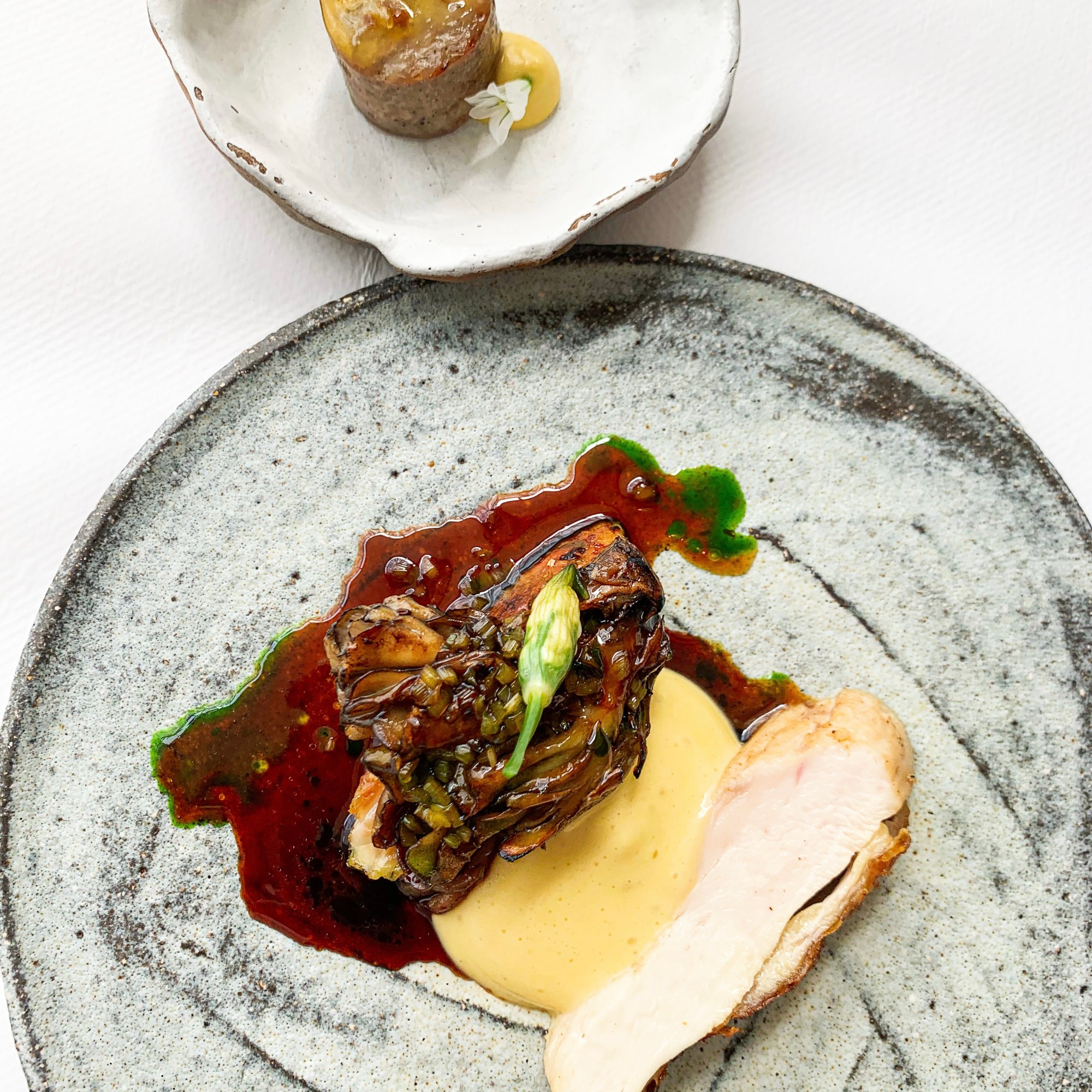 We ate at the Farmyard Restaurant on our first evening. Guests at Hadspen House can drive themselves over in a buggy or staff can drive you – we opted for the latter, as I wasn’t sure we could be trusted to navigate our way home through the fields of sheep after a couple of cocktails and wine! The dining experience is more relaxed with a sharing menu. ‘Broccoli & Anchovy’, was wonderfully fresh with a touch of lemon and an addictive, salty anchovy aioli. The ‘Mullet with Spring Onion & Gremolata’, had well-matched flavours with the sweetness of the chargrilled onions and tart gremolata. Moving on to our main dishes there was the star of the evening ‘Whole Place, Brassicas and Burnt Lemon’, cooked to perfection, it was divine. The ‘Pork Chop, White Bean, Roast Onion & Thyme’ couldn’t match the deliciousness of the Plaice, and although the chop was quite tasty we found the white bean purée a little bland. As an extra dish, we ordered the ‘Jersey Royals, Hang Op & Wild Garlic’, I could have eaten the whole dish alone, the combination of salty potato and wild garlic was moreish! Finally, desserts; an ‘Apple Crumble & Custard’ and ‘Chocolate Mousse & Salted Caramel’ – both were the perfect end to a very good meal. It was a great start to our stay and we hoped that the food at the other two restaurants would follow suit…