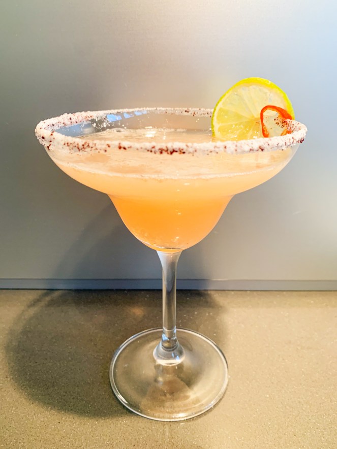 - In a cocktail shaker combine the tequila, lime juice, guava juice and slice(s) of chilli, add a handful of ice and shake vigorously for 15-20 seconds until chilled. Strain into your prepared glass and garnish with a lime wheel and a slice of chilli.