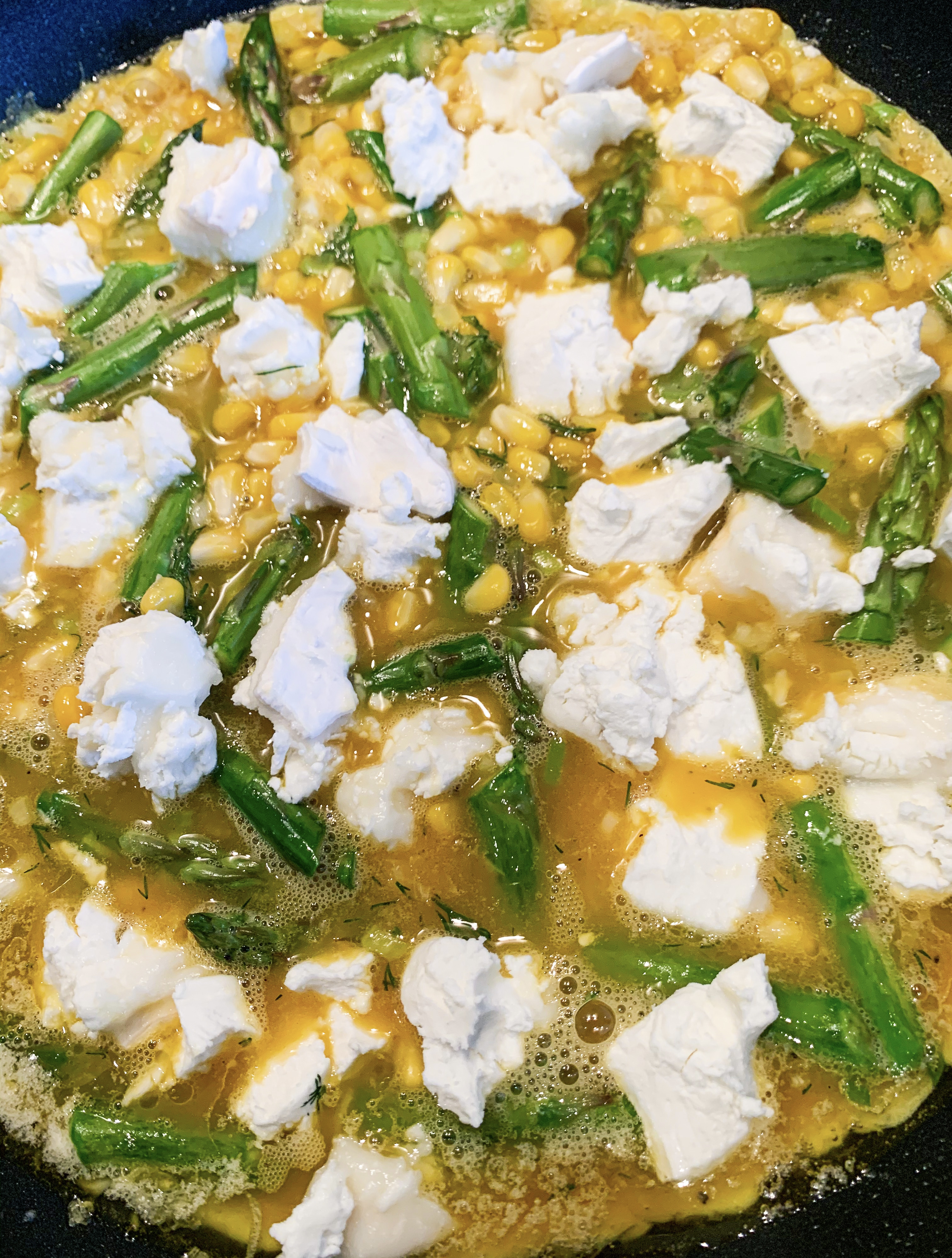 Asparagus, Corn & Goats Cheese Frittata (Serves 4)