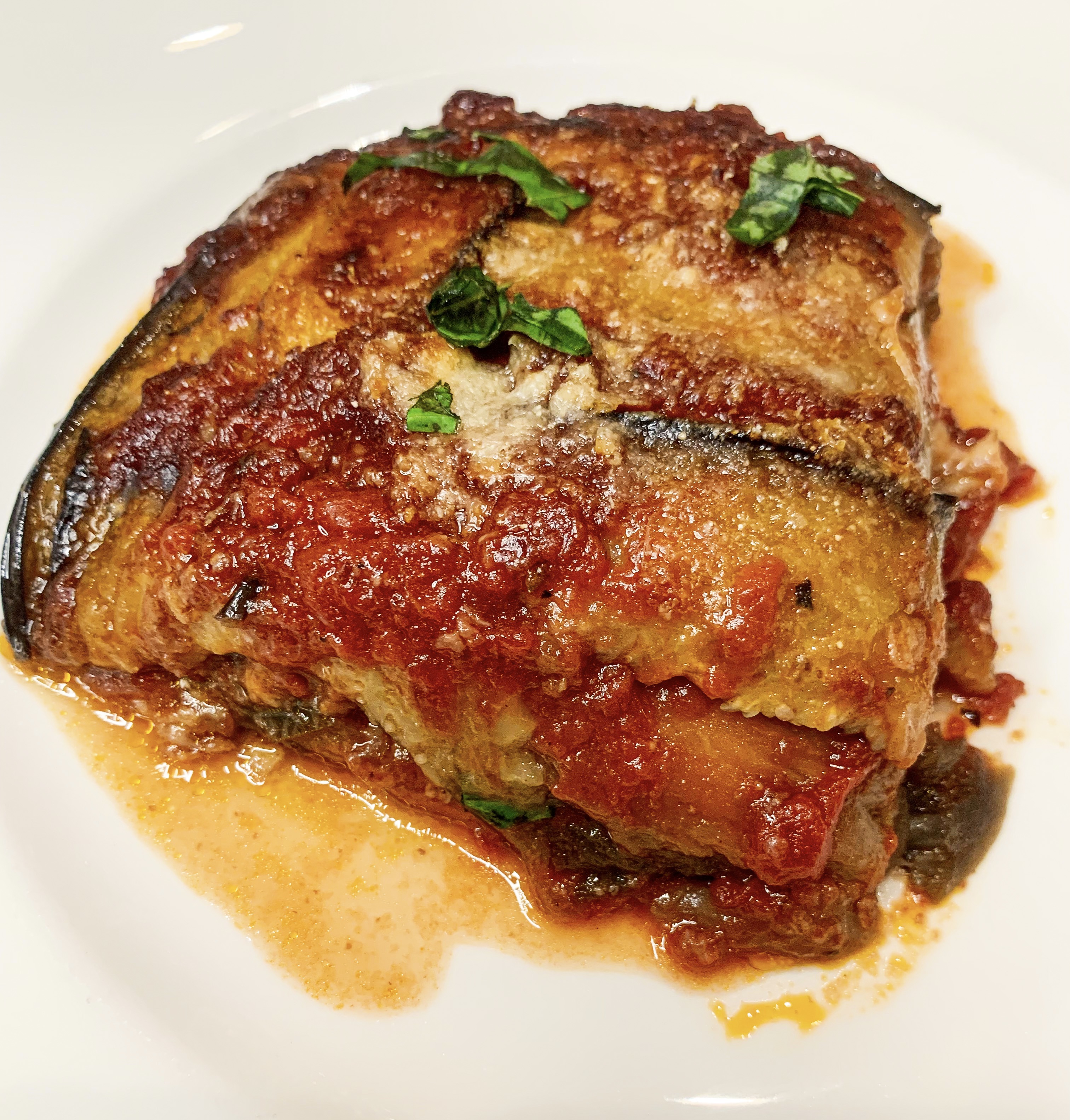 - Bake in a preheated oven, 180’c fan, for about 30 minutes until browned and bubbling. Allow to cool slightly and sprinkle over with torn basil leaves before serving.