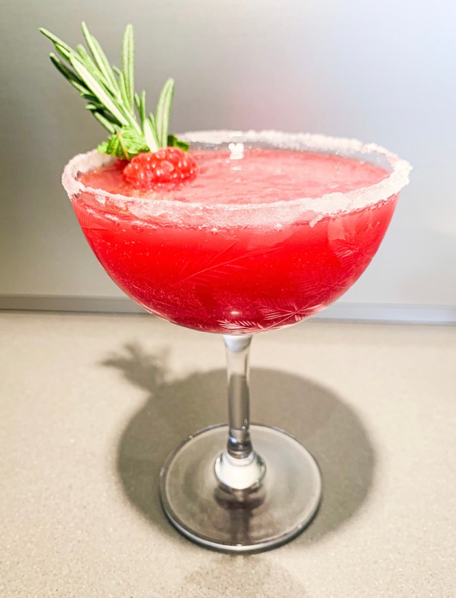 1 Sprig of Rosemary, 1 mint leaf and 1 raspberry for garnish